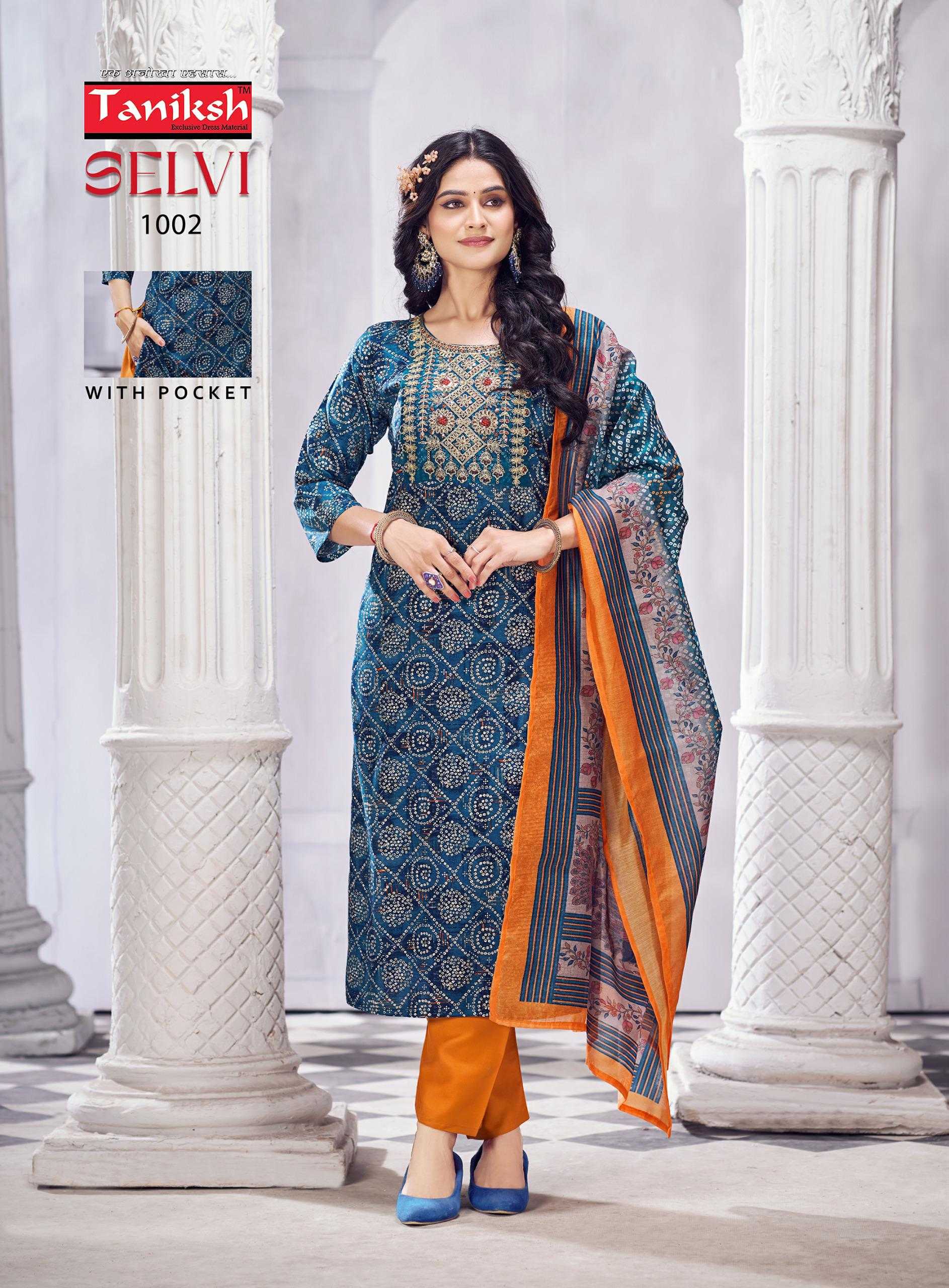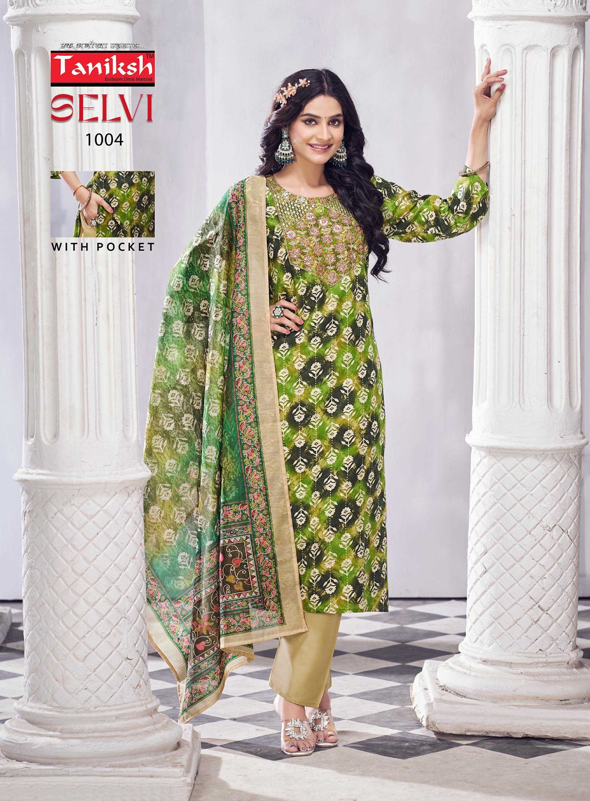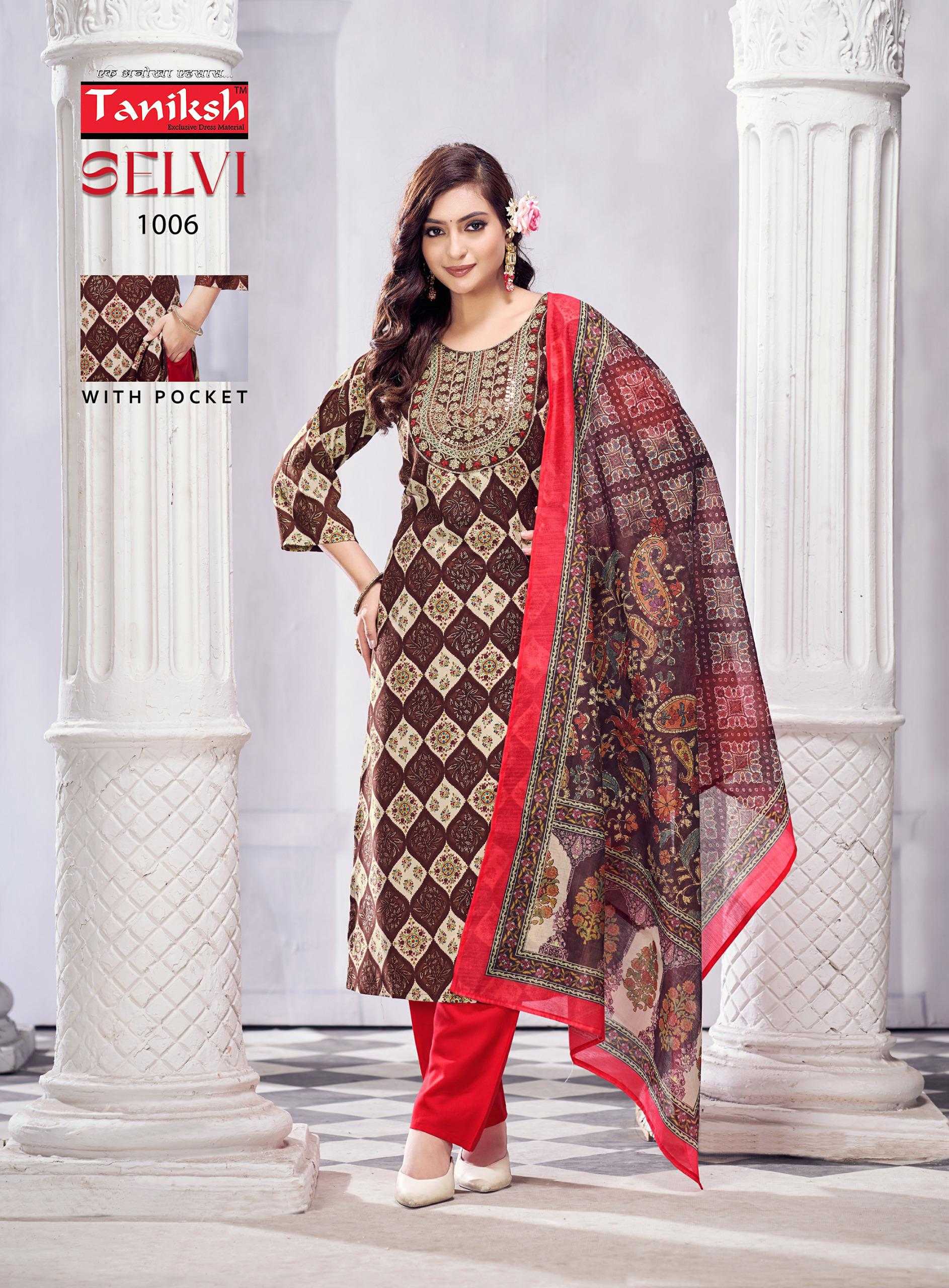 taniksh selvi vol 1 stylish rayon foil print with hand work readymade salwar suit