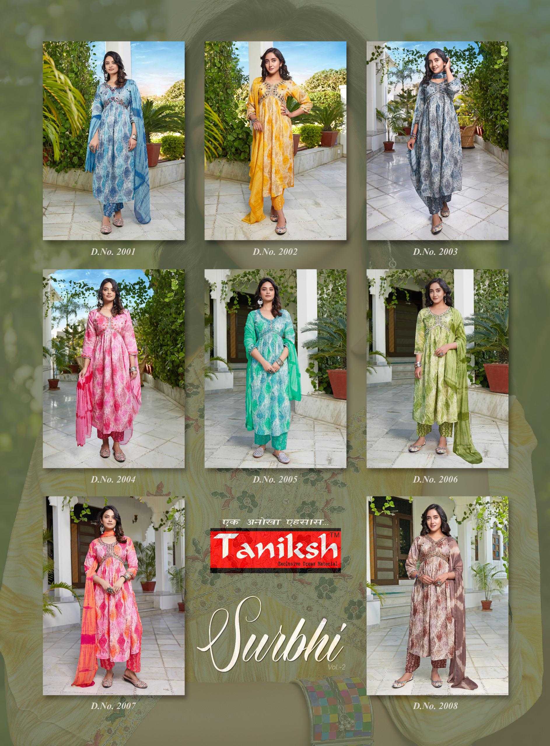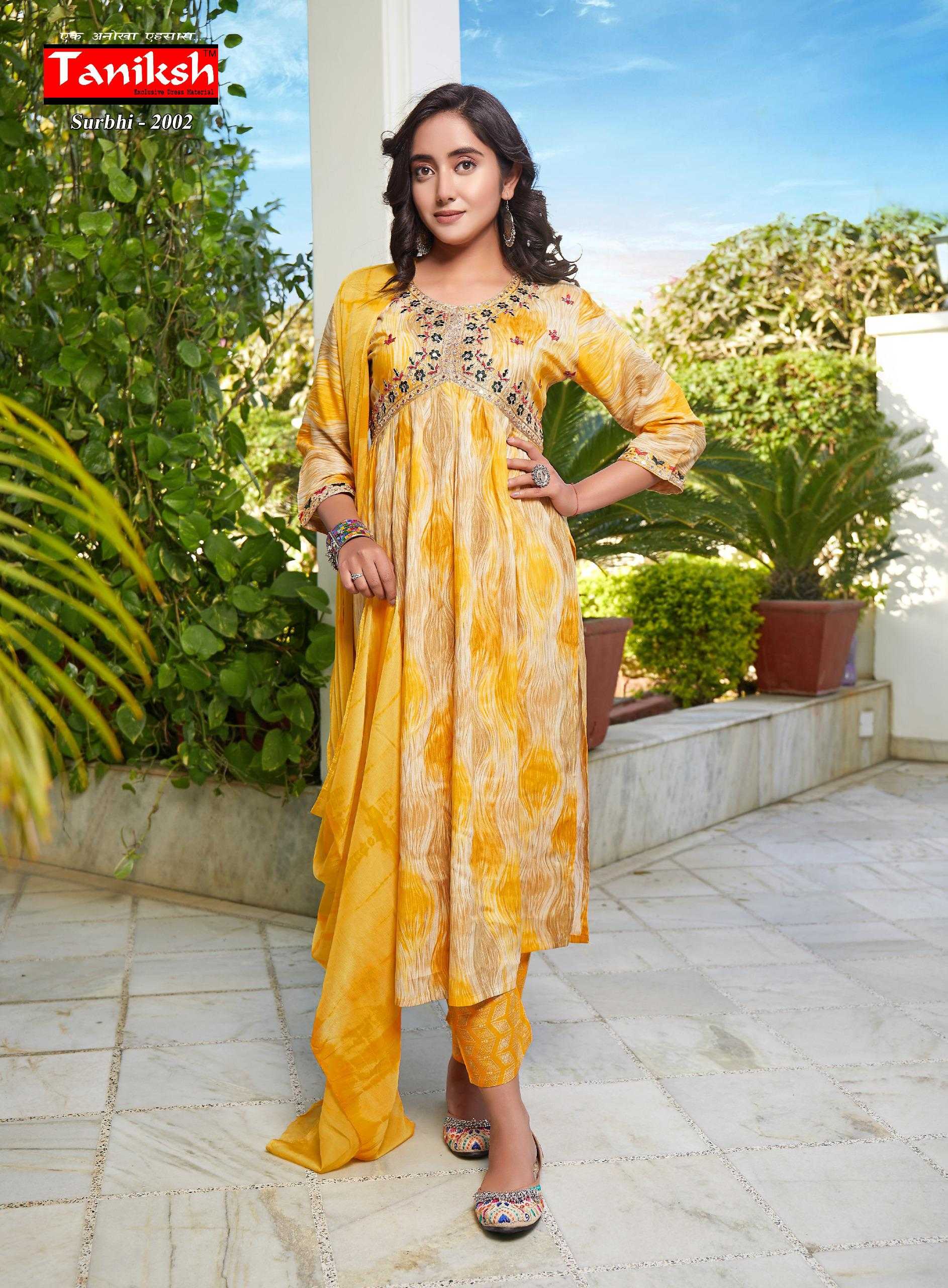 taniksh surbhi vol 2 readymade beautiful work alia cut kurti pant dupatta