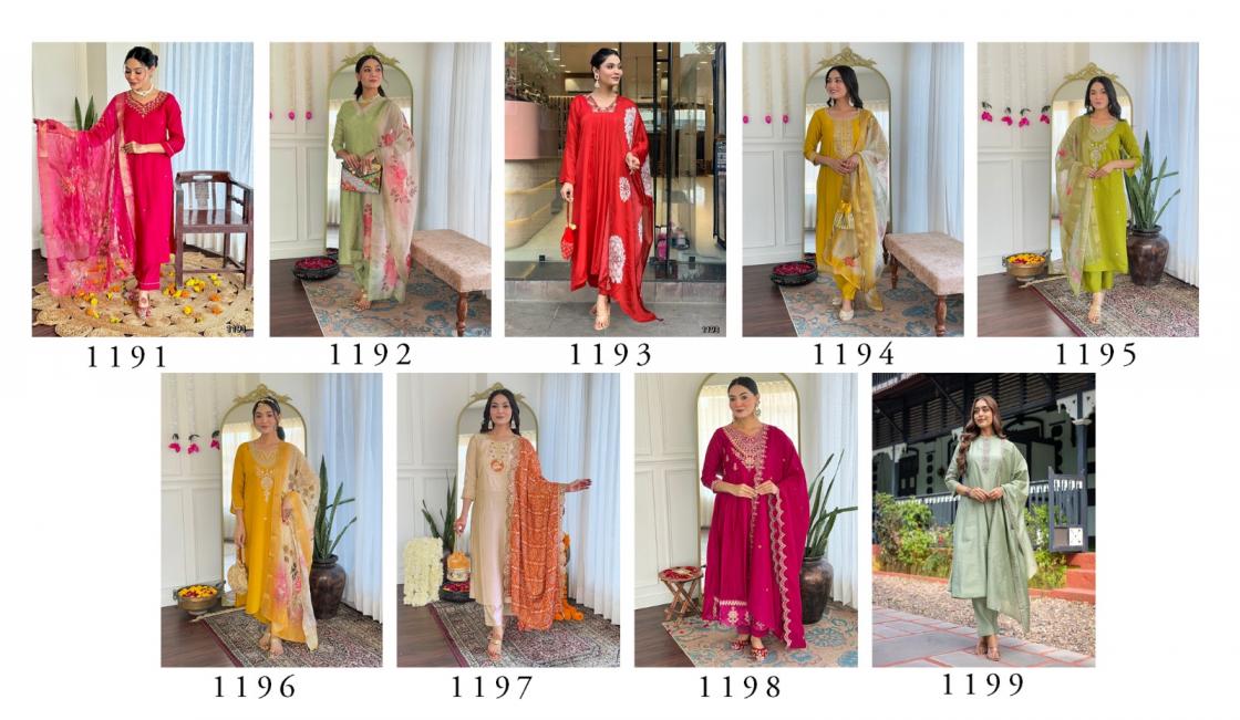 The Royal Designers Kurta Set . Catalog Name: - Tanisha Vol 26. Fabric Details in the Image. Work: - Embroidery. Size: - M (38), L (40), XL (42), XXL (44). Weight: - 800 gms. GST: - 5%. Rate:- |
