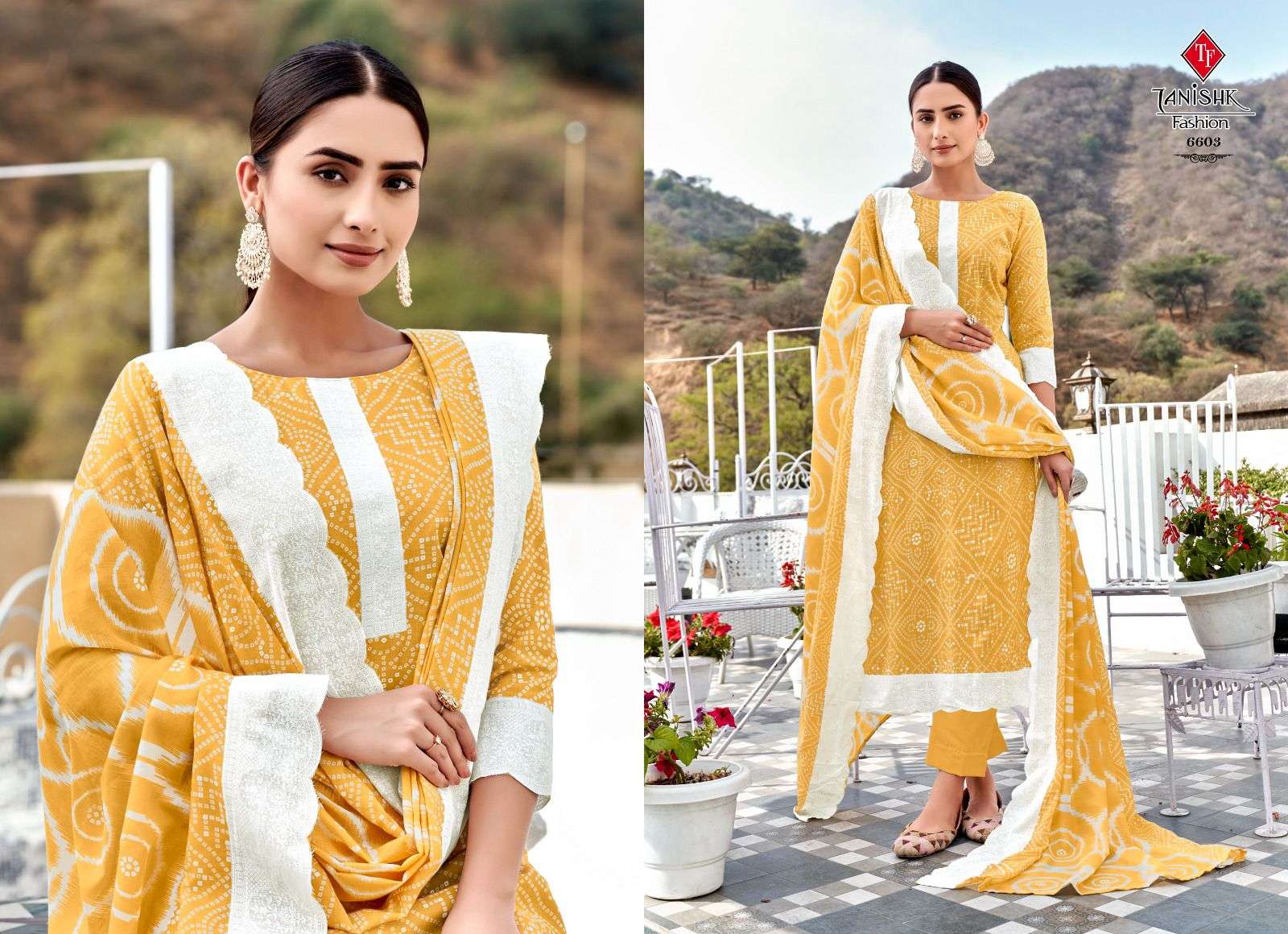 tanishk fashion bandhej cotton printed unstitched best bandhani suit