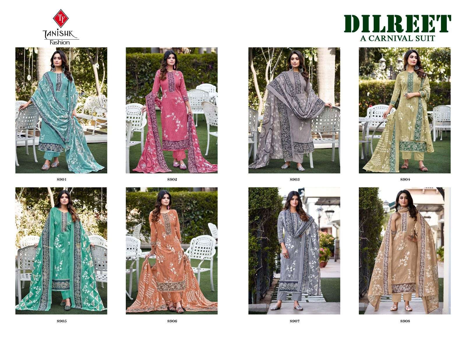 tanishk fashion dilreet 8901-8908 summer special katha print salwar kameez collection