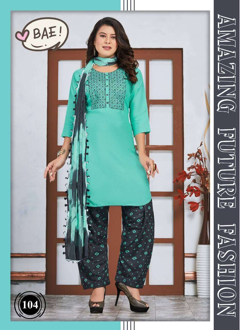 445 / Piece IN STOCK Model:tt-Tanmayi Weight:3.00kg MOQ:6 Pcs Fabric: 140 gm reyeon Work: Embroidery Type: SALWAR SUIT |