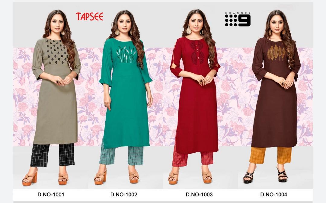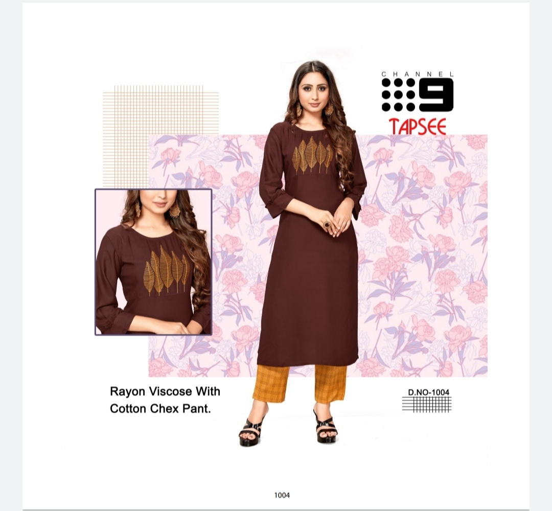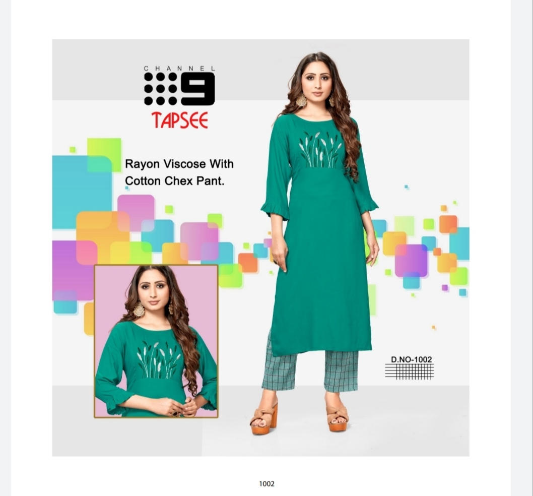 Tapsee By Channel 9 Rayon Kurti With Cotton Checks Pants Online Shopping