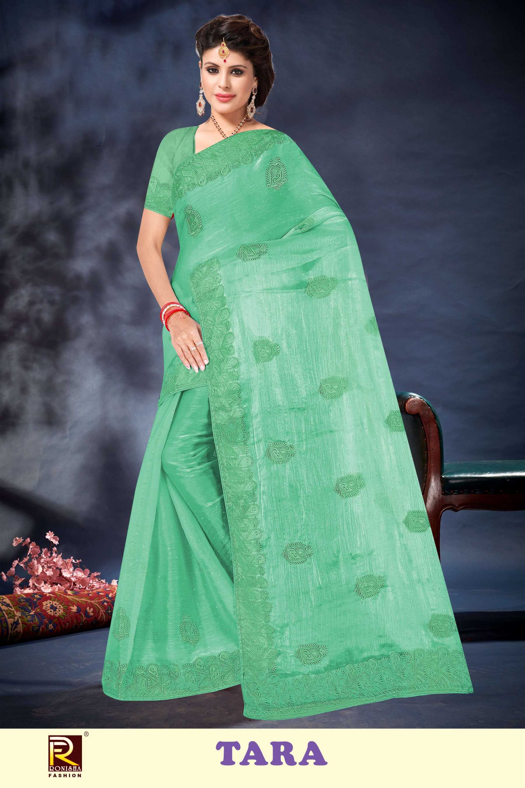 TARA BY RANJNA SAREE JIMI CHOO FABRICS SIROSKI DIAMOND WORK & EMBROIDERY WORK FANCY SUPER HIT COLLECTION SAREES