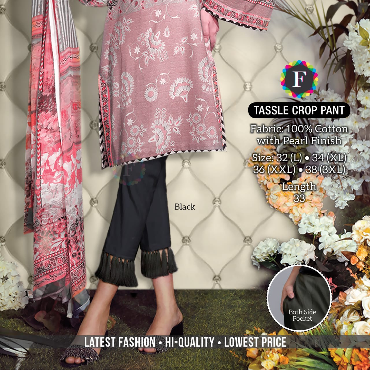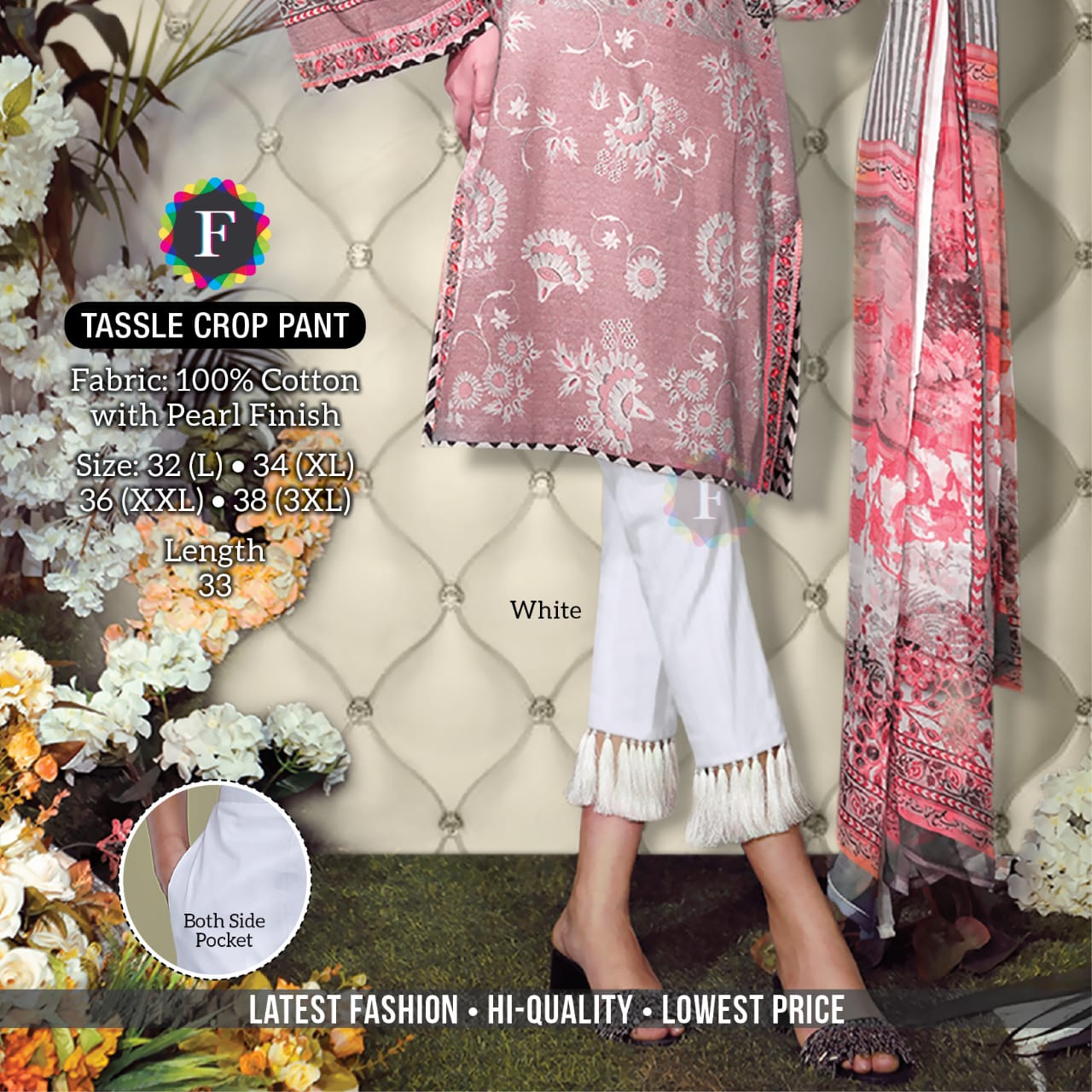 Tassle Crop Pant Summer Wear Elegant Style Bottom Wear Pants