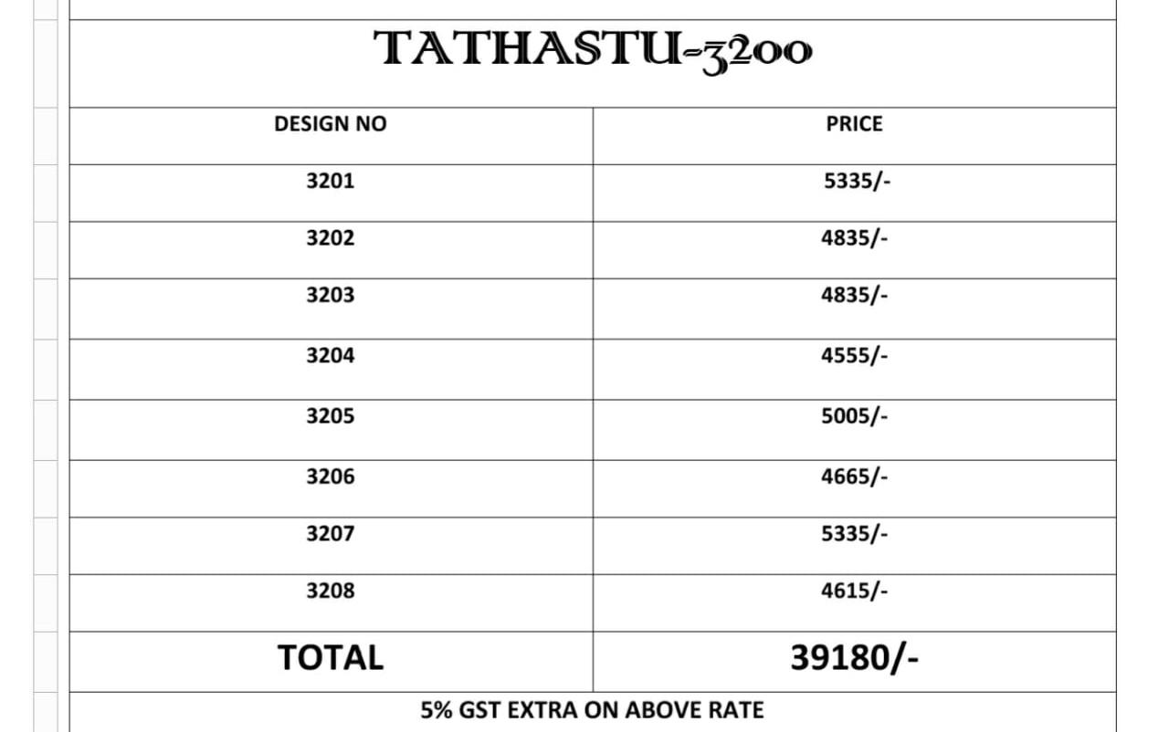 Brand - Tatsthu. Type - saree. Fabric - Pure modal silk . 3201-3208 SERIES GST 5 Percent Extra. Delivery from today |