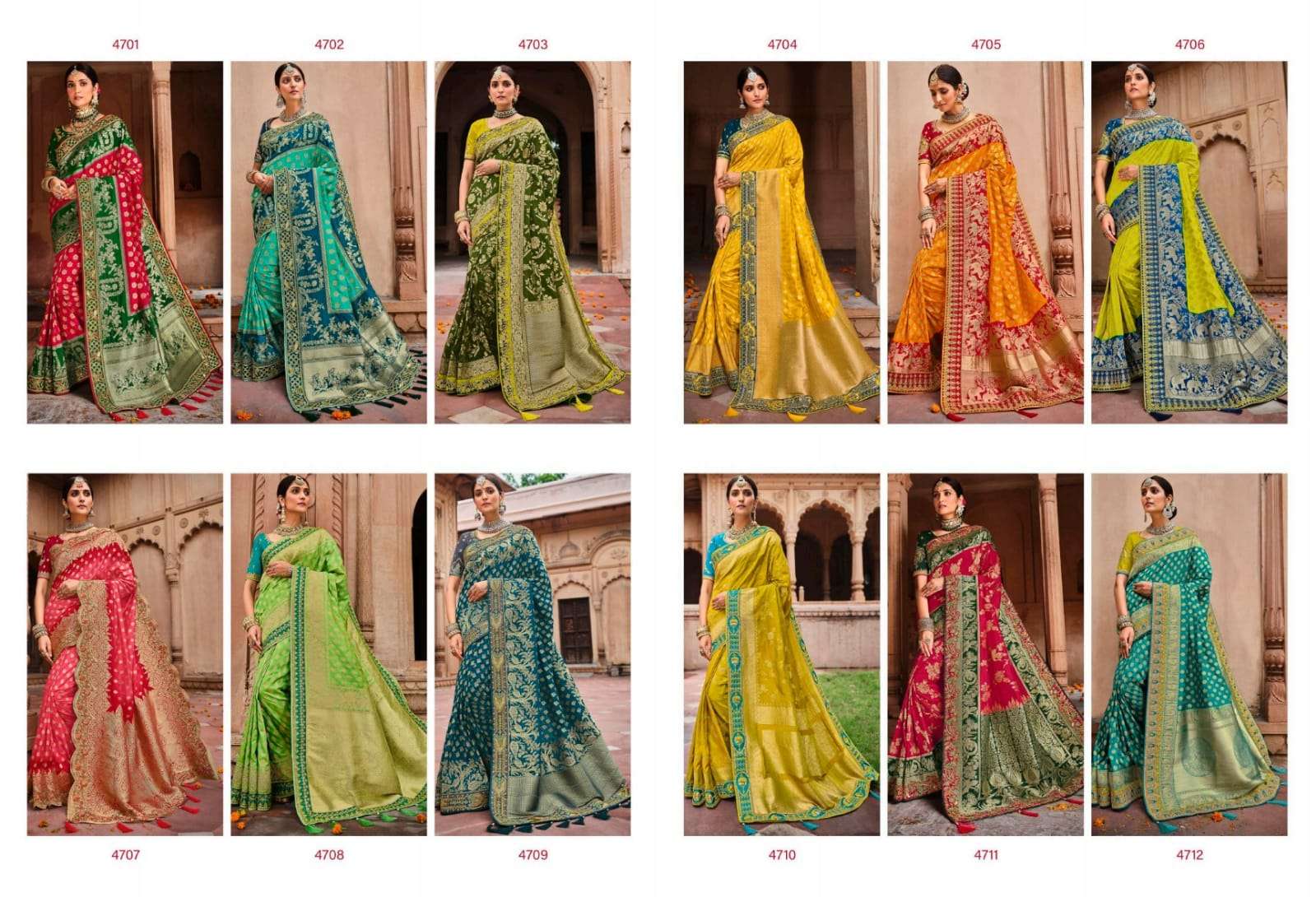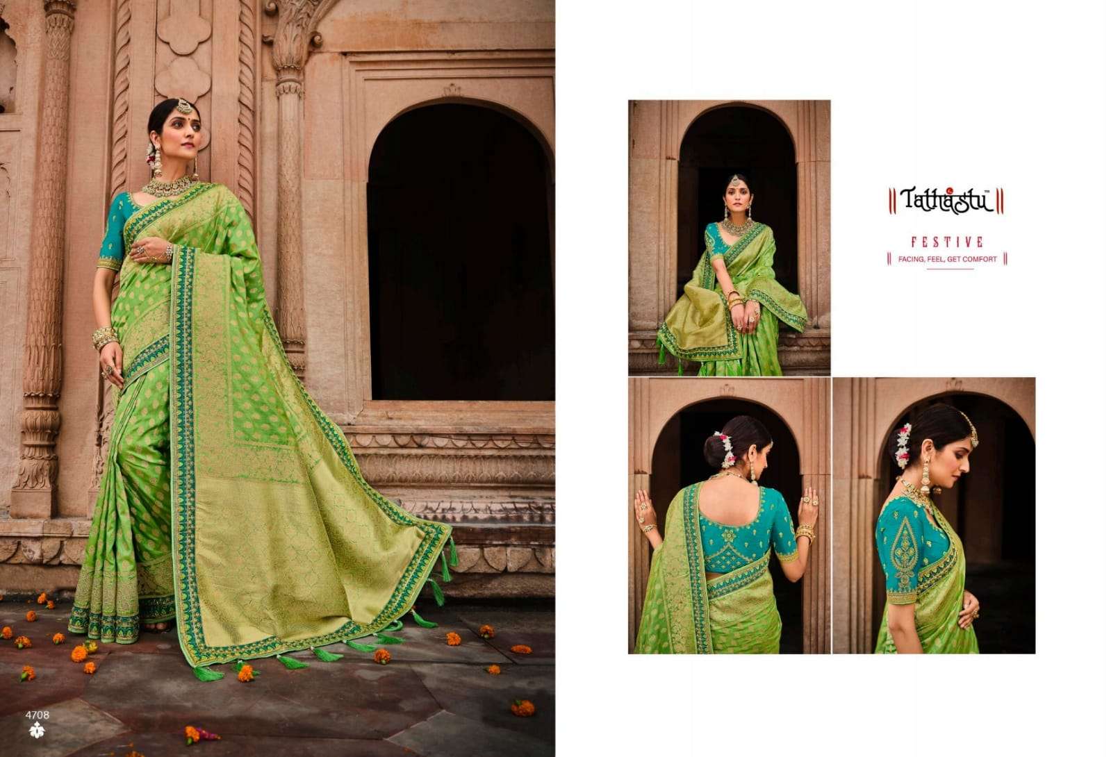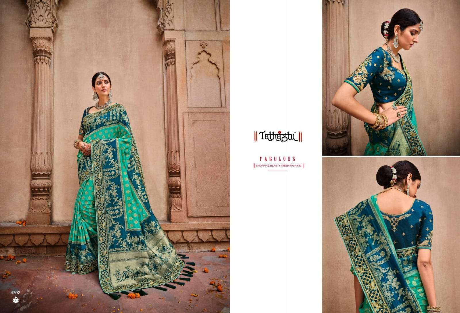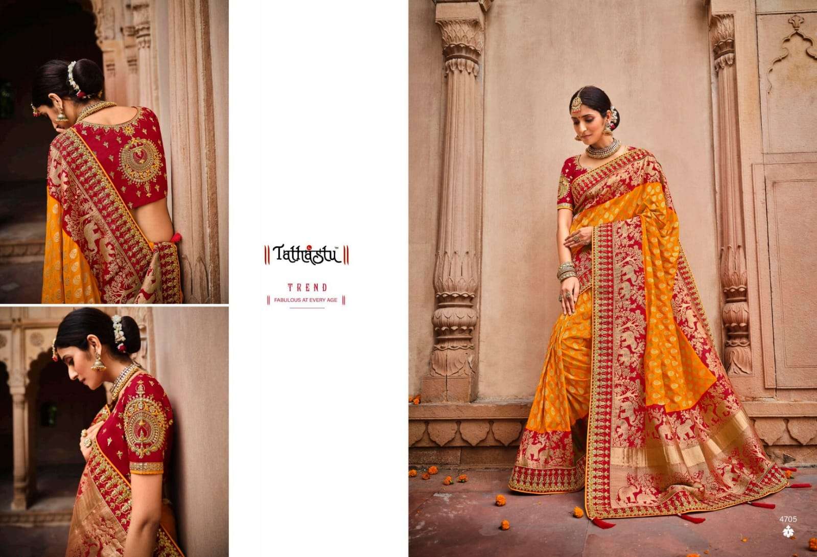 TATHASTU. Series - Â 4701 TO 4712 Fabric- Silk . RATE LIST ATTACHED GST 5 Percent Extra Avr Rate - 2425/- DELIVERY- 3-4 Days BOOK YOUR ORDER NOW |