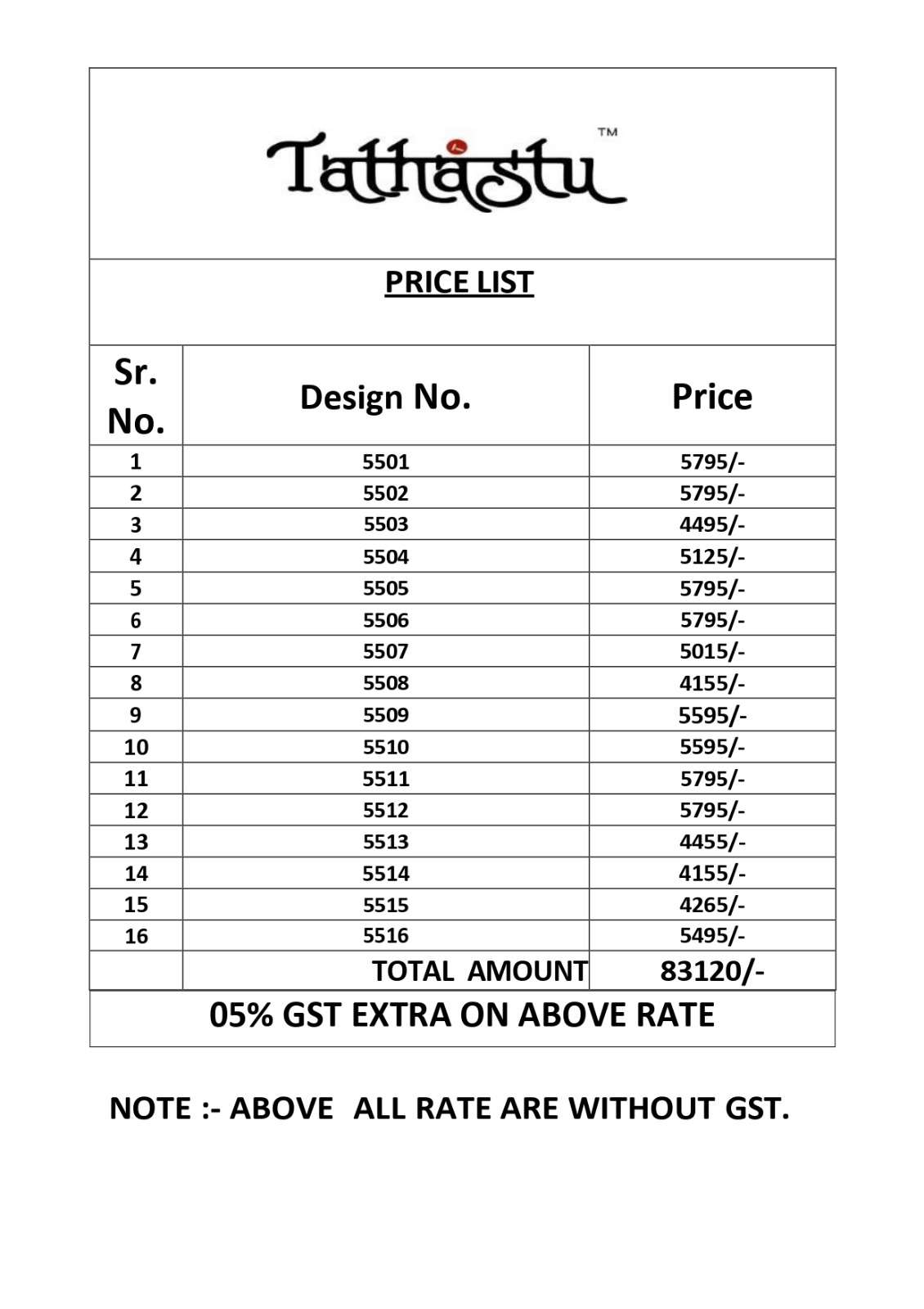 | Catalog | TATHASTU 5500 |