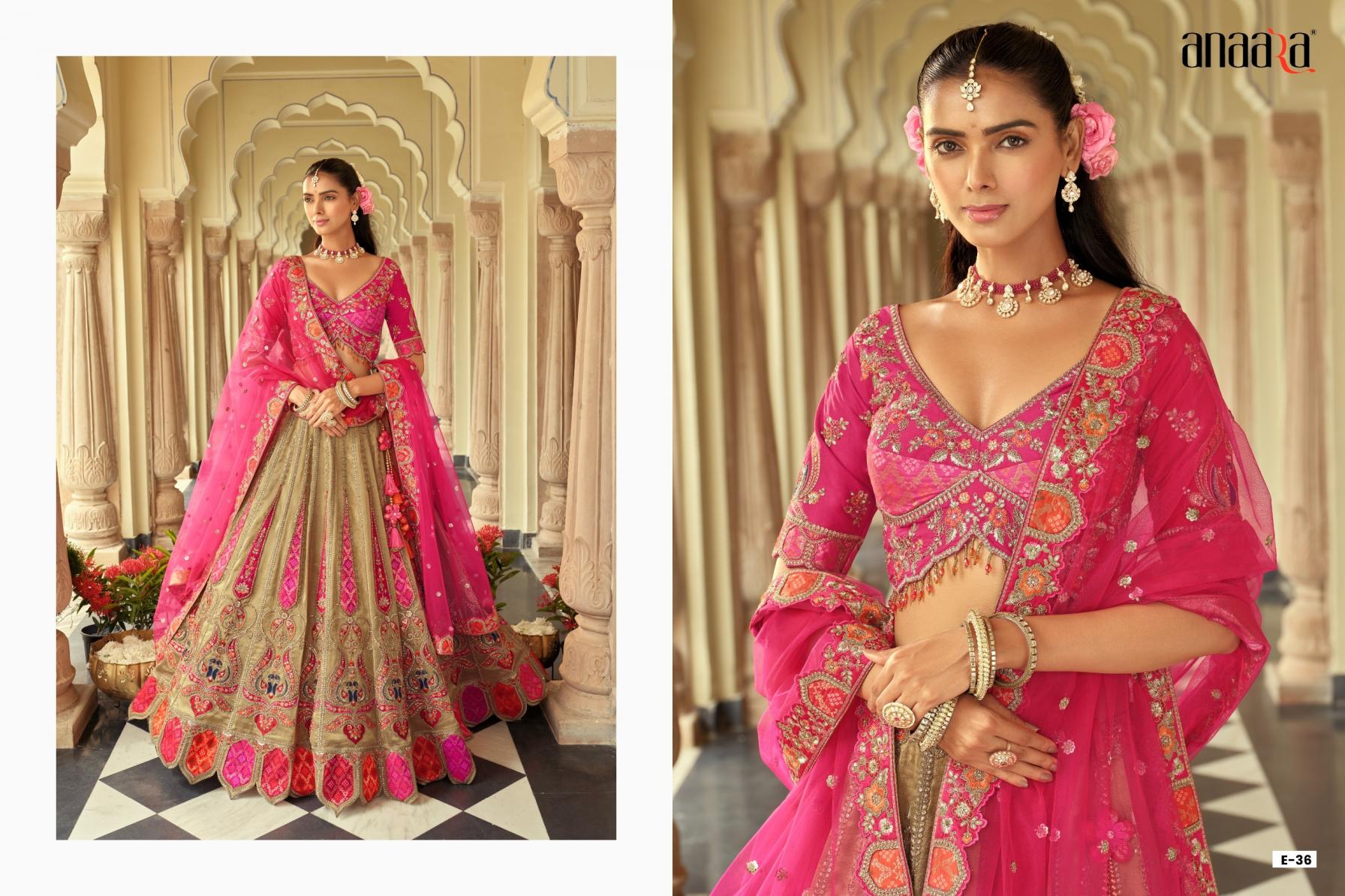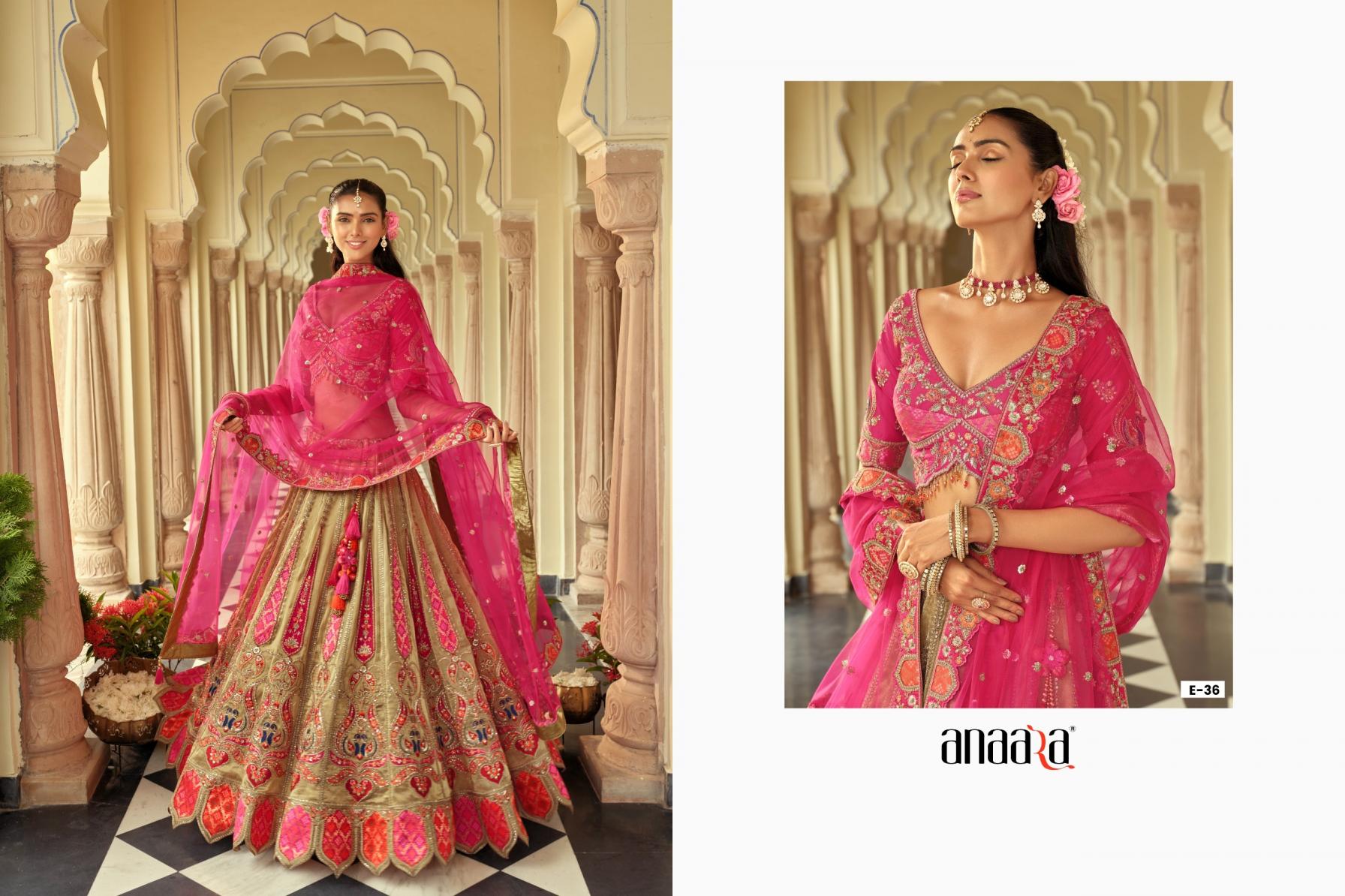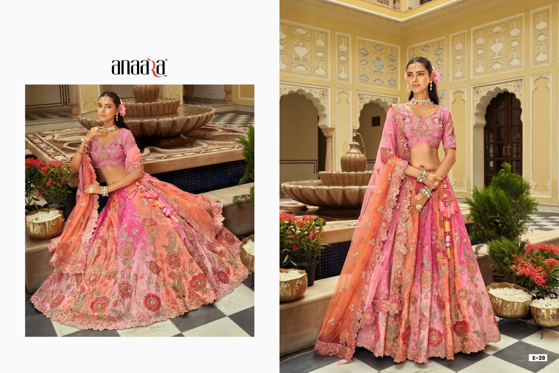 TATHASTU READYMADE LEHENGA COLLECTION BRAND : TATHASTU CATALOG : ANAARA READYMADE LEHENGA(E-31 TO E-40) RATE : ATTACHED +18% GST EXTRA LEHENGA FABRIC : SILK WITH HEAVY EMBOIDERY CUT WORK BORDER WEAVING BUTTI AND ART MIRROR WORK BLOUSE (READYMADE): SILK WITH HEAVY WORK & LATKAN DUPPATA : NET WITH EMBROIDERY CUT WORK BORDER DESIGN NO : E-37,E-38 -DUPATTA JACQUARD GEORGETTE WITH WORK BRIDEMAID,SIDER,RECEPTION WEAR LEHENGA CHOLI |