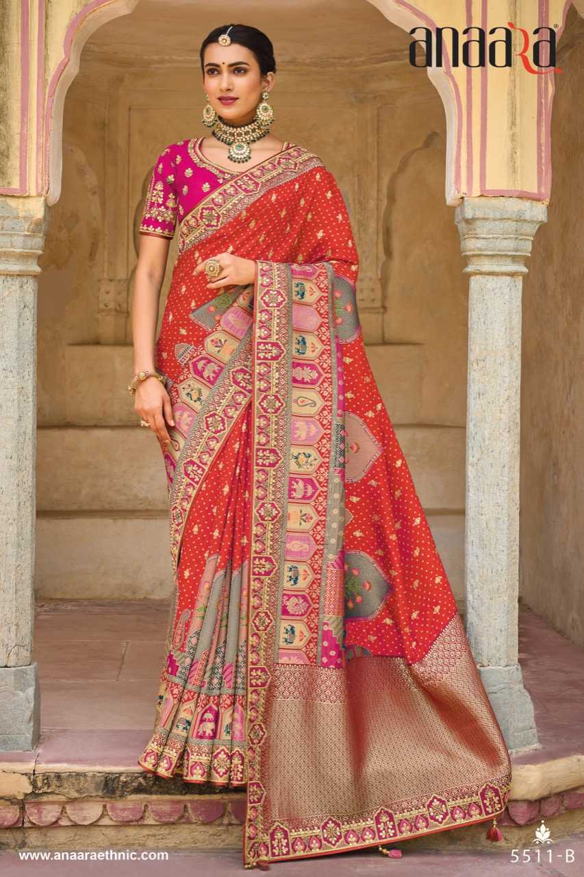 tathastu anaara 5500 series dola silk weaving embroidered saree exports
