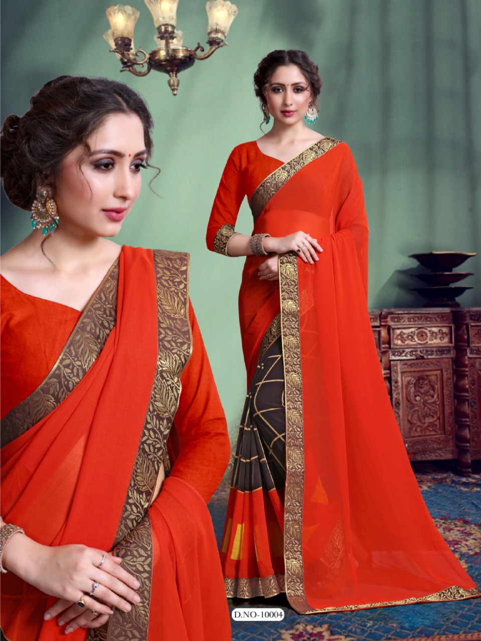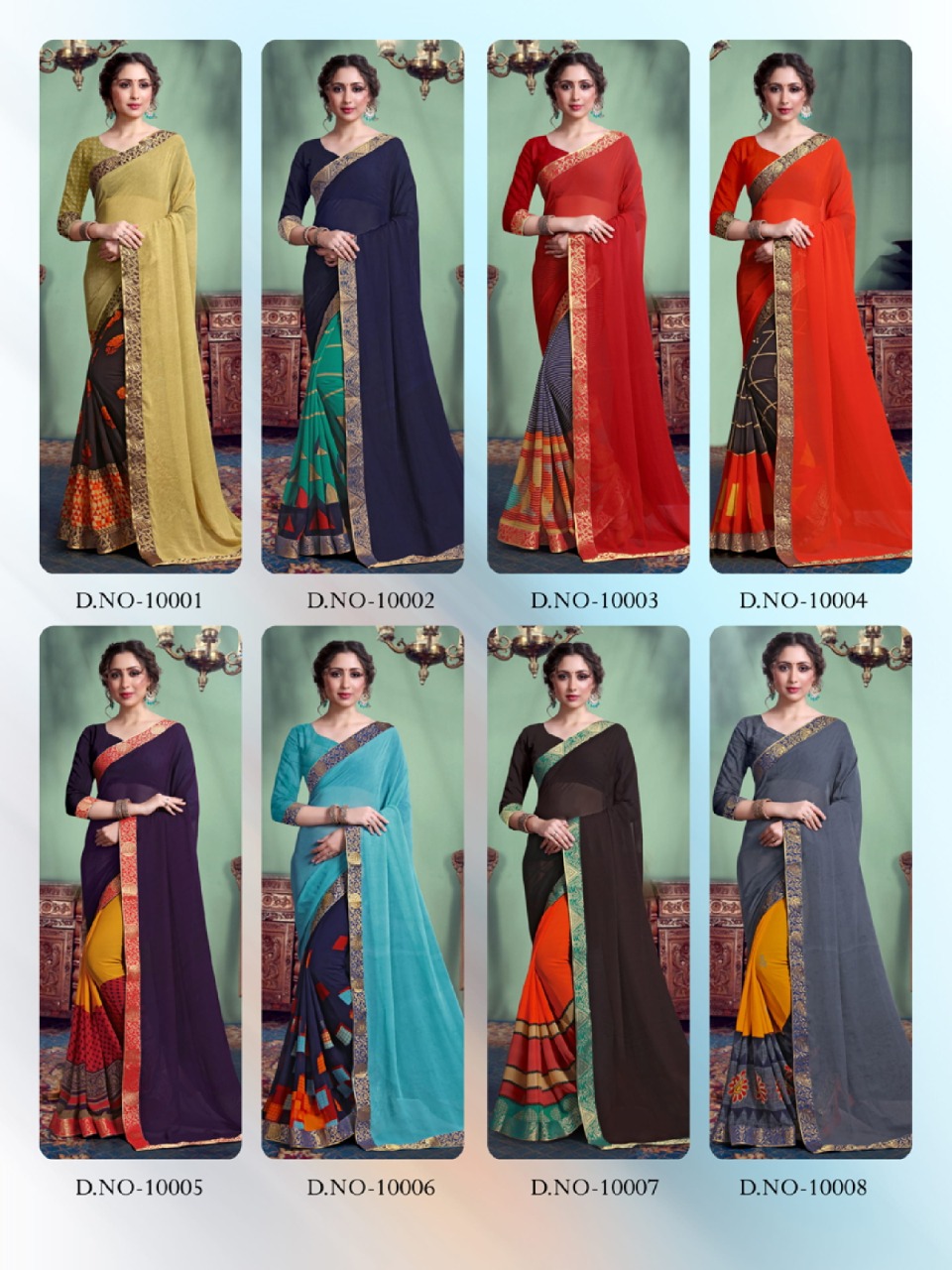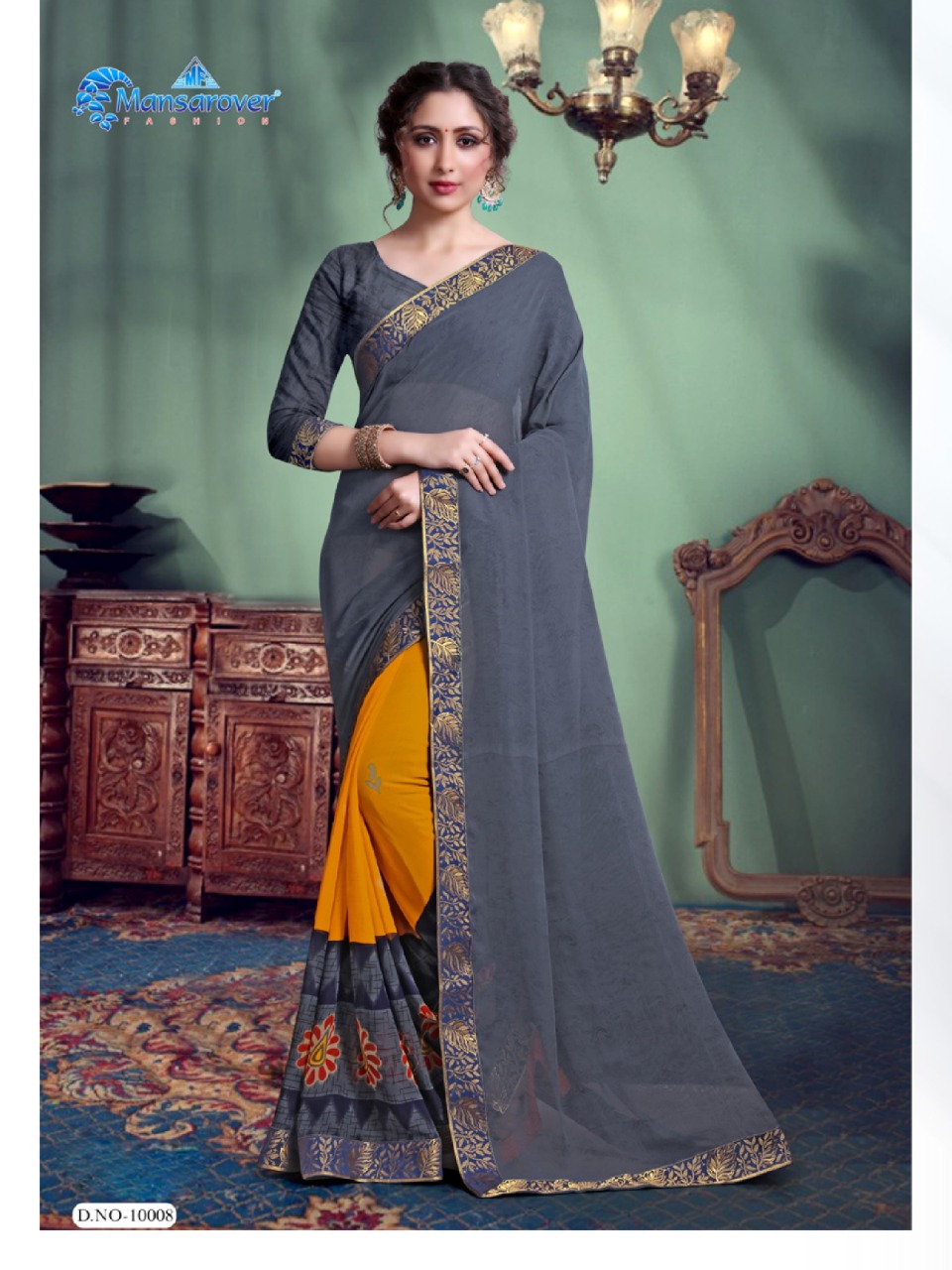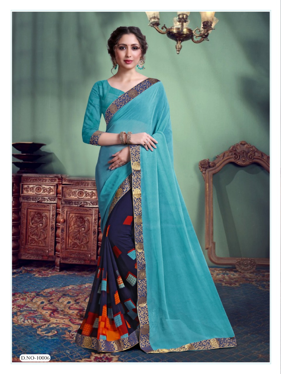 NEW INTRODUCING Tatvam vol 10 Brand:- MANSAROVER FASHION Rate:- 360/- _Fabric:- WEIGHT LACE Half Half PRINT WITH EXCLUSIVE MAHARANI FANCY BODER Total Designs:- 08 _Packing pcs :- set to set. Matching :- SINGLE COLOR Cut :- 6/-mtr GST 5 Percent Extra. Delivery from today |