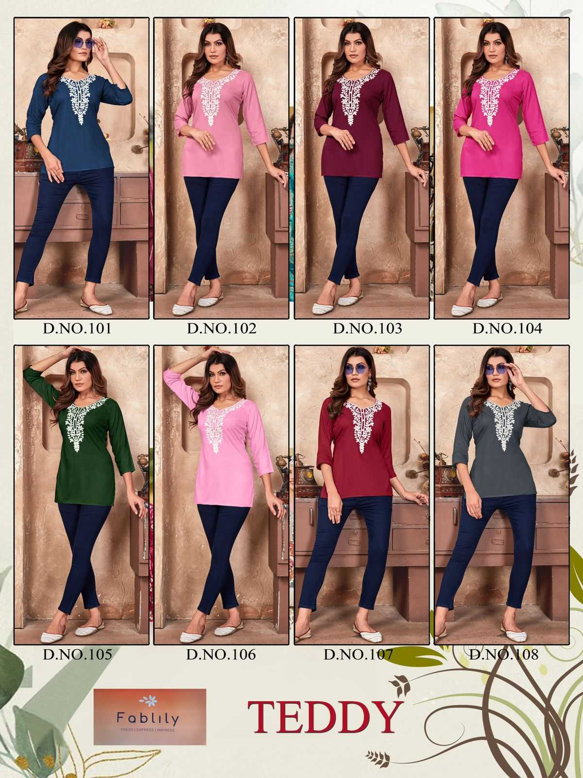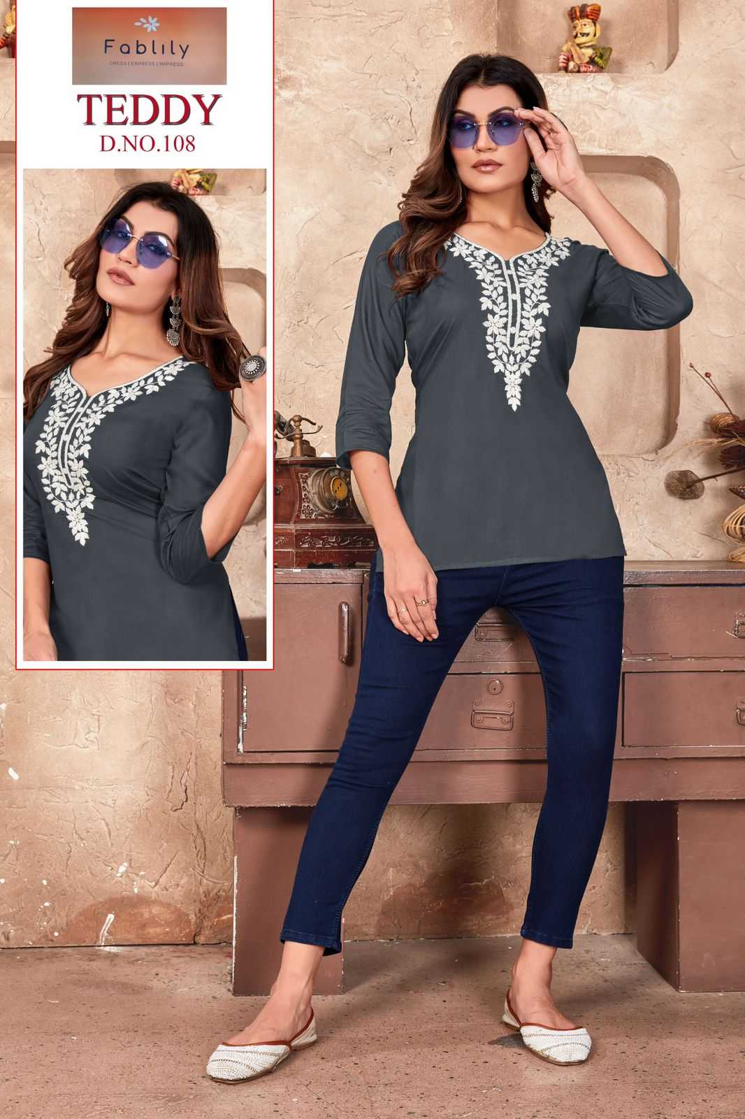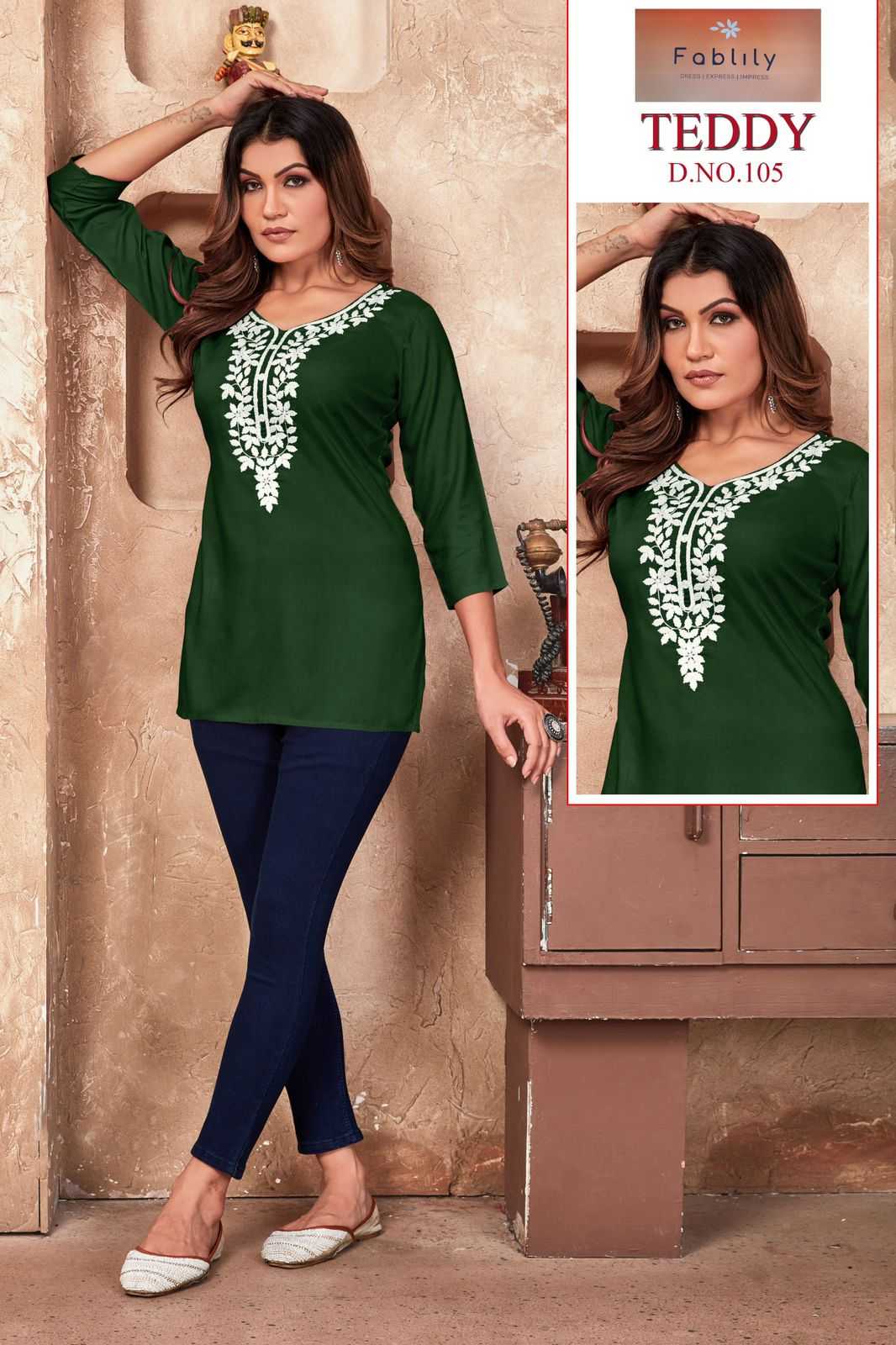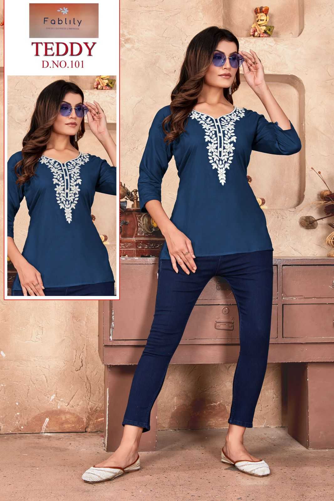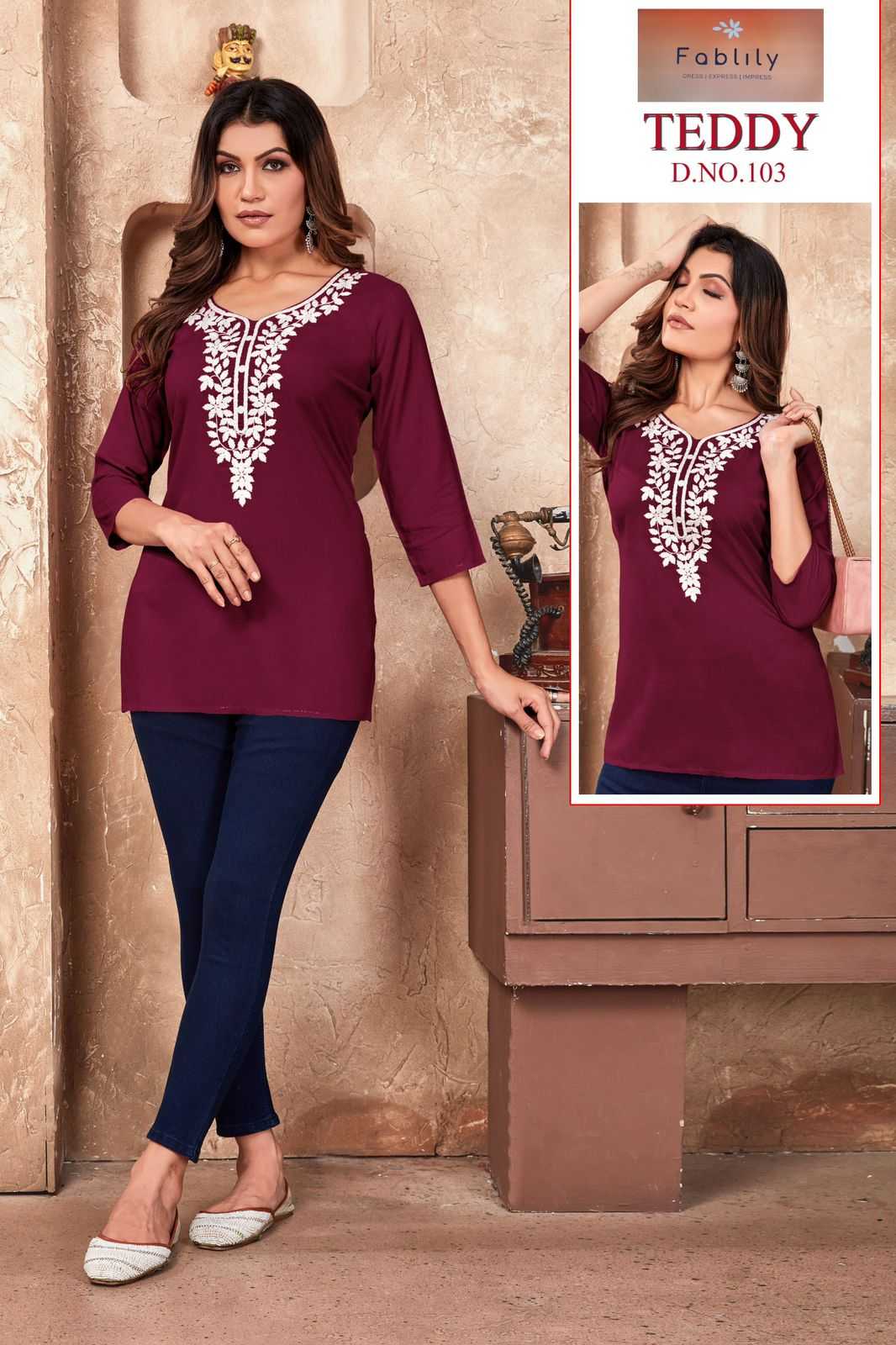 teddy by fablily classy outfit look rayon embroidery neck work full stitch girls top