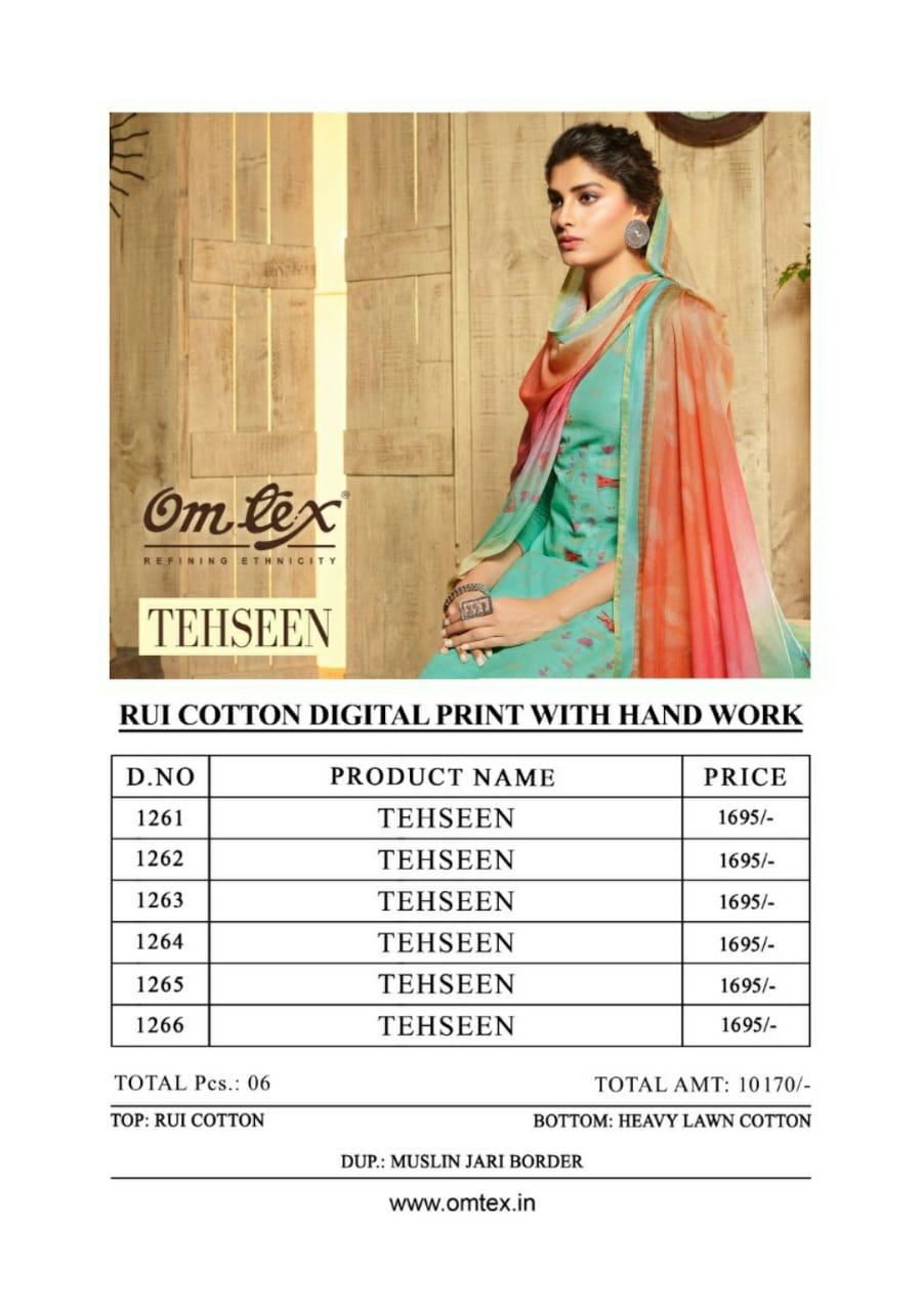 Tehseen By Omtex Cotton Digital Print With Hand Work Suits Wholesaler
