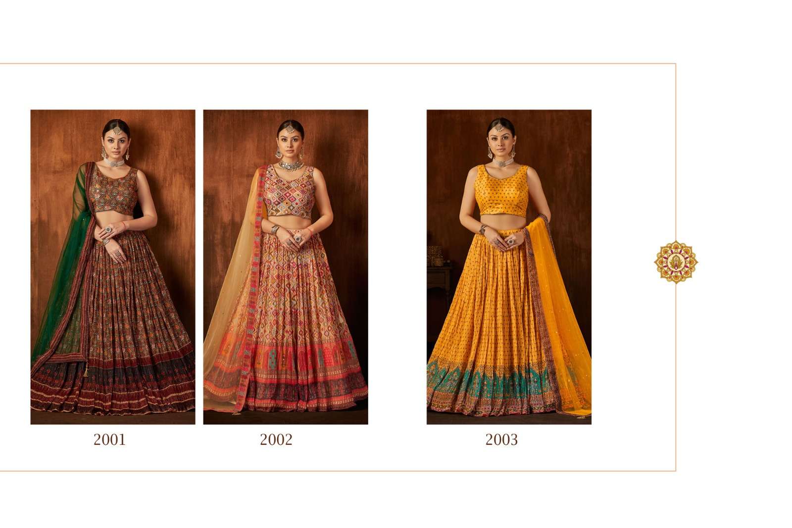 For the upcoming Festive seasons we launch Readymade Crop-top Choli catalog Catalog Name :- Aakrut vol 2 Fabric Details :- Size : L(40) , XL(42) , XXL(44). Lehenga Fair : 3.5 Meter. Note : Sleeves are attach in the Choli. GST : 5%. |