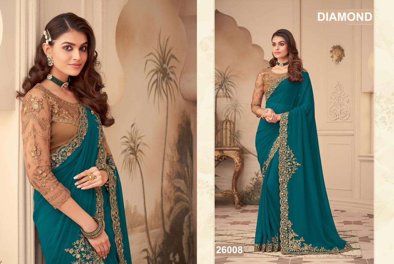 tfh present diamond heavy designer border function wear sarees wholesaler