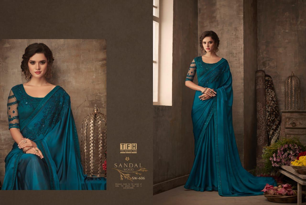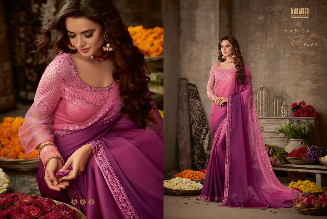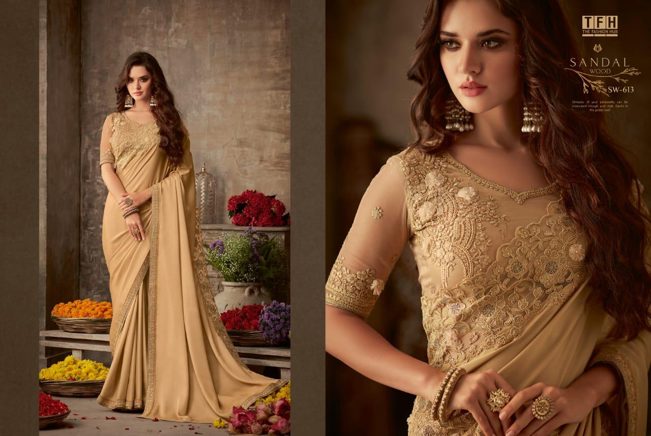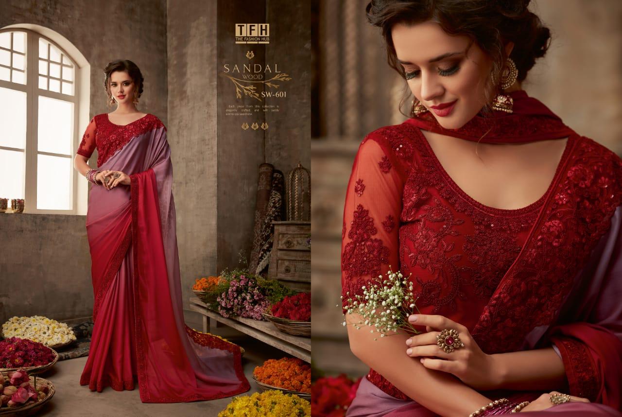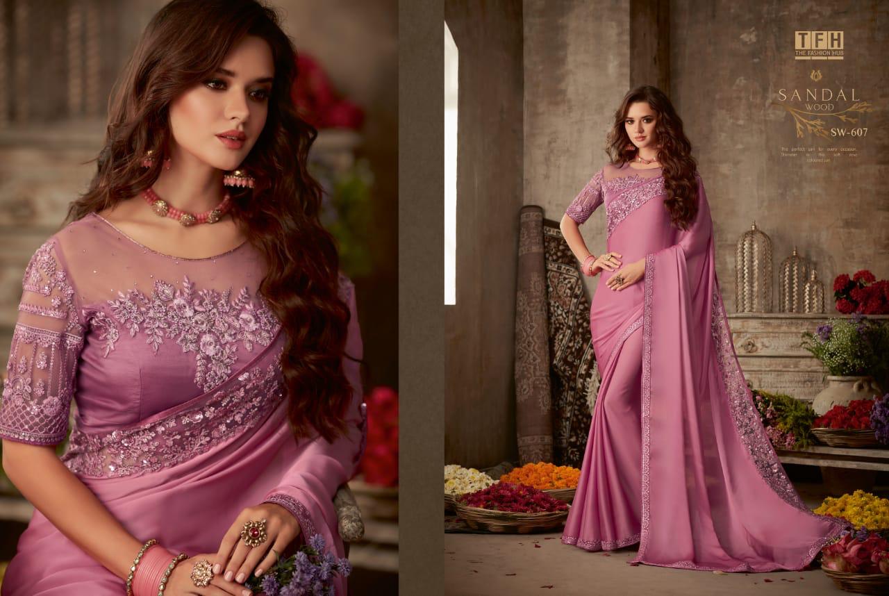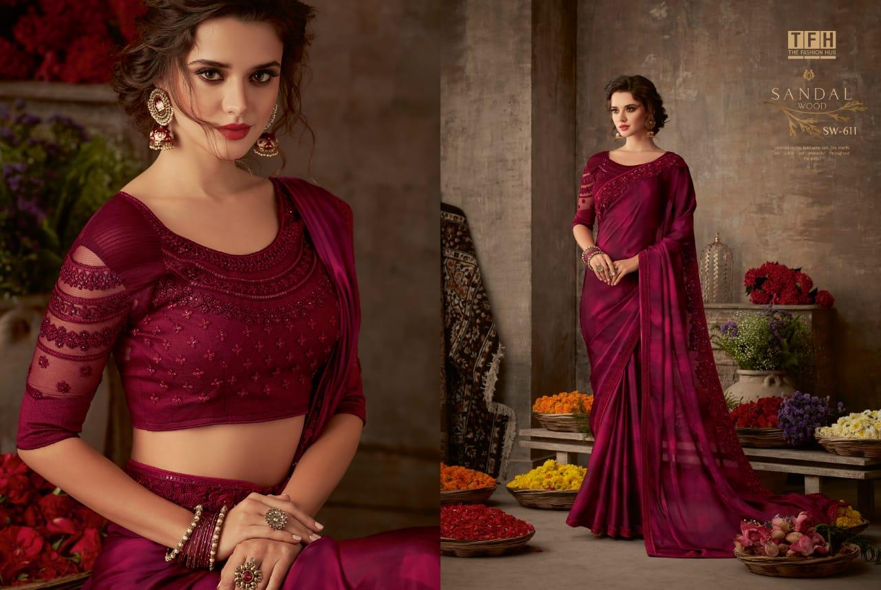 Tfh Sandalwood 6th Edition 601-618 Series Silk Party Wear Embroidery Saree