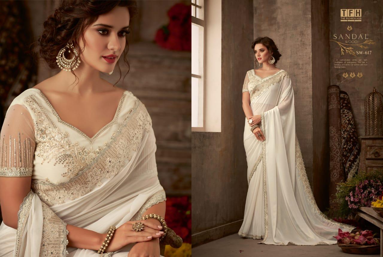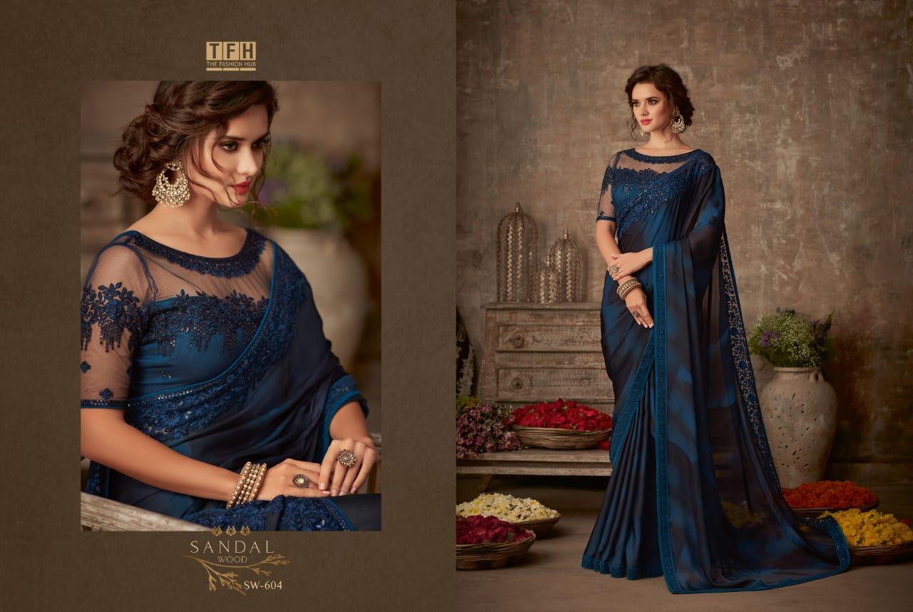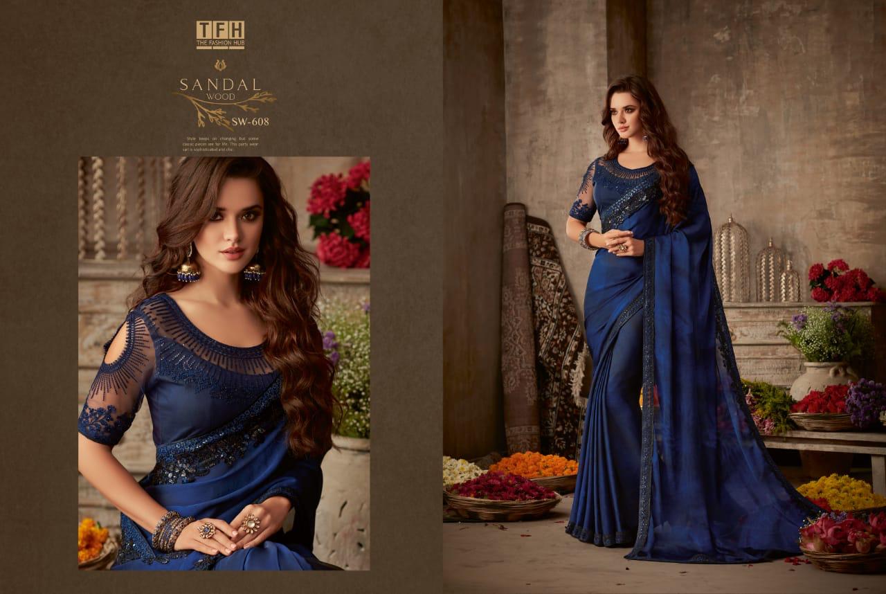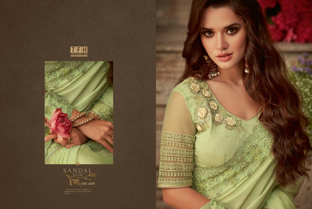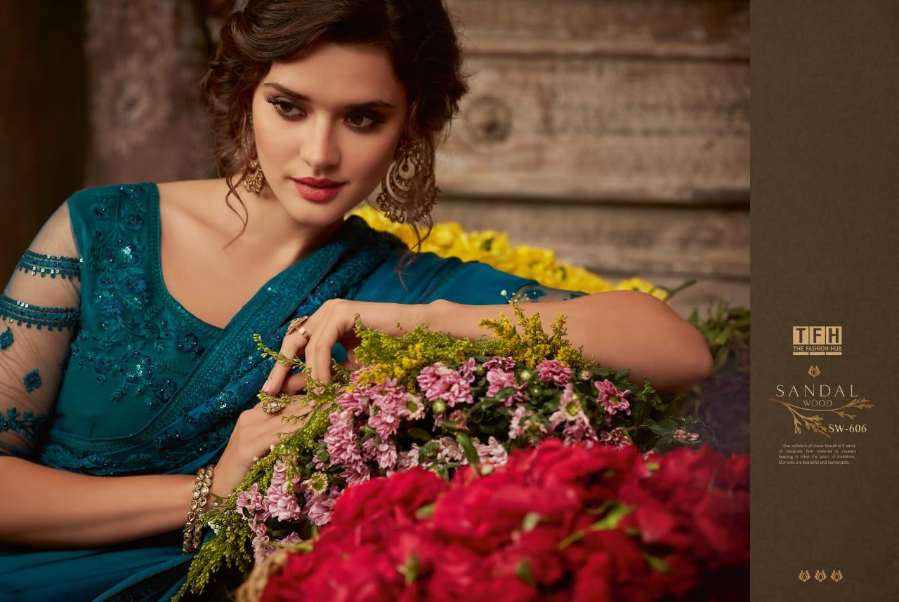 Tfh Sandalwood 6th Edition 601-618 Series Silk Party Wear Embroidery Saree