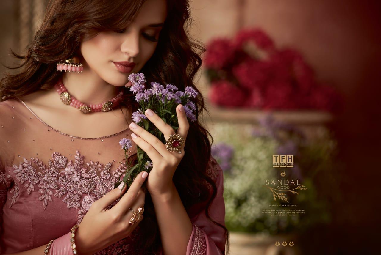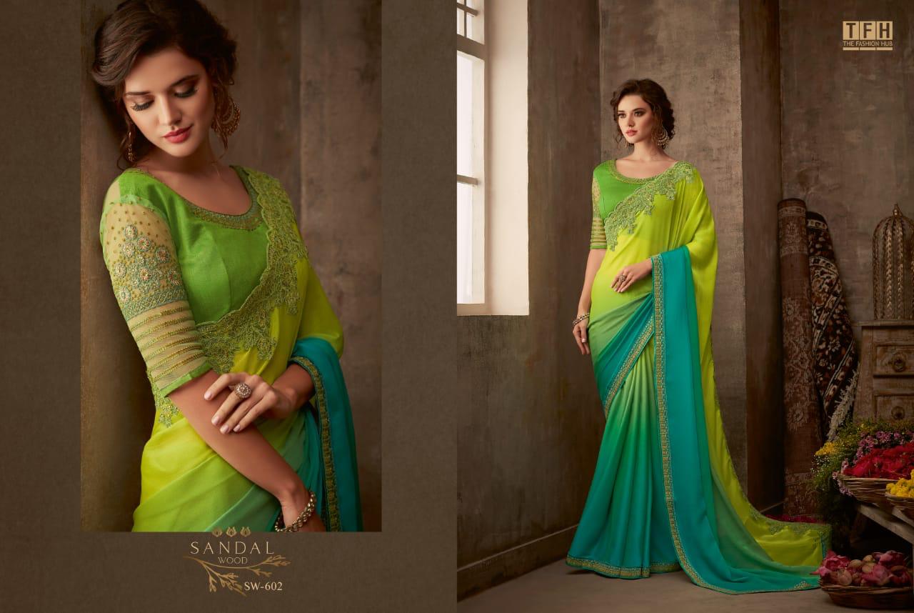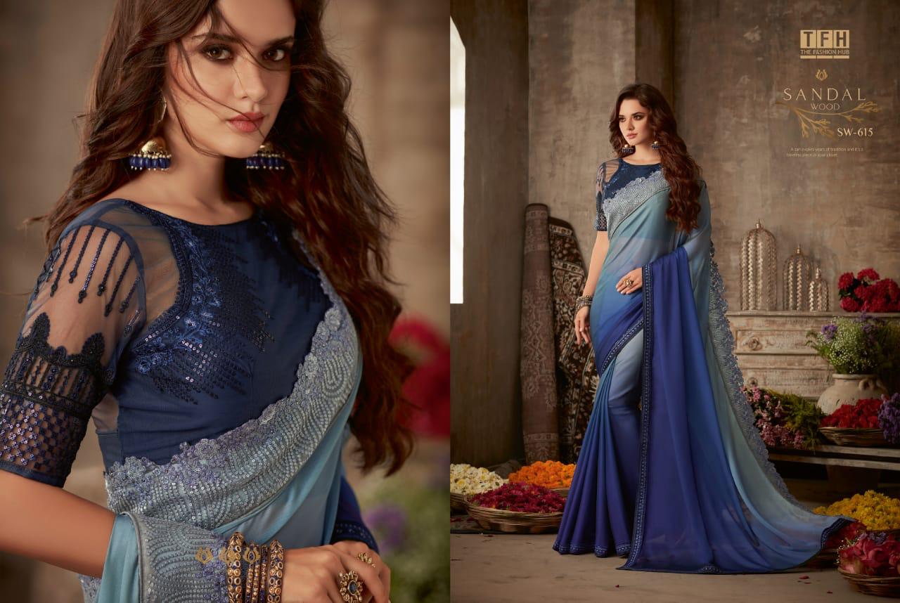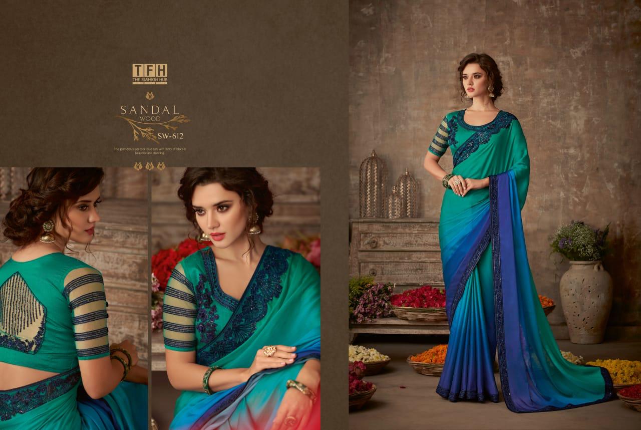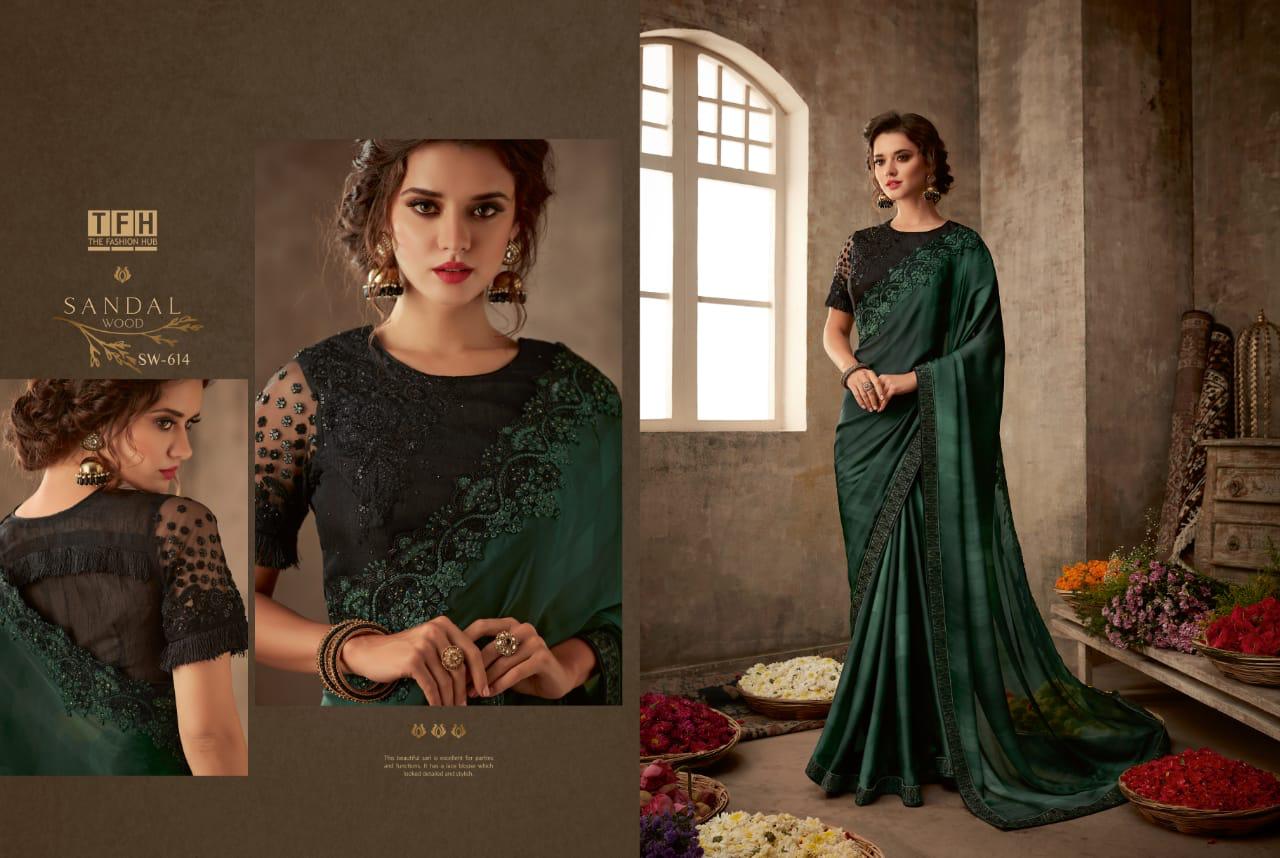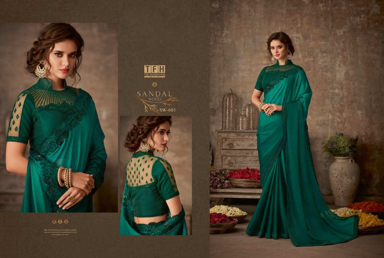 Tfh Sandalwood 6th Edition 601-618 Series Silk Party Wear Embroidery Saree