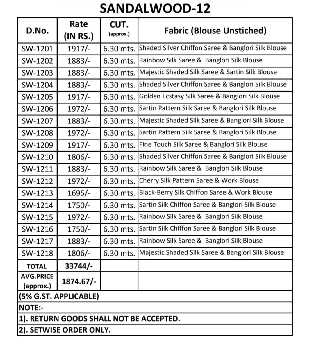 AVAILABILITY: On Booking SANDALWOOD VOL 12 1201-1218