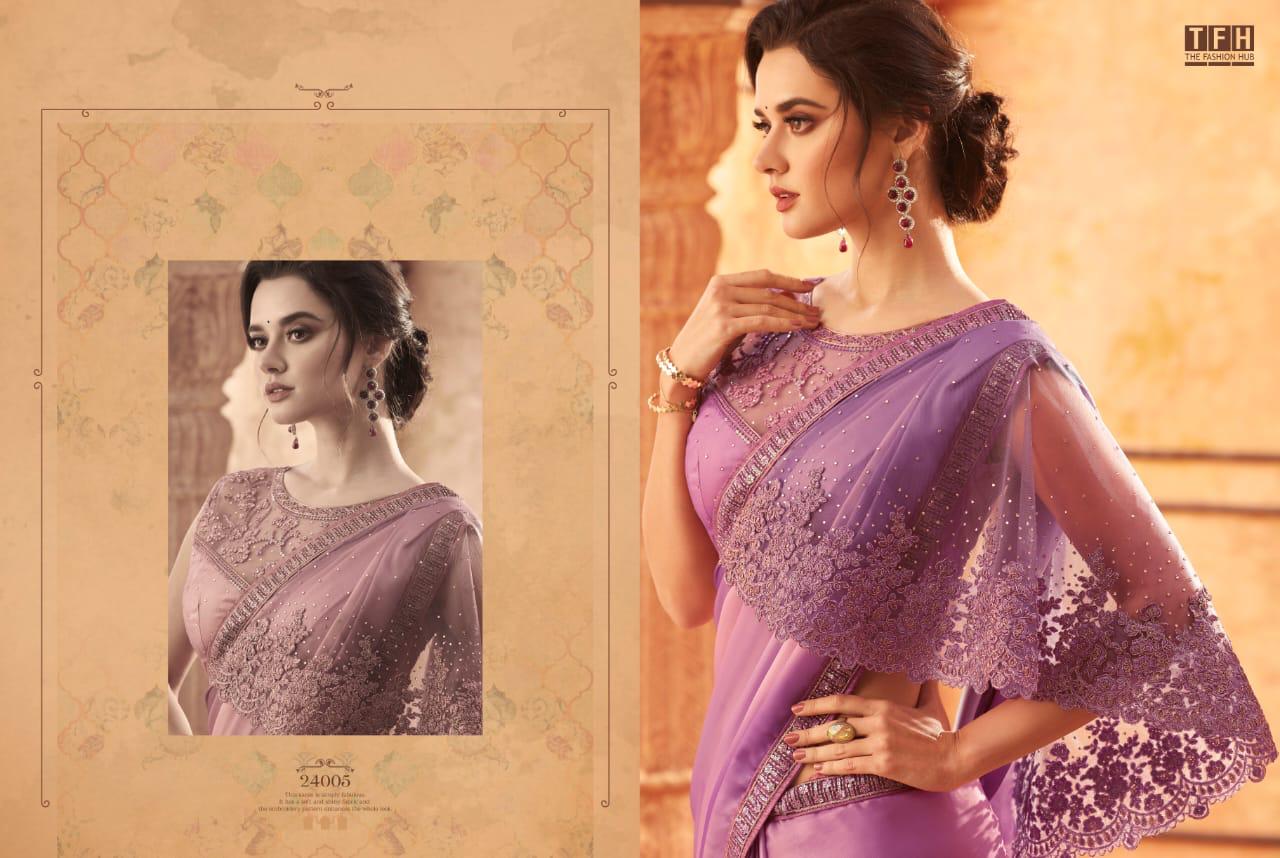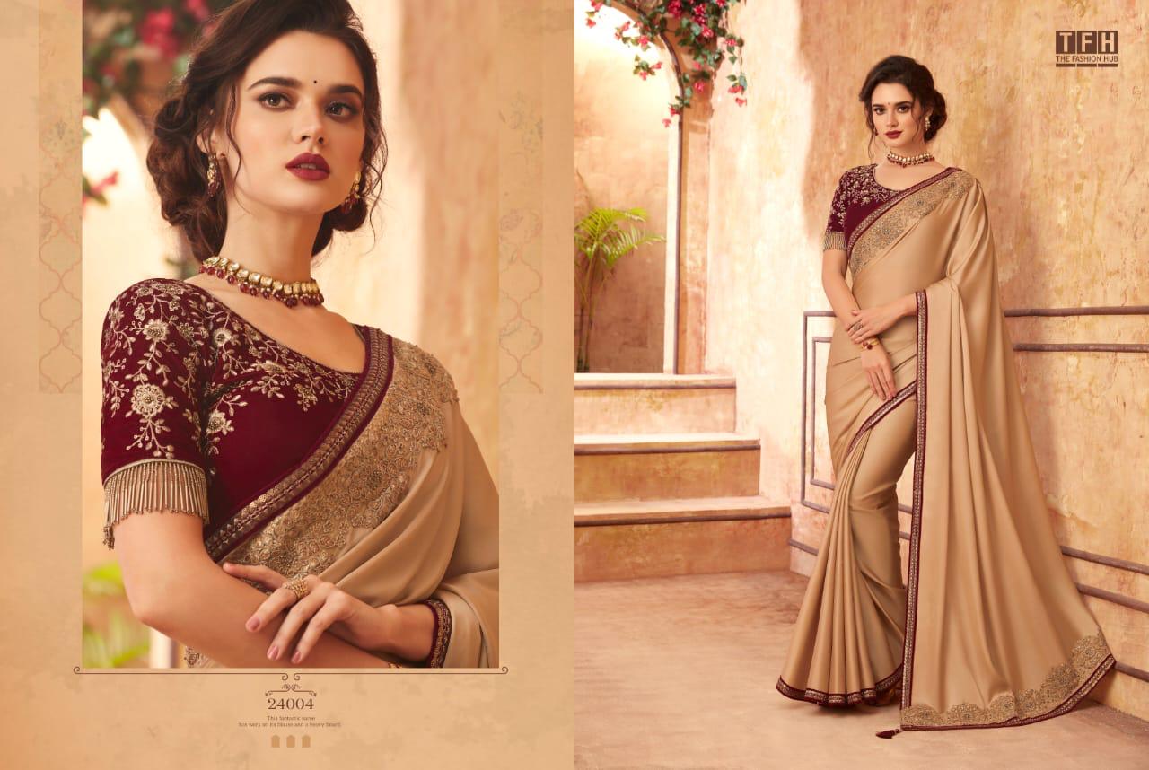 Brand - TFH . Type - Saree. Series - 24001 to 24018. SET TO SET ONLY PRICE LIST HAS ATTACHED GST 5 Percent Extra Delivery 3-4 days |