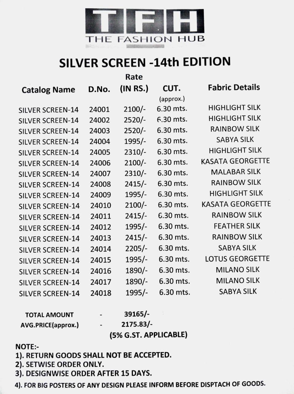 Tfh Silver Screen Vol 14 Series 24001-24018 Silk Party Wear Saree With Designer Blouse