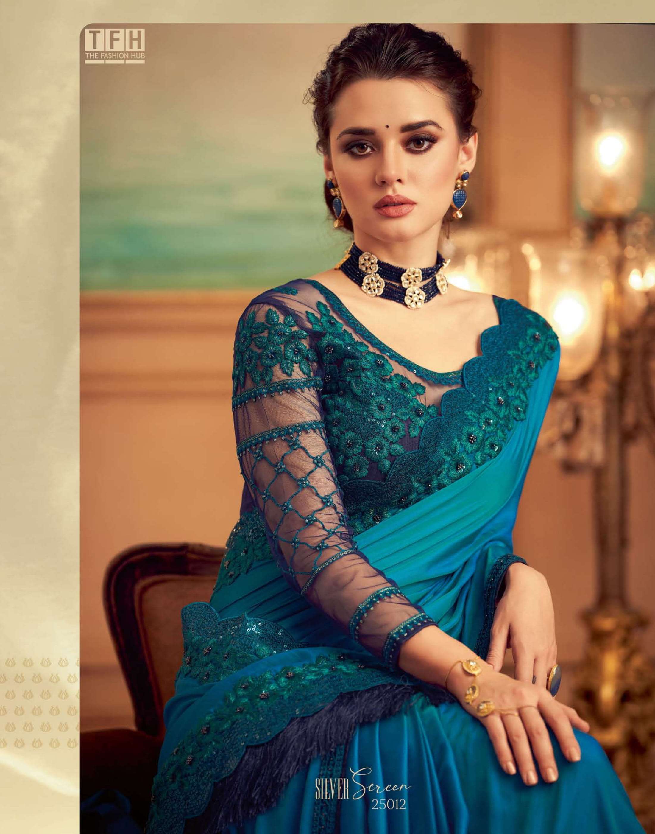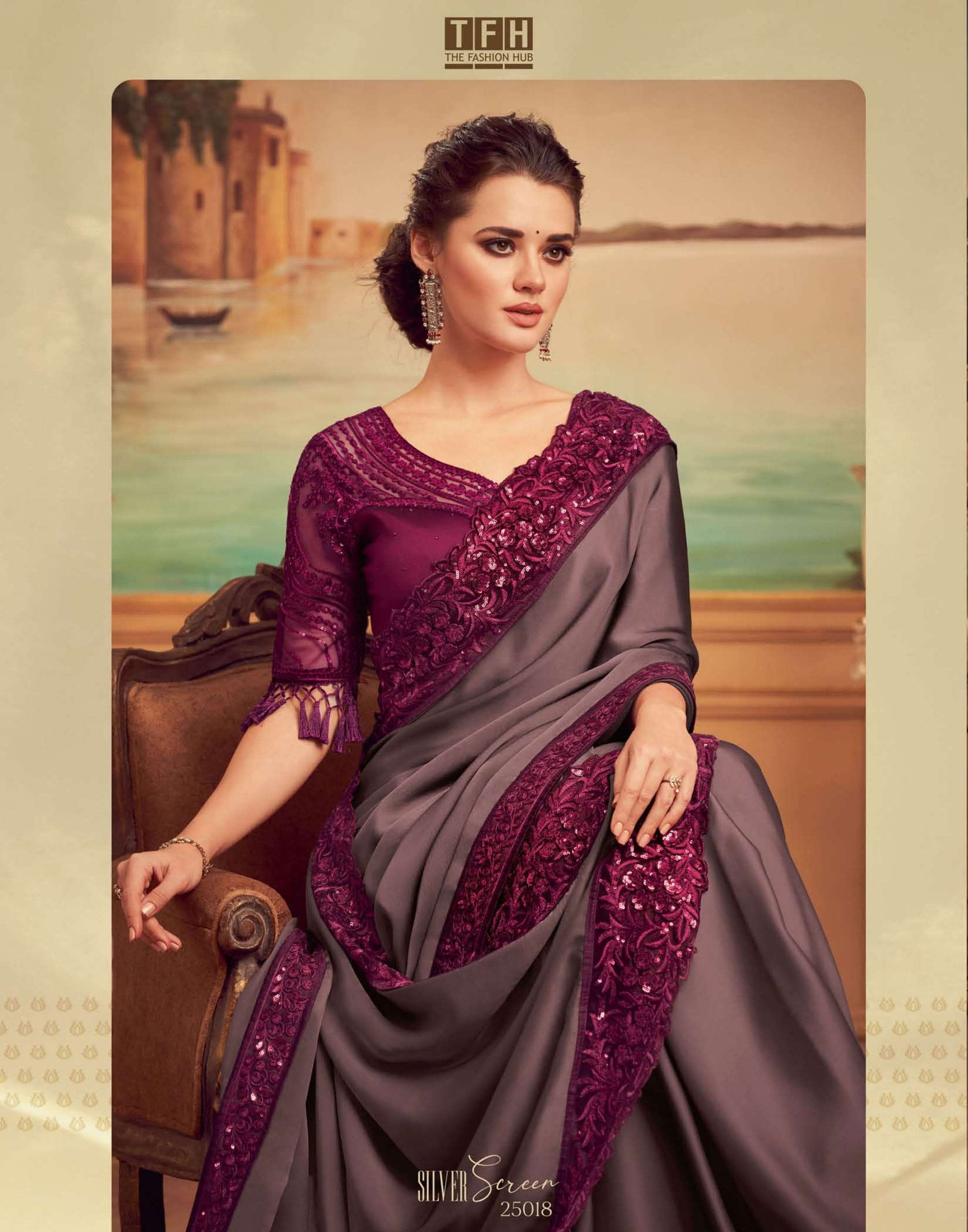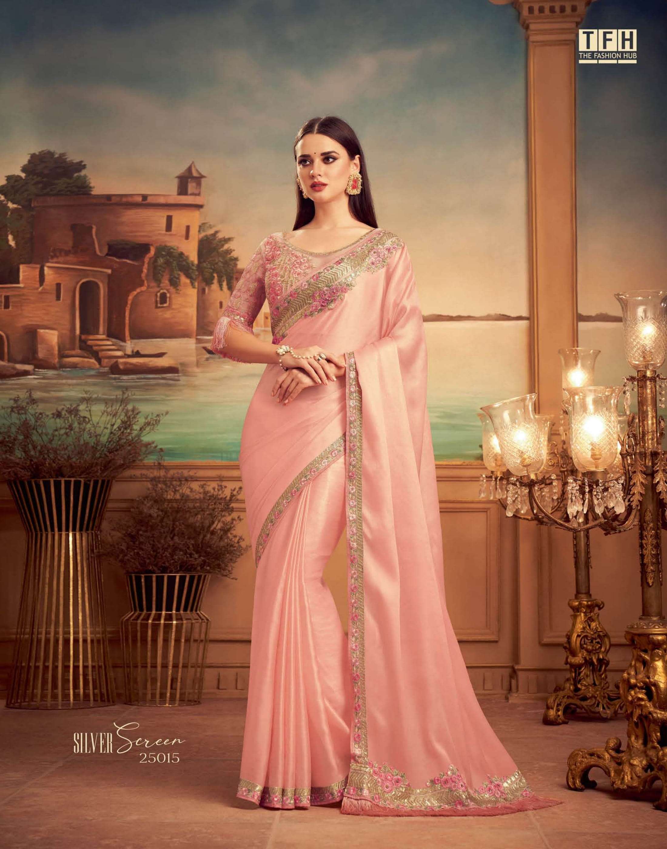 tfh silver screen vol 15 25001-25018 series embroidered indian heavy saris exporter