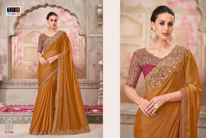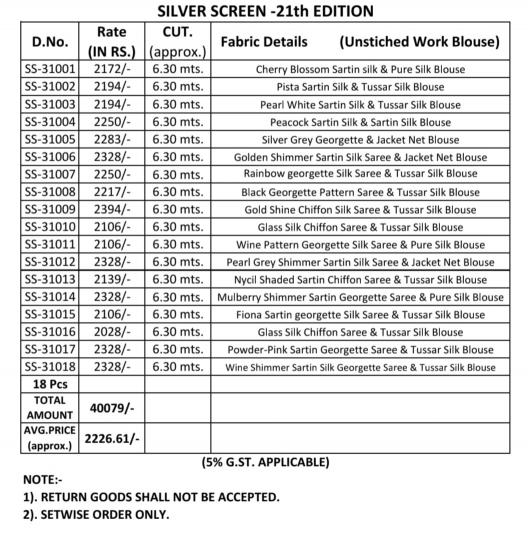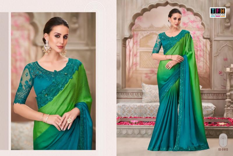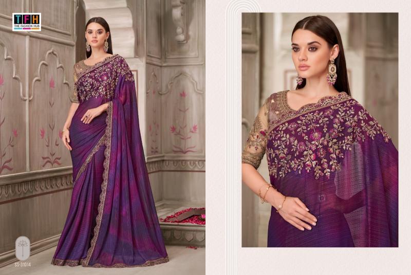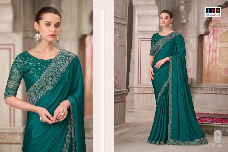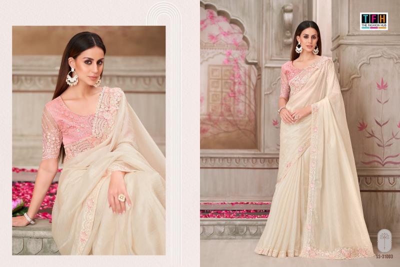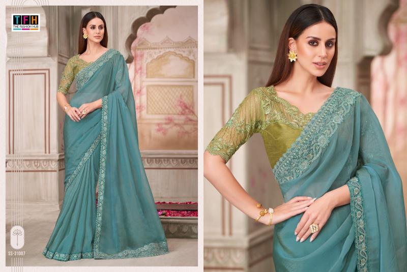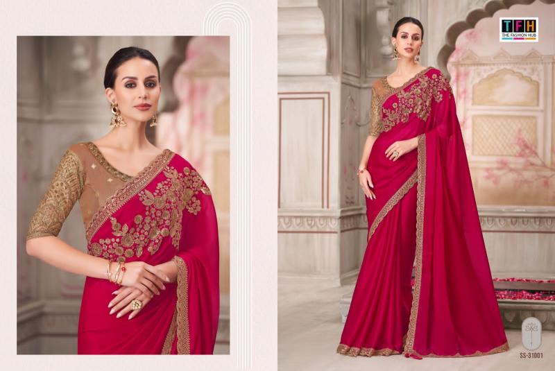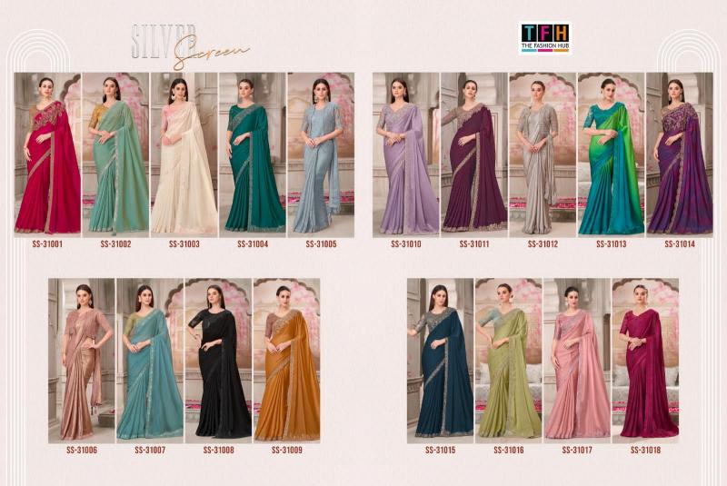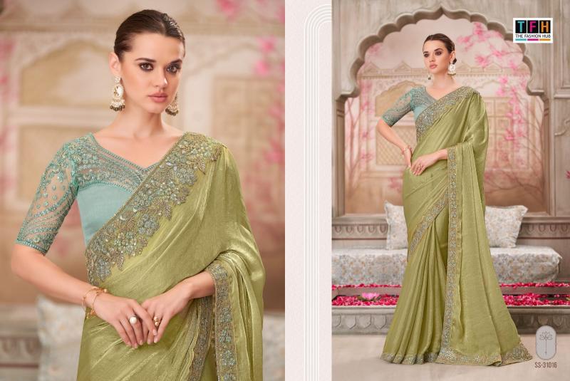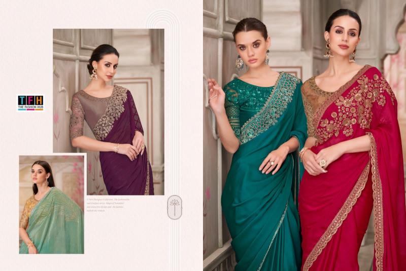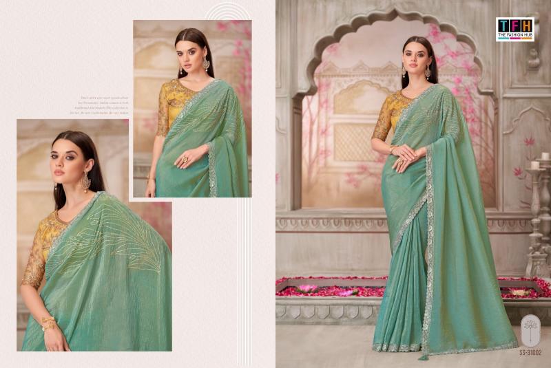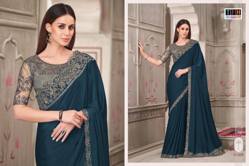 Brand :Tfh Catalog name : Silver Screen 21 Edition Series :31001 TO 31018 Saree fabric : Attached With List Blouse : Attached With List Price List: Attached With List- 5% Gst Occasion : Party wear |
