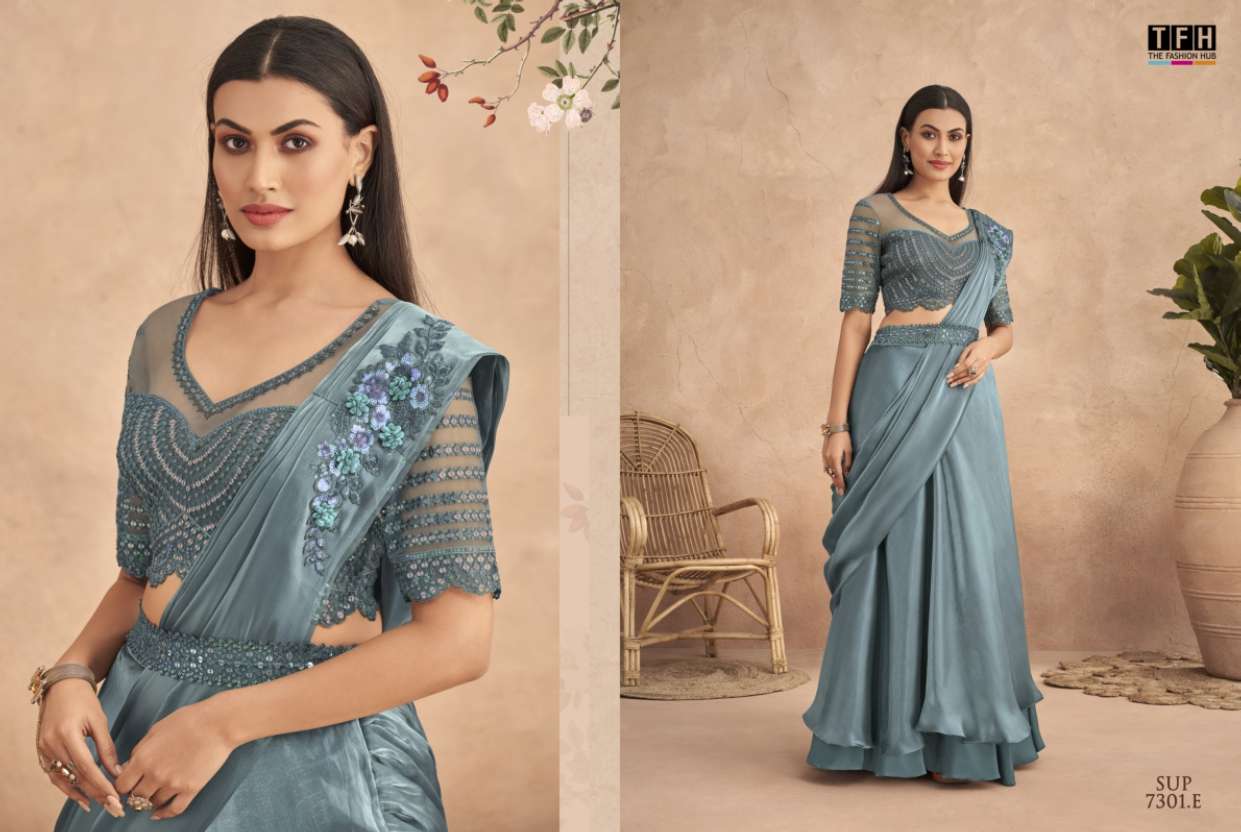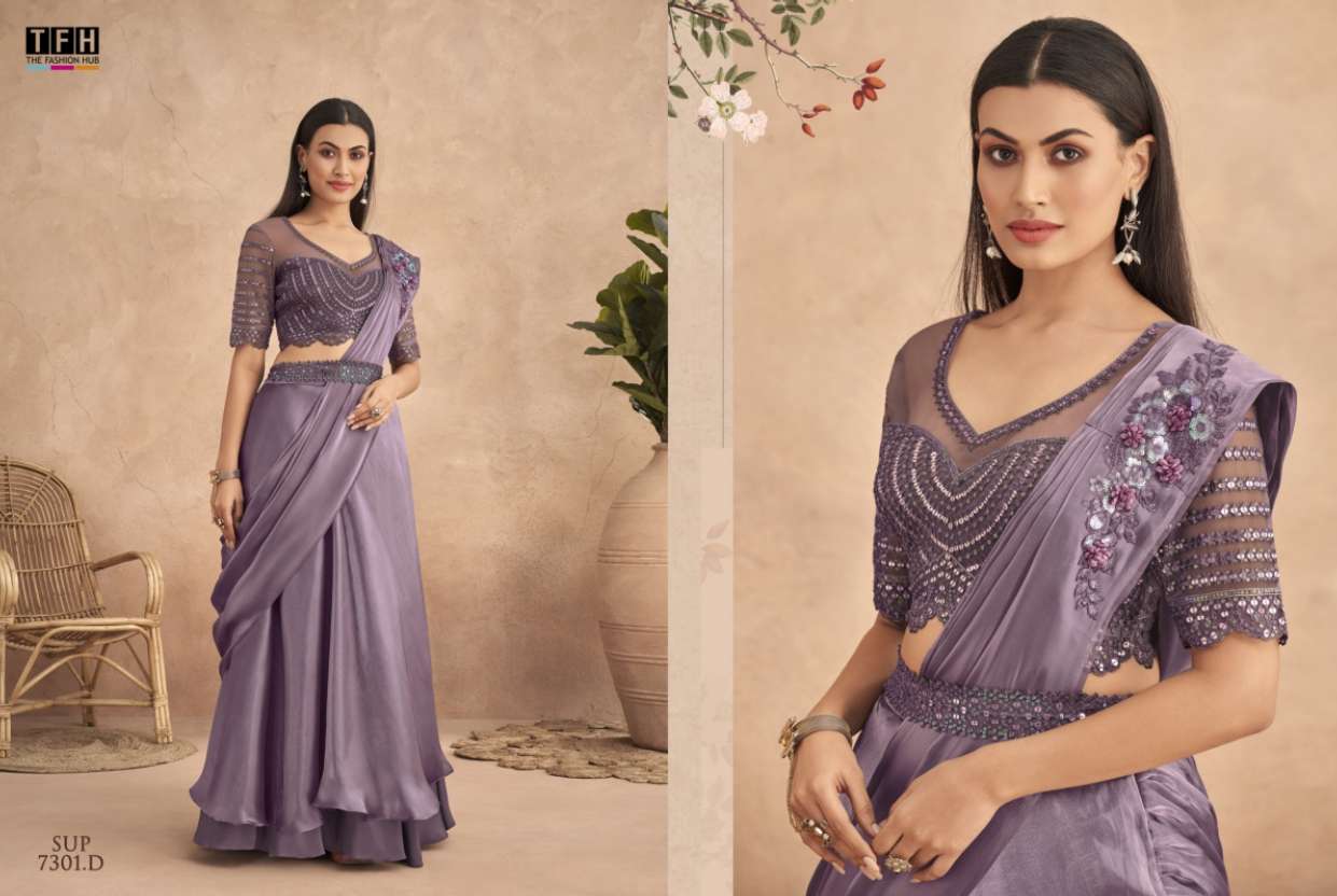 tfh super star hit design 7301 wedding wear fancy saree with belt