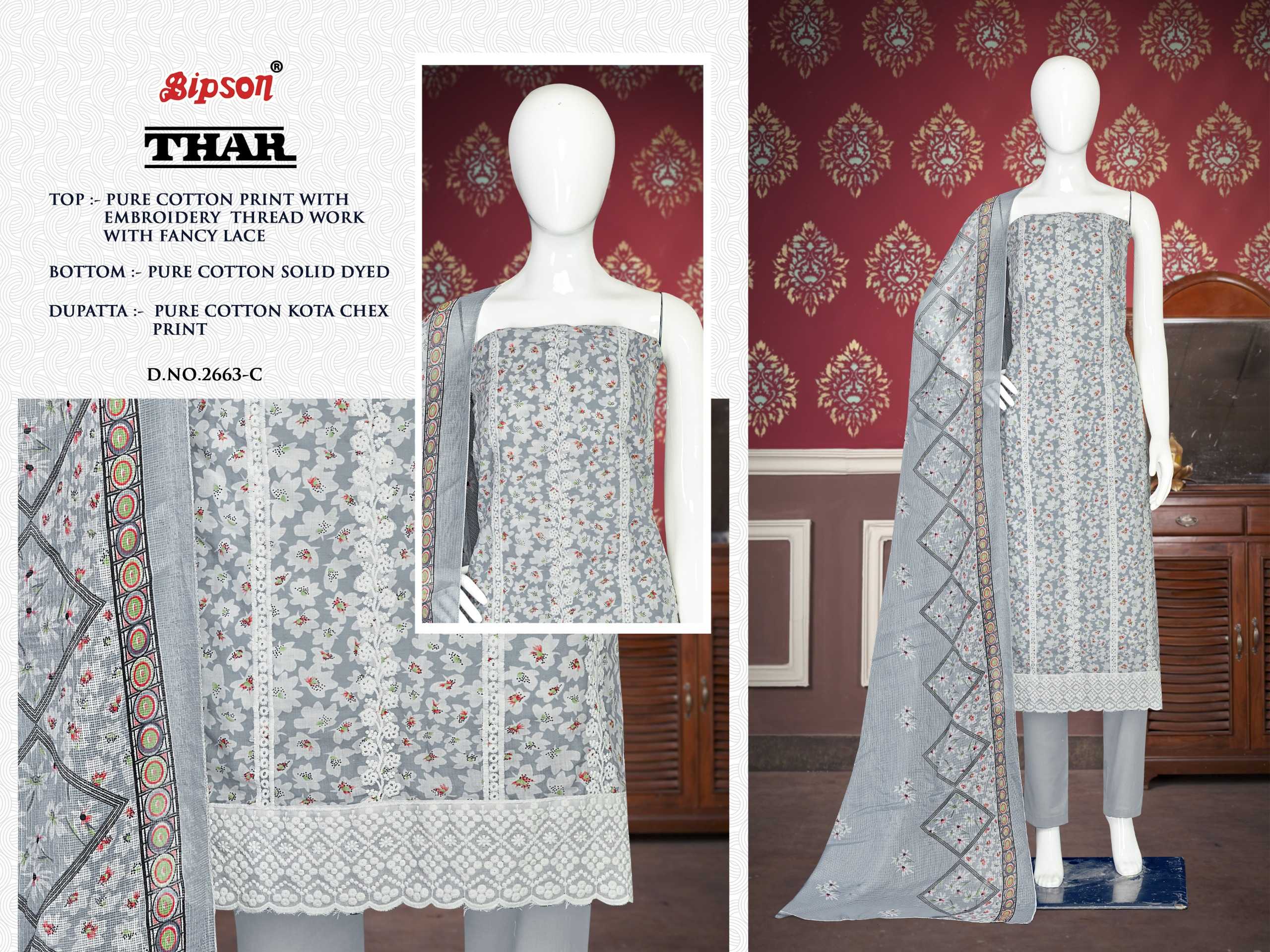 thar 2663 by bipson prints cotton comfortable print white thread embroidery salwar suit