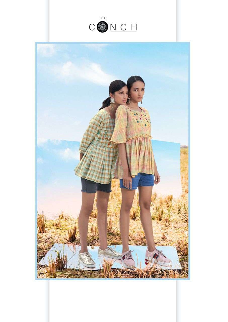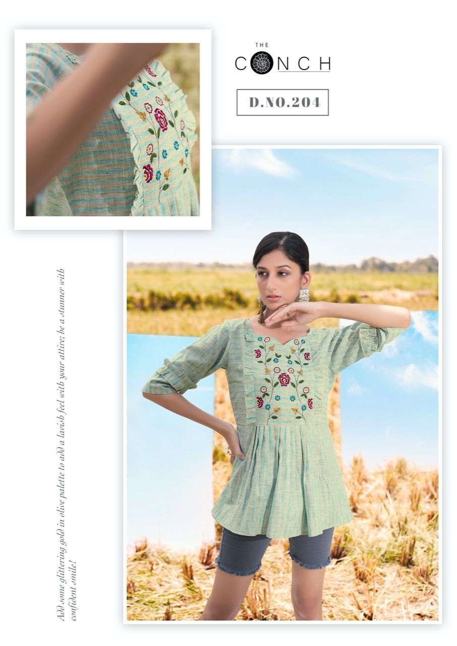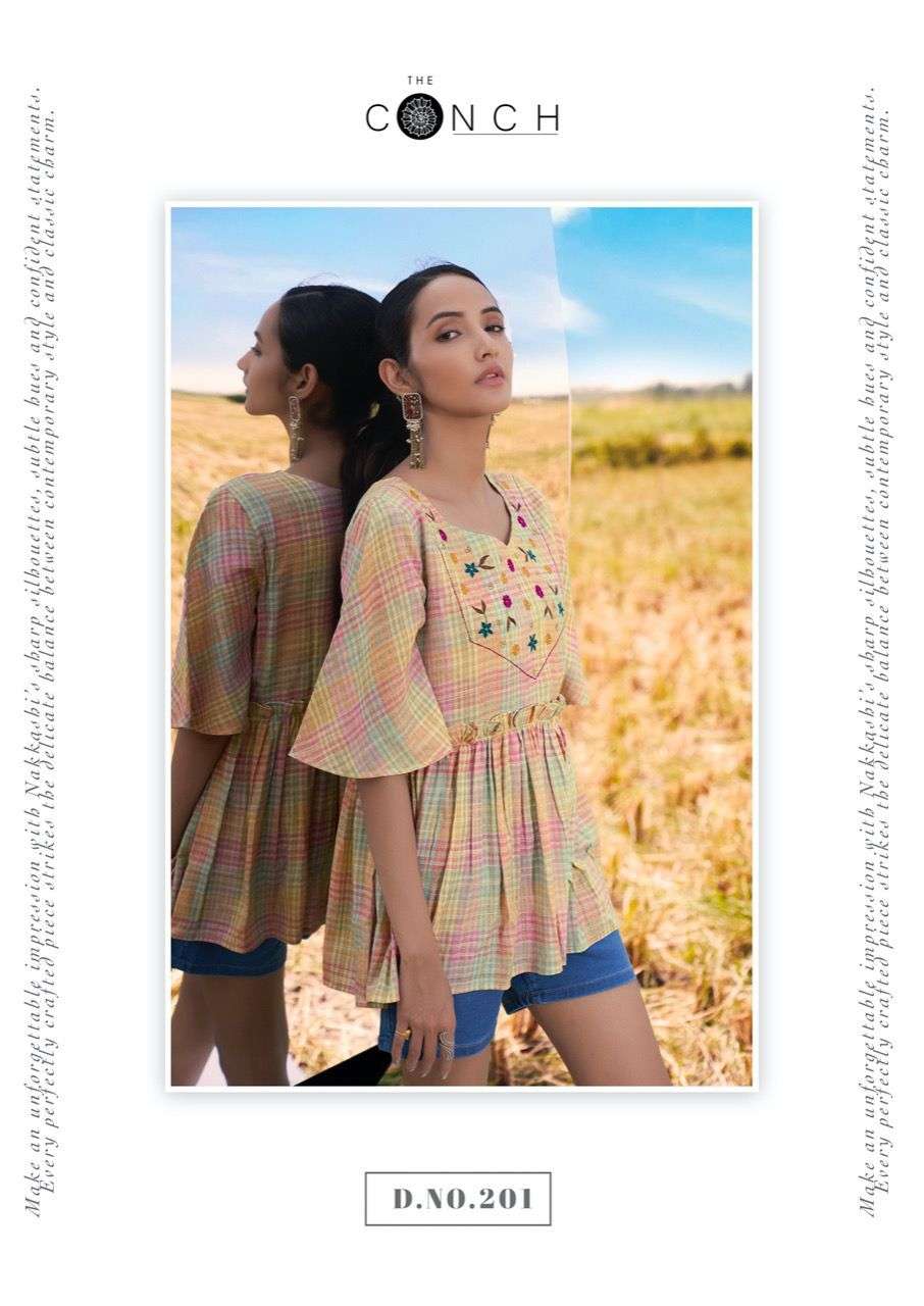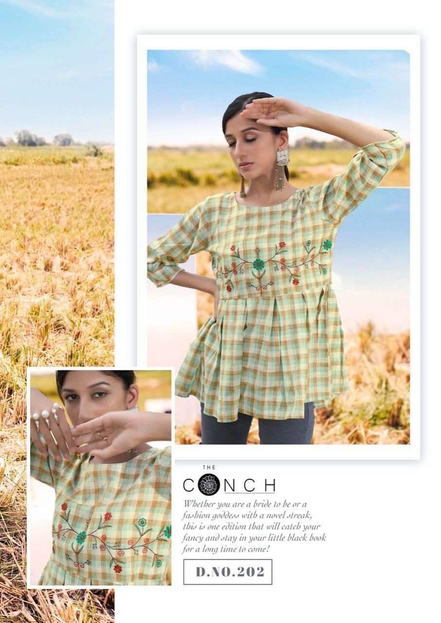 📌 The Conch has launched 🔸 Fabric Details 🔸 ▪Top :- Top Dyed Weaving Check And Stripes With Embrodairy Work With Diffrent style ▪Total Design :- 05 ▪Size;- L(40),XXL(44) Price:-399 +Gst