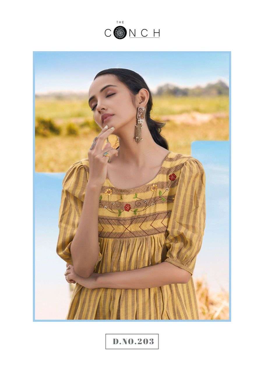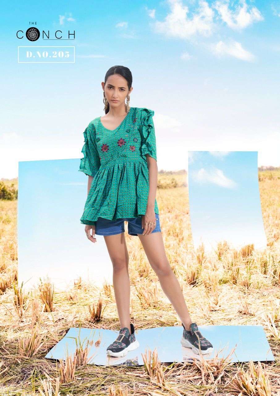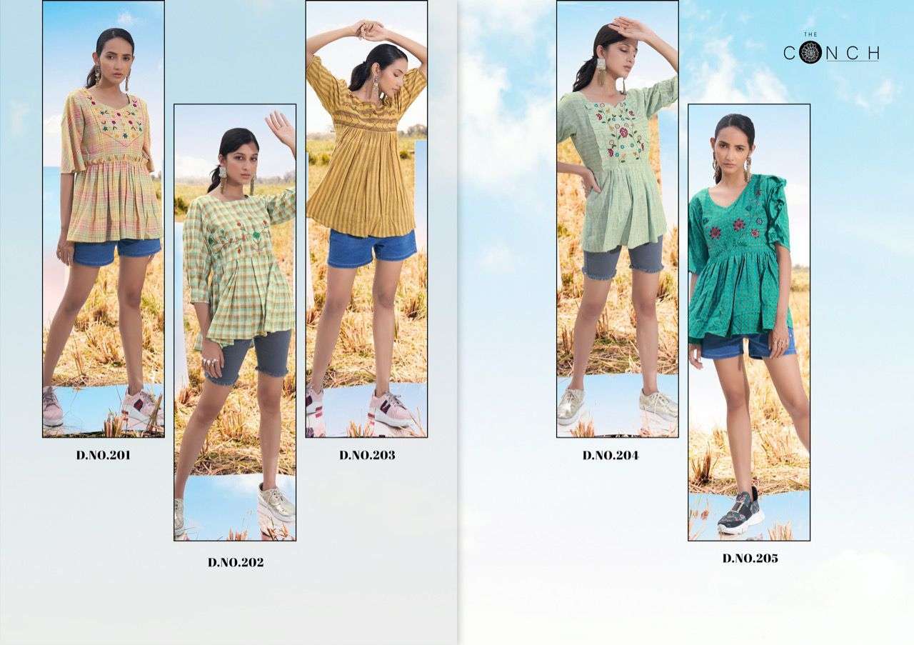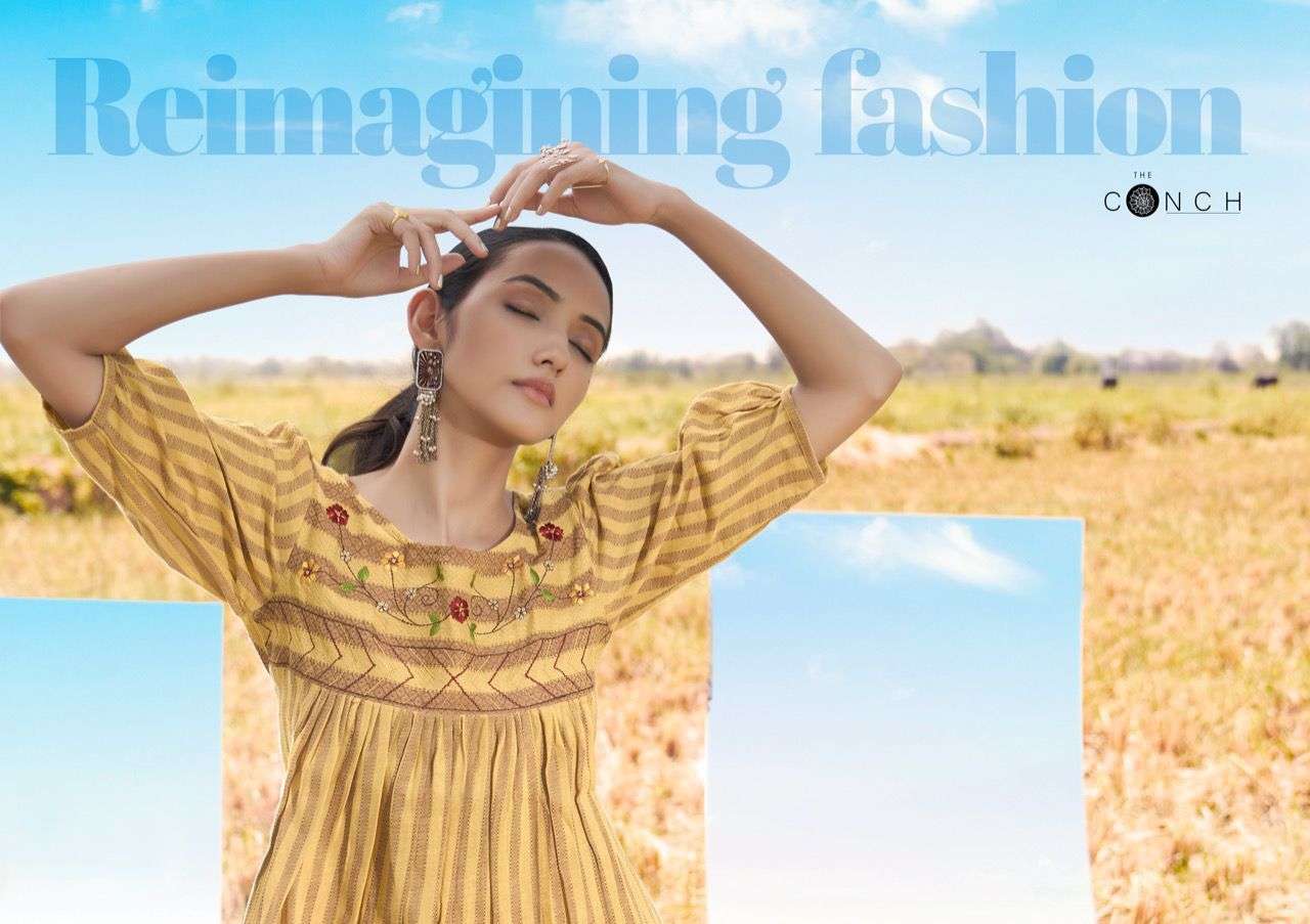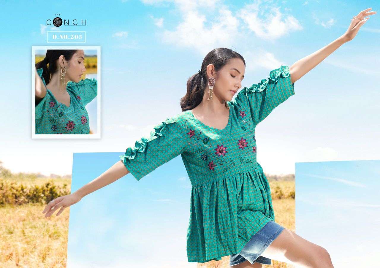 📌 The Conch has launched 🔸 Fabric Details 🔸 ▪Top :- Top Dyed Weaving Check And Stripes With Embrodairy Work With Diffrent style ▪Total Design :- 05 ▪Size;- L(40),XXL(44) Price:-399 +Gst