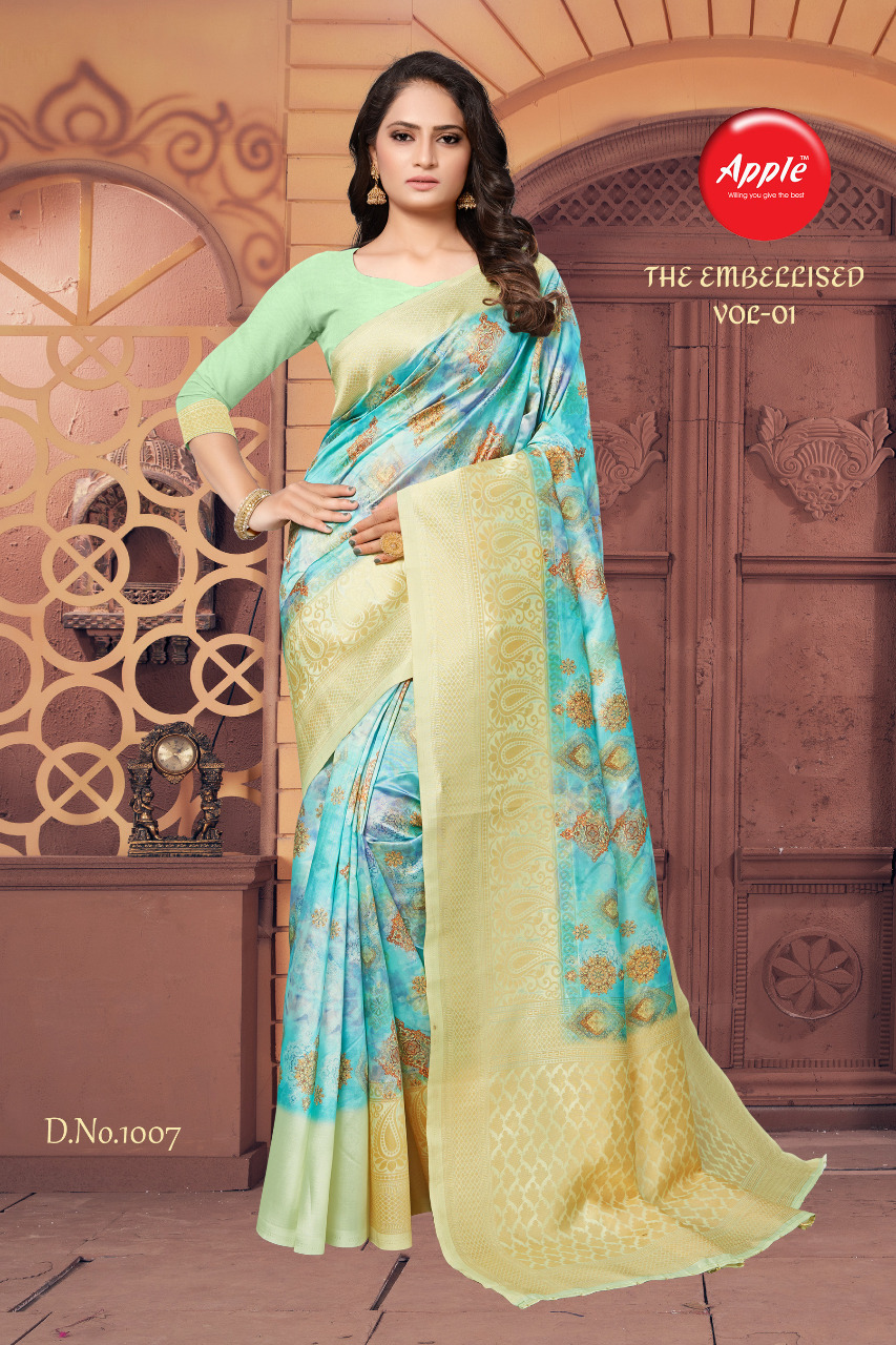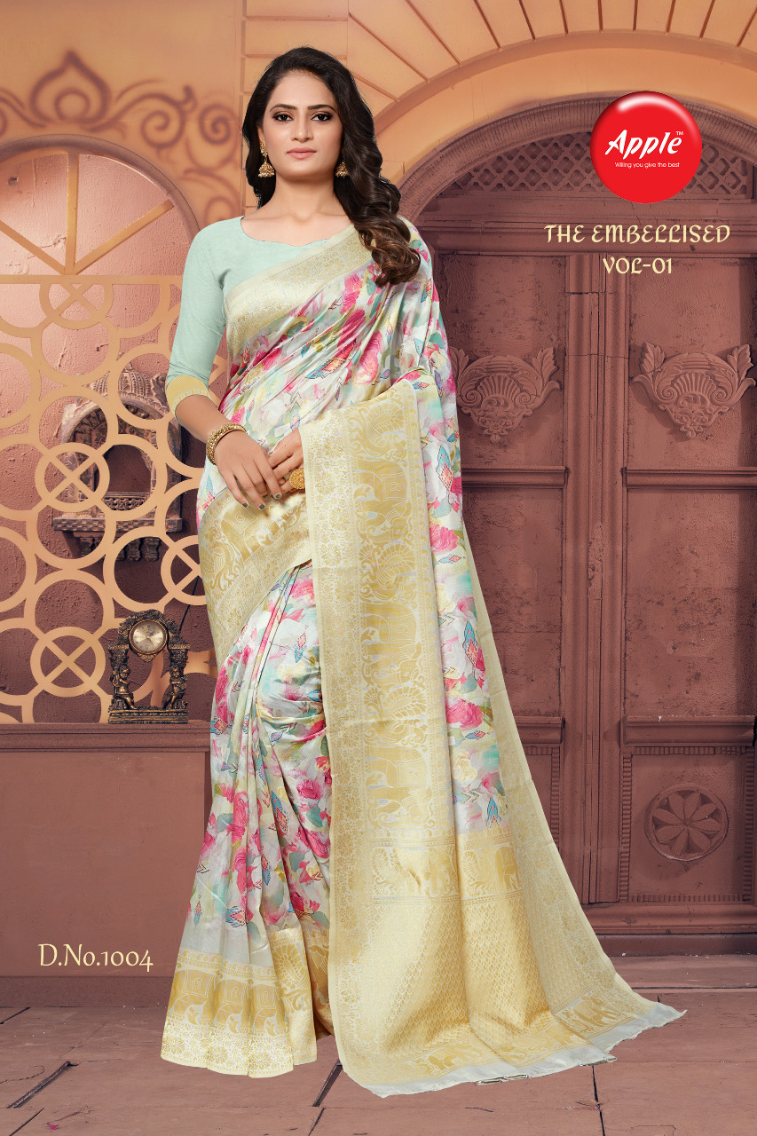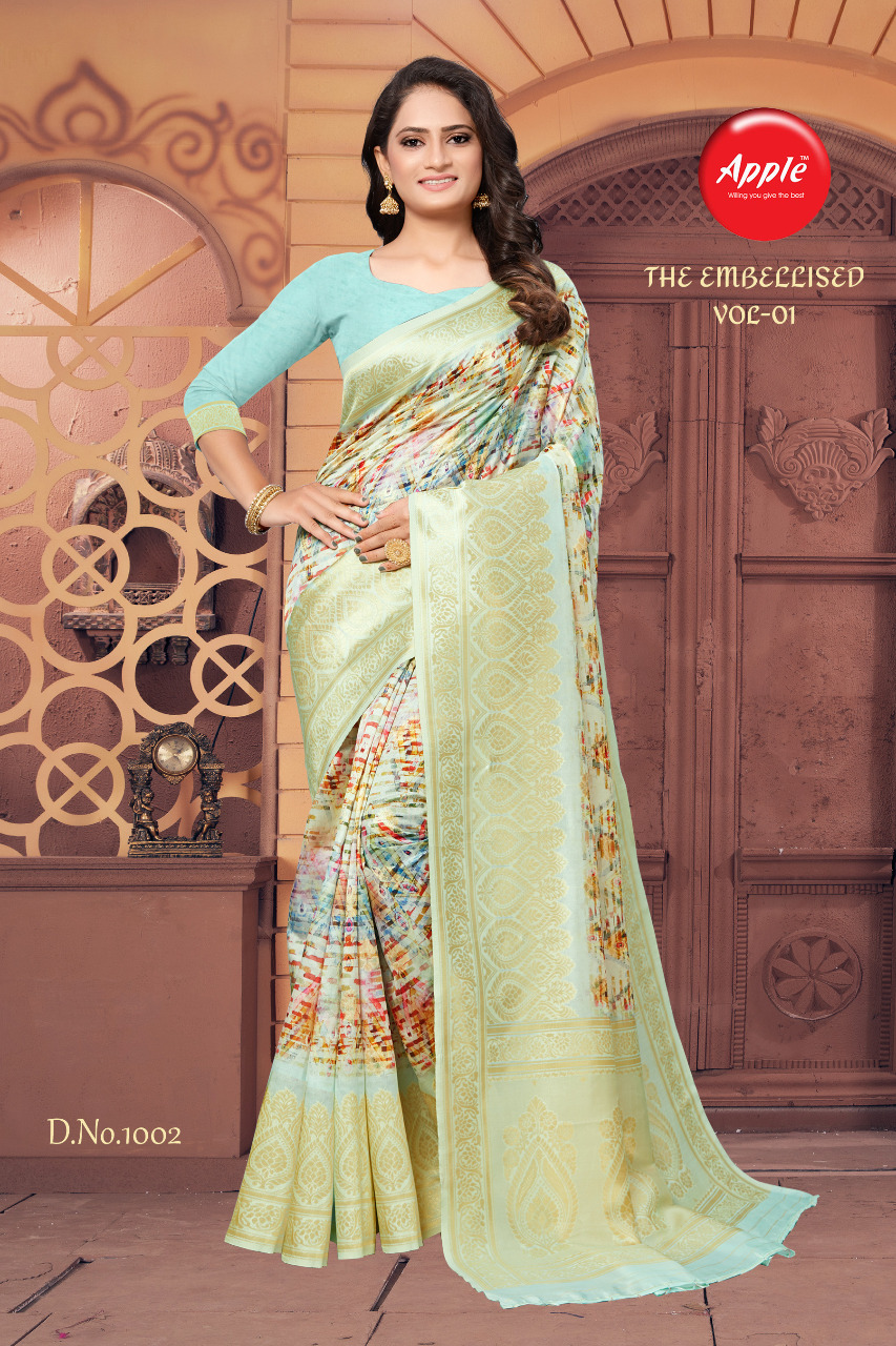 The Embellised Vol 1 By Apple Cotton Silk Weaving Jacquard Border Saree Trader In India