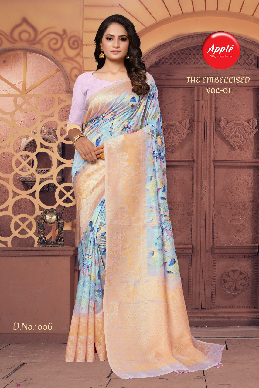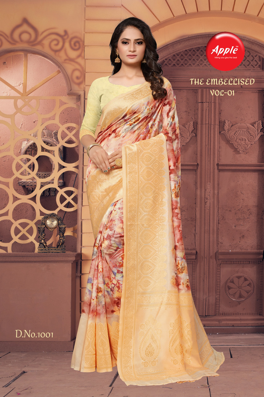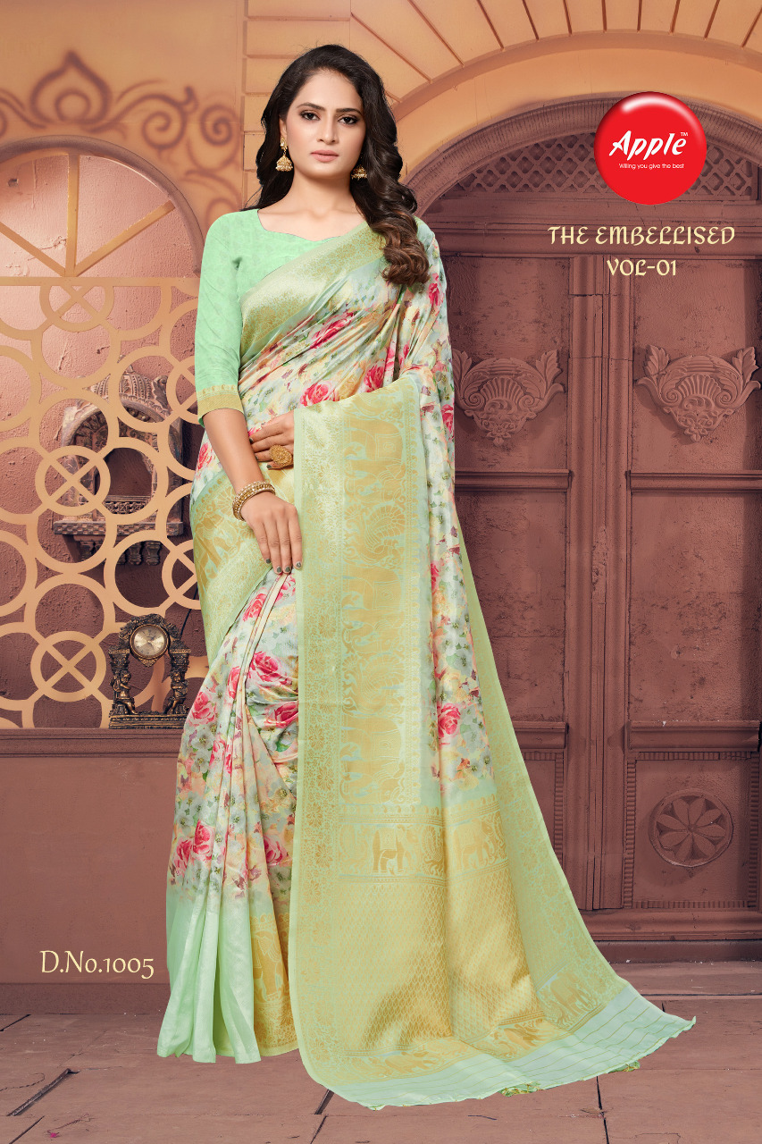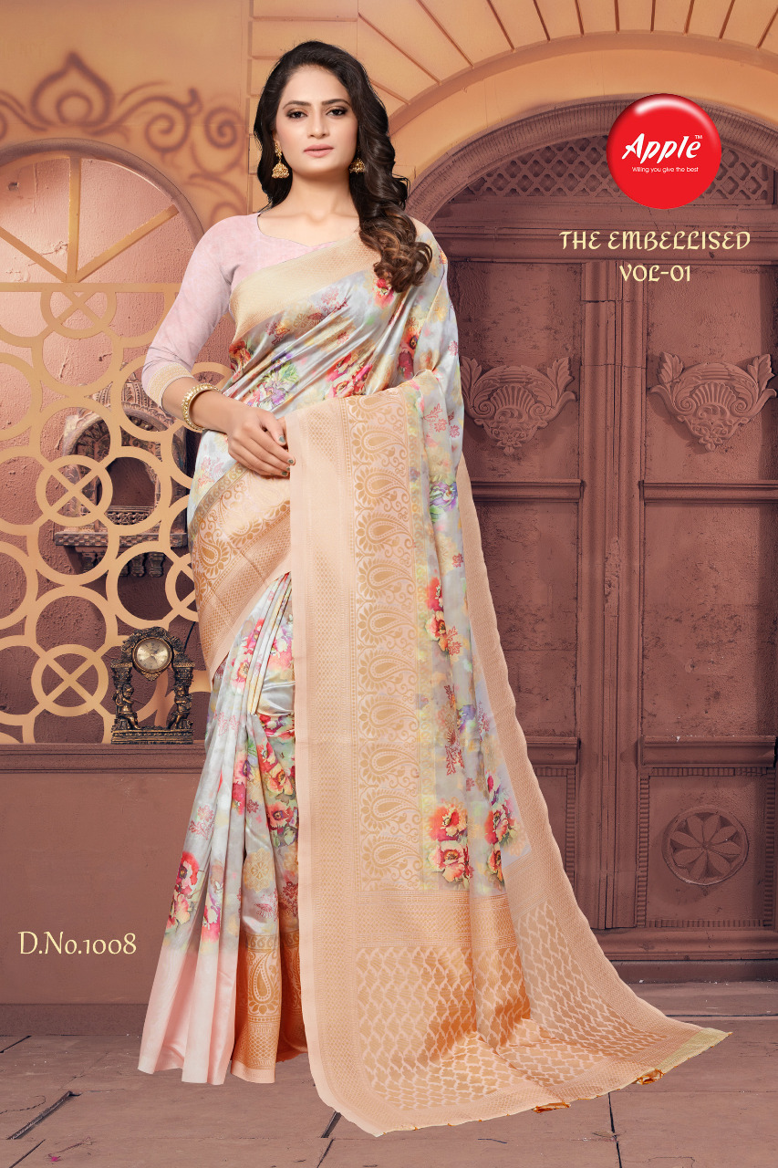 The Embellised Vol 1 By Apple Cotton Silk Weaving Jacquard Border Saree Trader In India