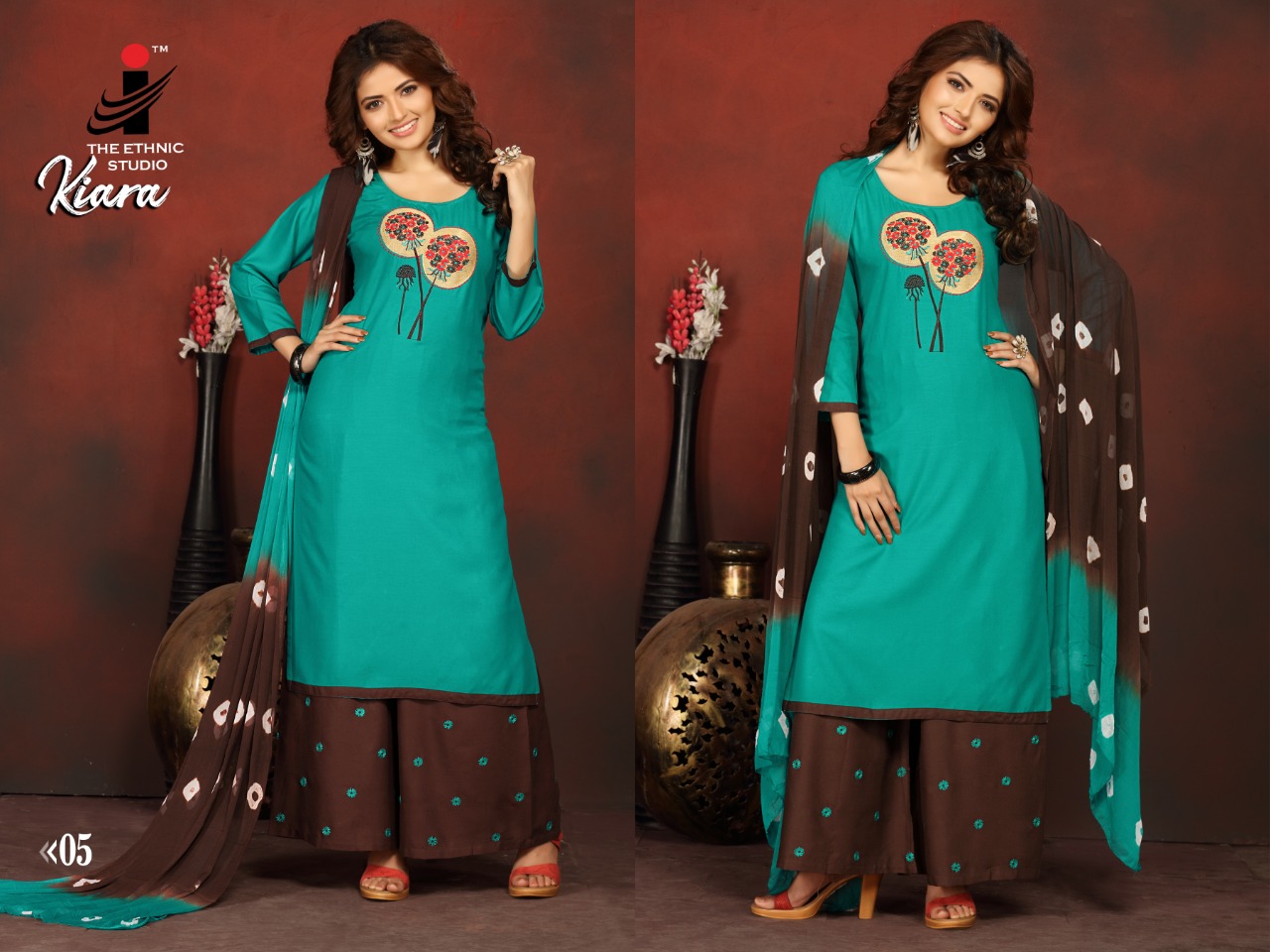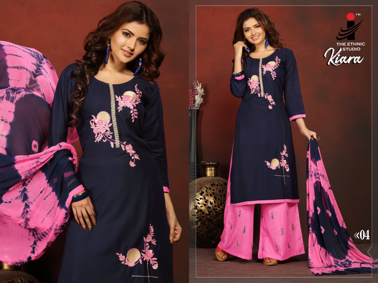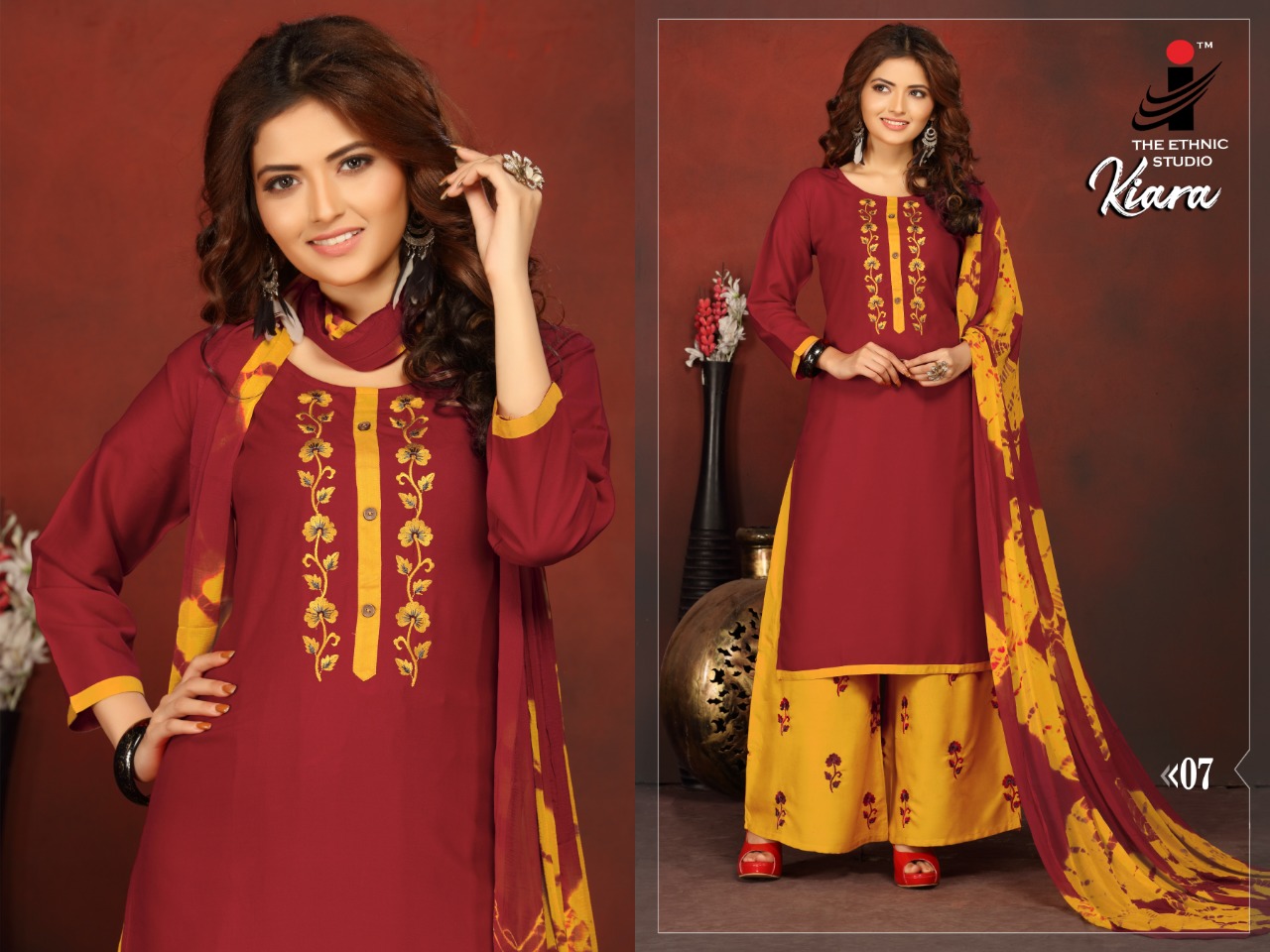 The Ethnic Studio Kiara Reyon Embroidery Ready Made Plazzo Style Salwar Suit