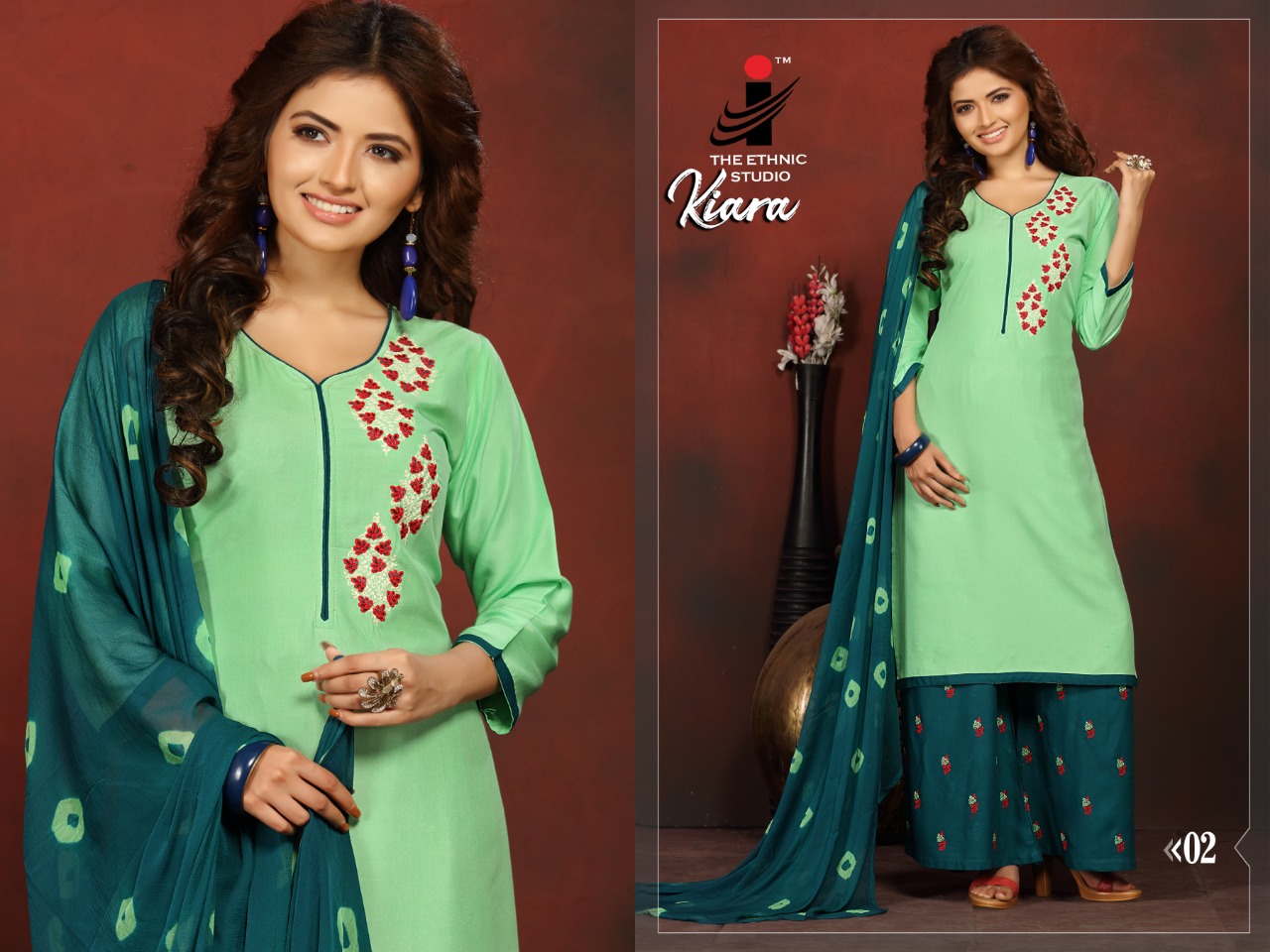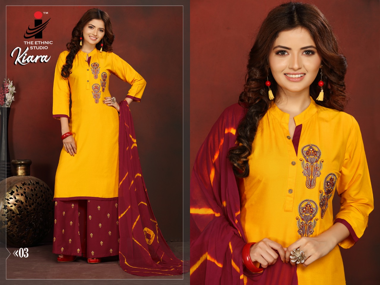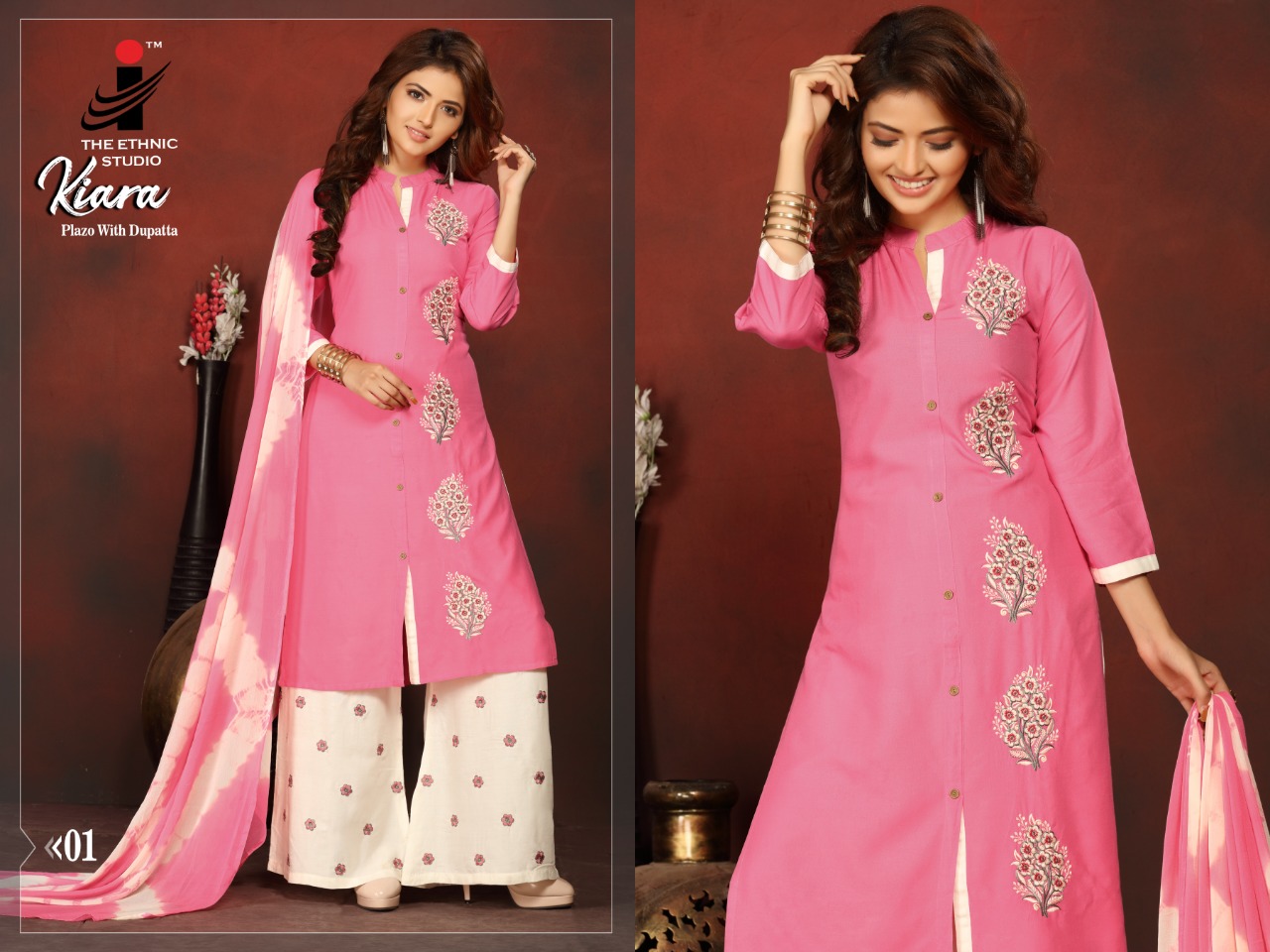 The Ethnic Studio Kiara Reyon Embroidery Ready Made Plazzo Style Salwar Suit