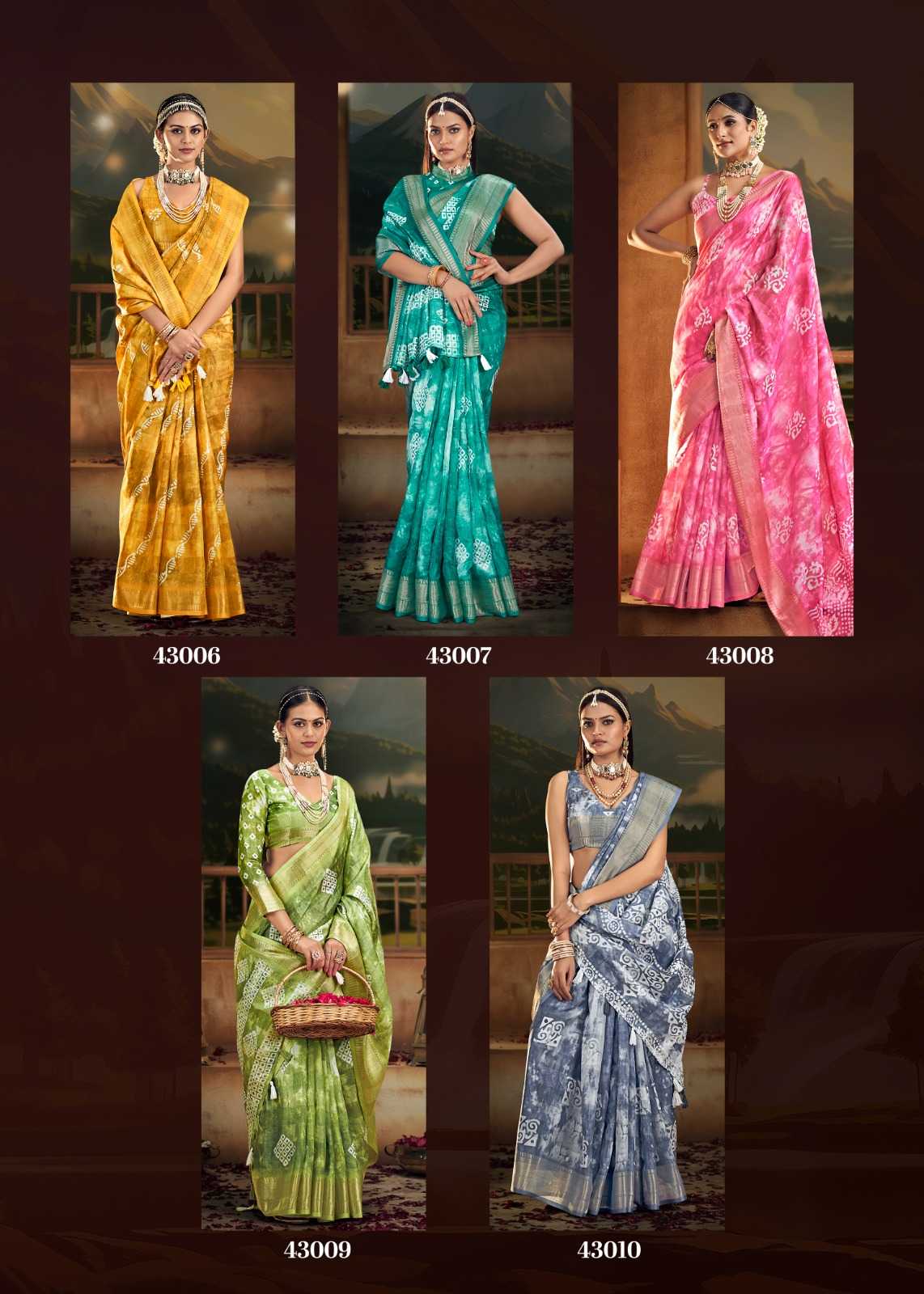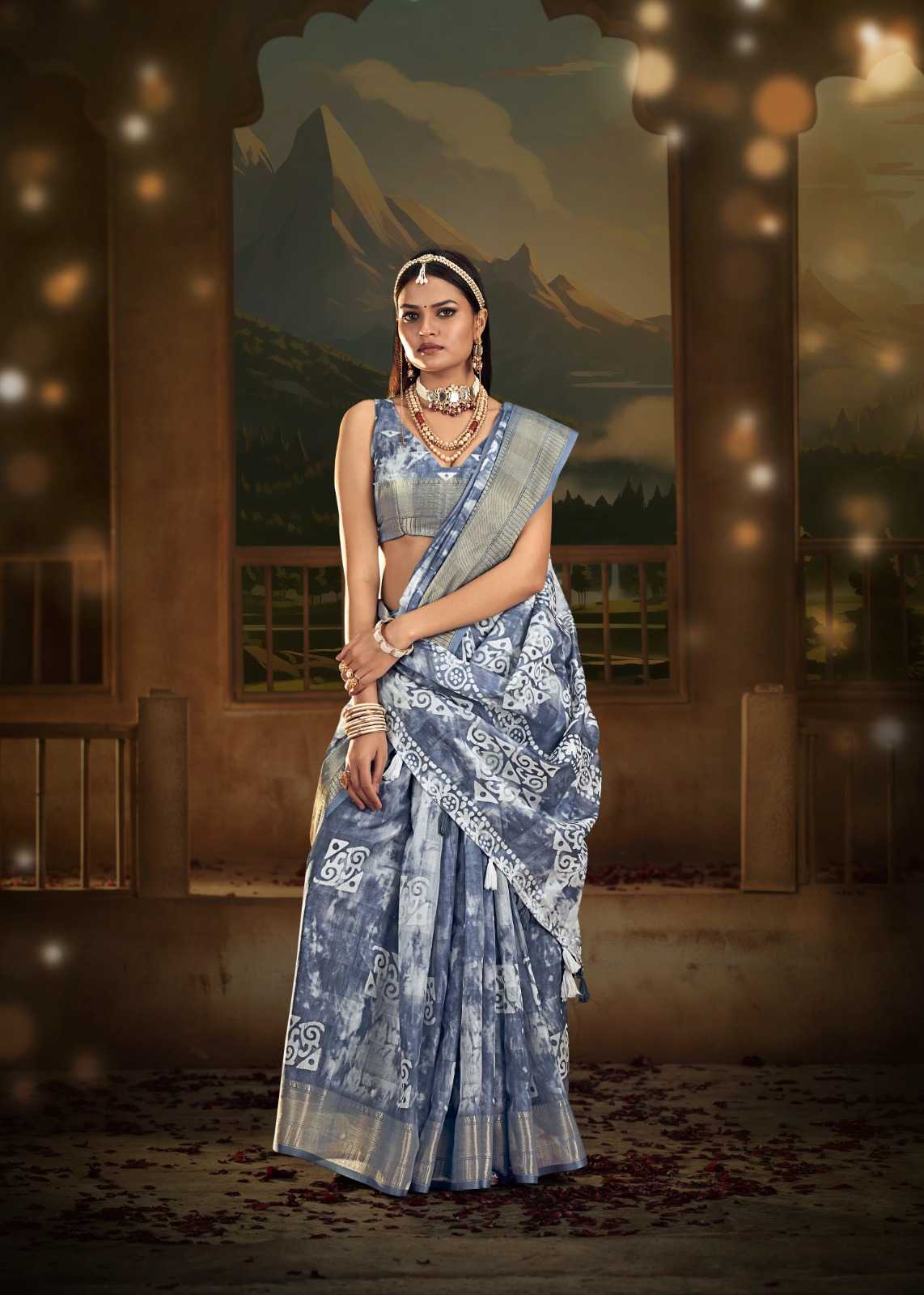 the fabrica kiyara 43001-43010 cotton batik print beautiful sarees wholesaler