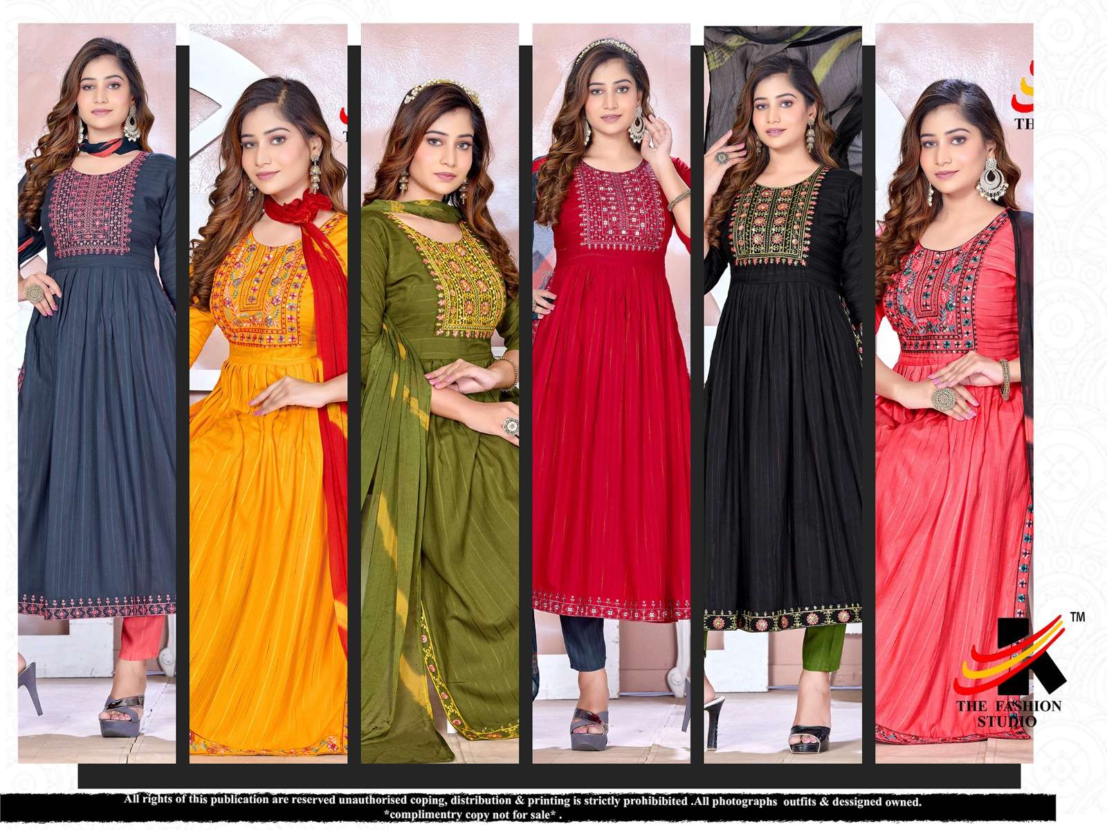 📌 K the fashion studio has launched ▪Top :- reyon fancy fabrics embroidery with dupatta Nayra ▪Total Design :- 6 ▪Rate:- 650/ ▪Size;- L xl xxl |