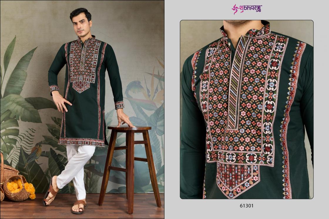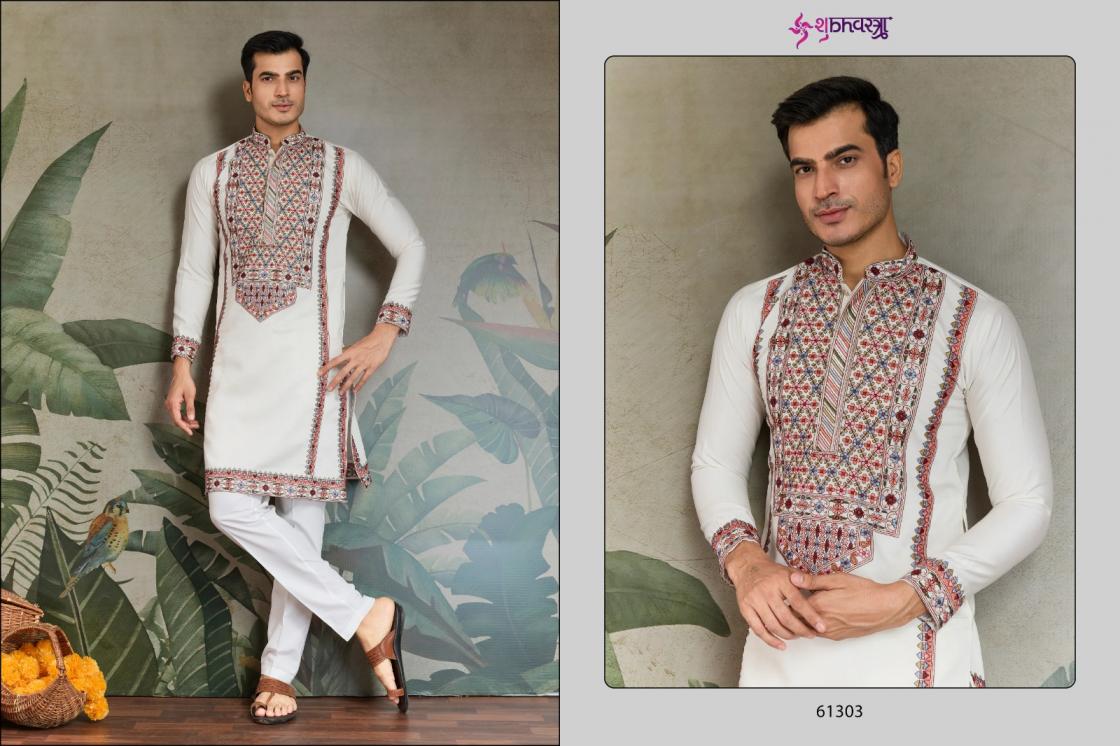 🕺 SHUBHVASTRA - NEW KURTA COLLOCTION 2025 🕺 🤷🏻♂️ New Exclusive Festival Embroidered Mens Wear Kurta Collection 🤷🏻♂️ 💰 THE FUSION FITS-1 • RATE LIST (KURTA) 💰 61301: 1370/- SIZE : M, L, XL, XXL -------------------------------------- UNSTITCHED FABRIC - OPTION - AVAILABLE ✅🪡🧶🧵 0.80 MTR - FRONT SIDE (KURTA) UNSTITCHED FABRIC - RATE - 1250/- (FLAT) - (KURTA) Real Pic Available. ✅ |