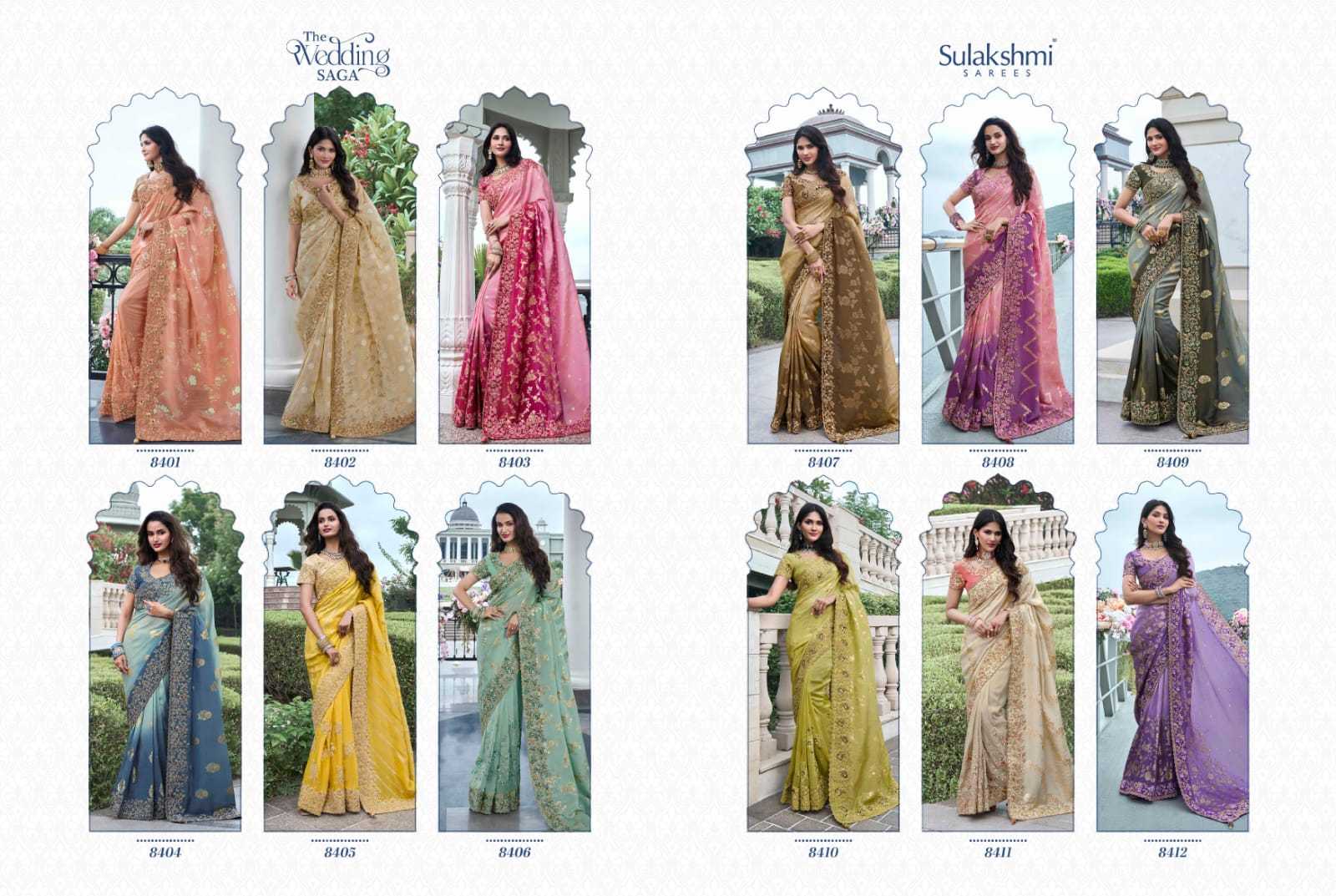 the wedding saga by sulakshmi tissue silk 8401- 8412 pretty look saree