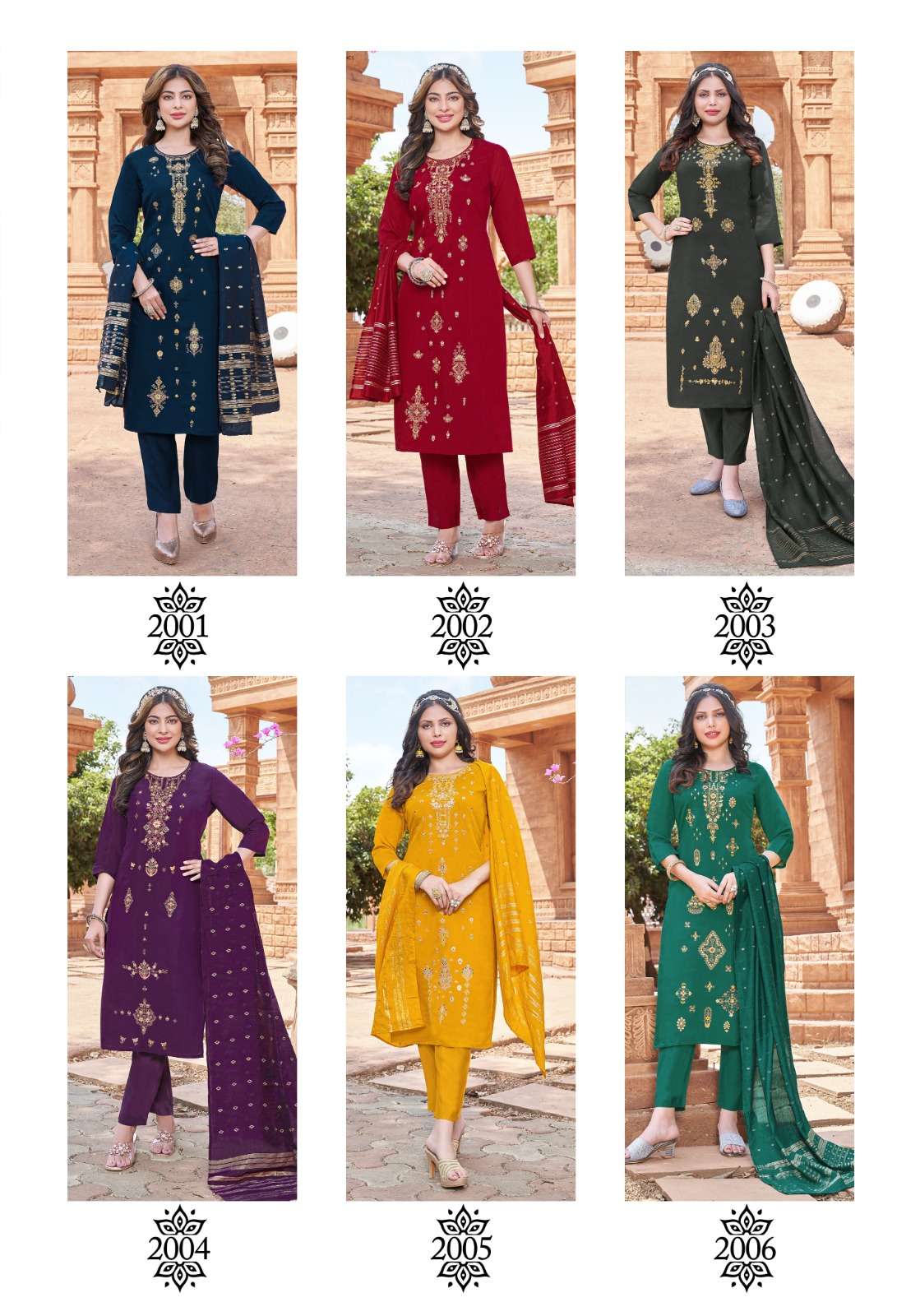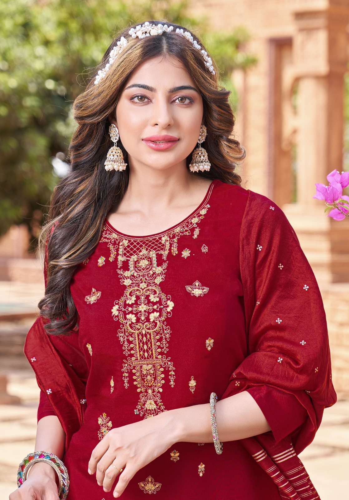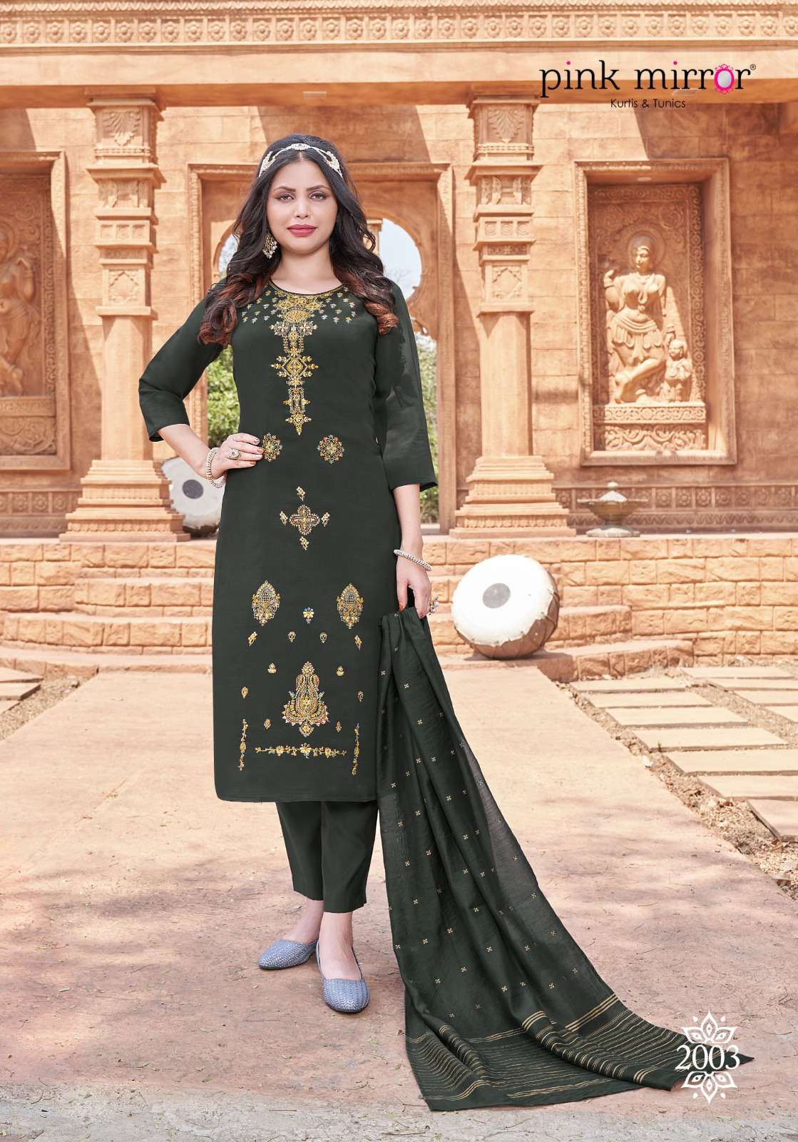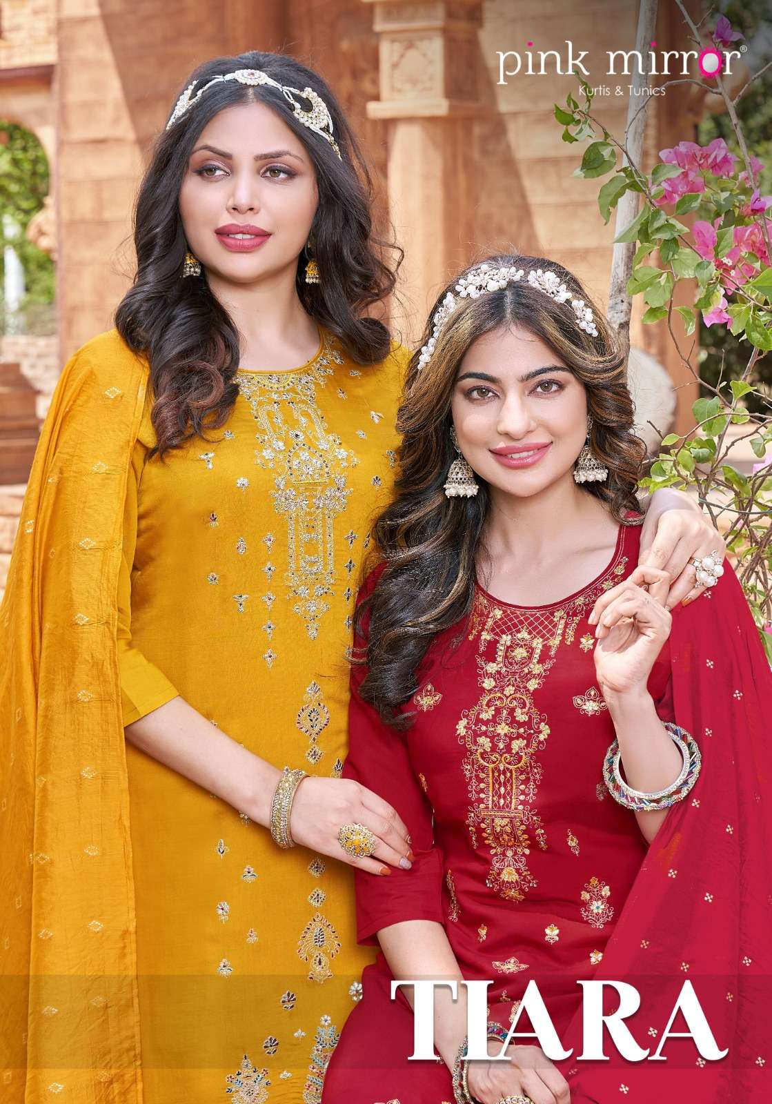 tiara by pink mirror readymade viscose silk kurti with pant and dupatta