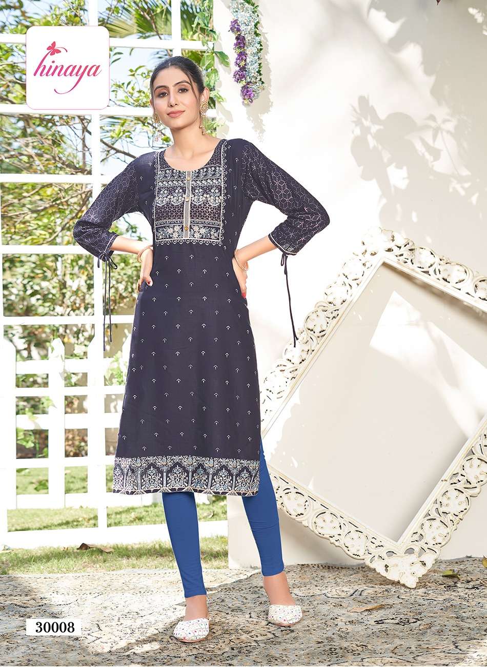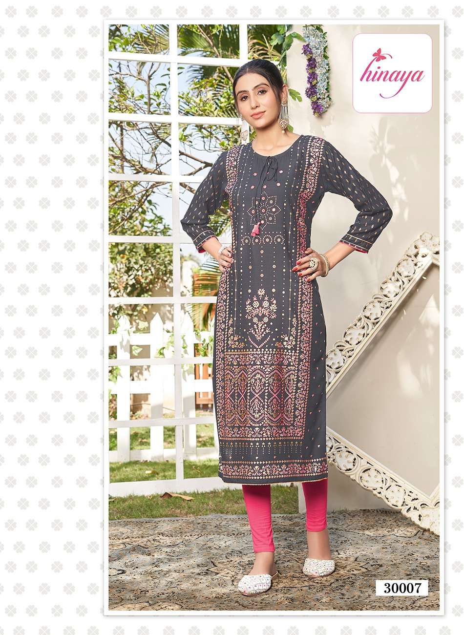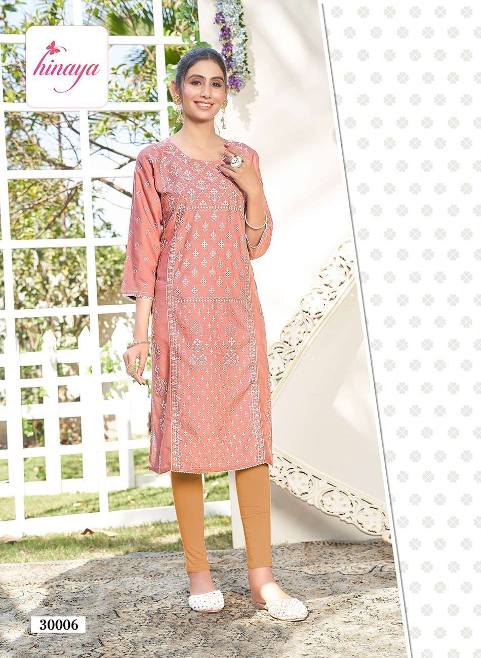 tiara vol 30 by hinaya designer rayon kurtis with handwork collection