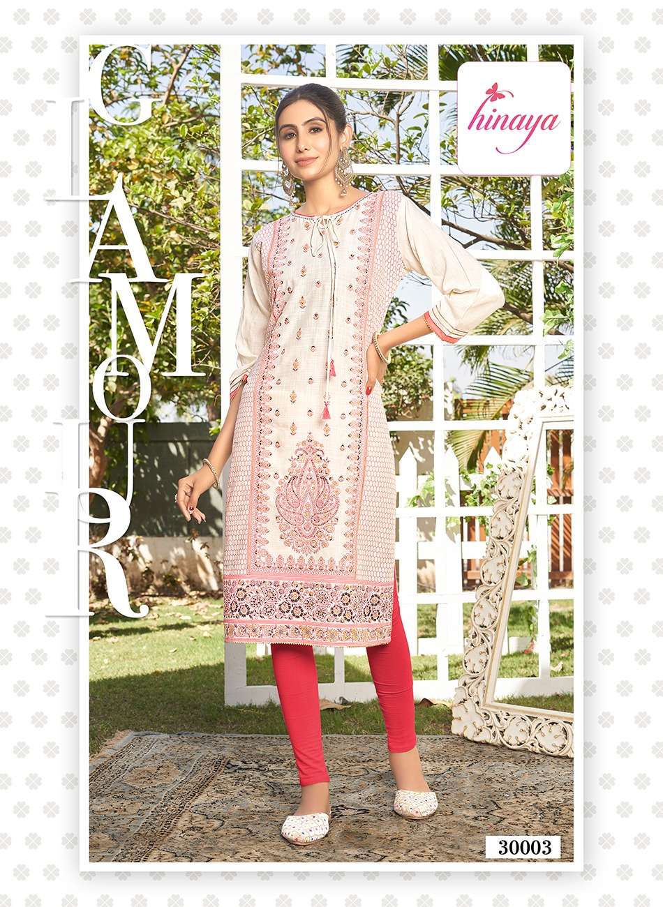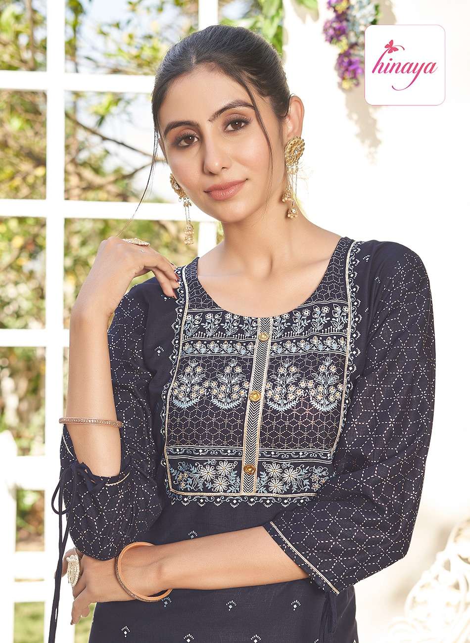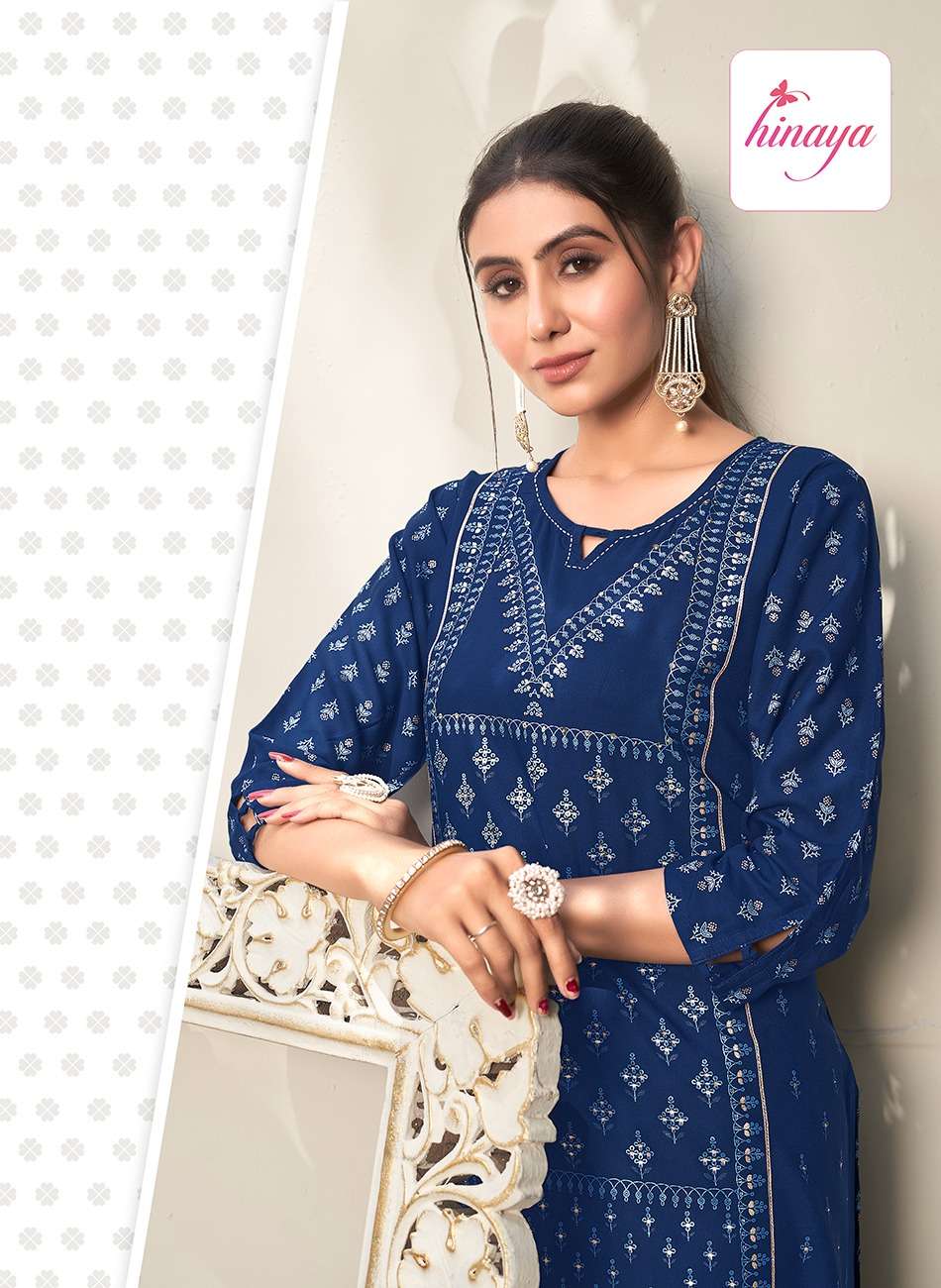 tiara vol 30 by hinaya designer rayon kurtis with handwork collection