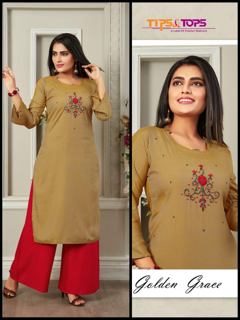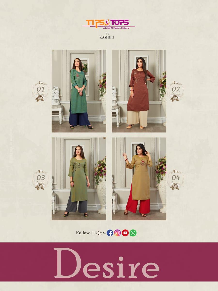 Tips And Tops Launch Desire Fancy Slub Kurti With Rayon Plazzo Wholesaler