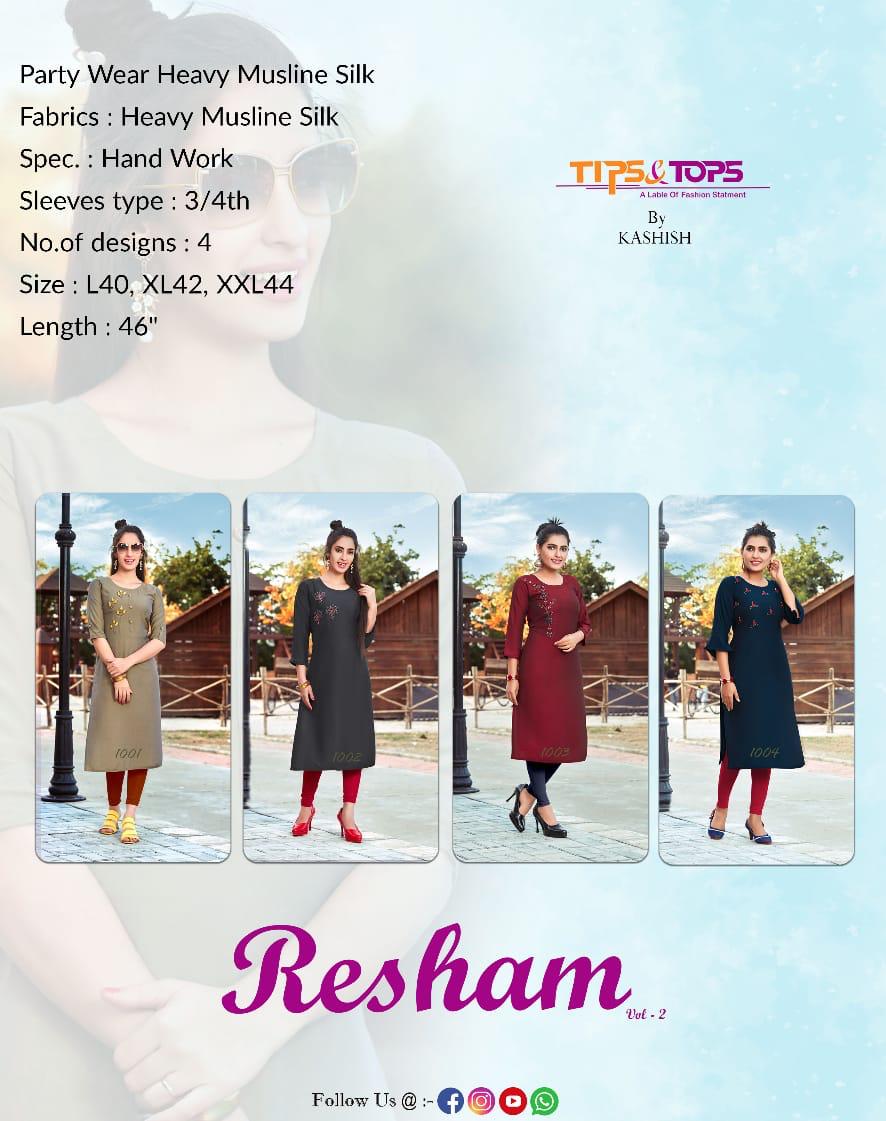 Tips And Tops Launching Resham Vol 2 Party Wear Heavy Muslin Silk Kurti Collection