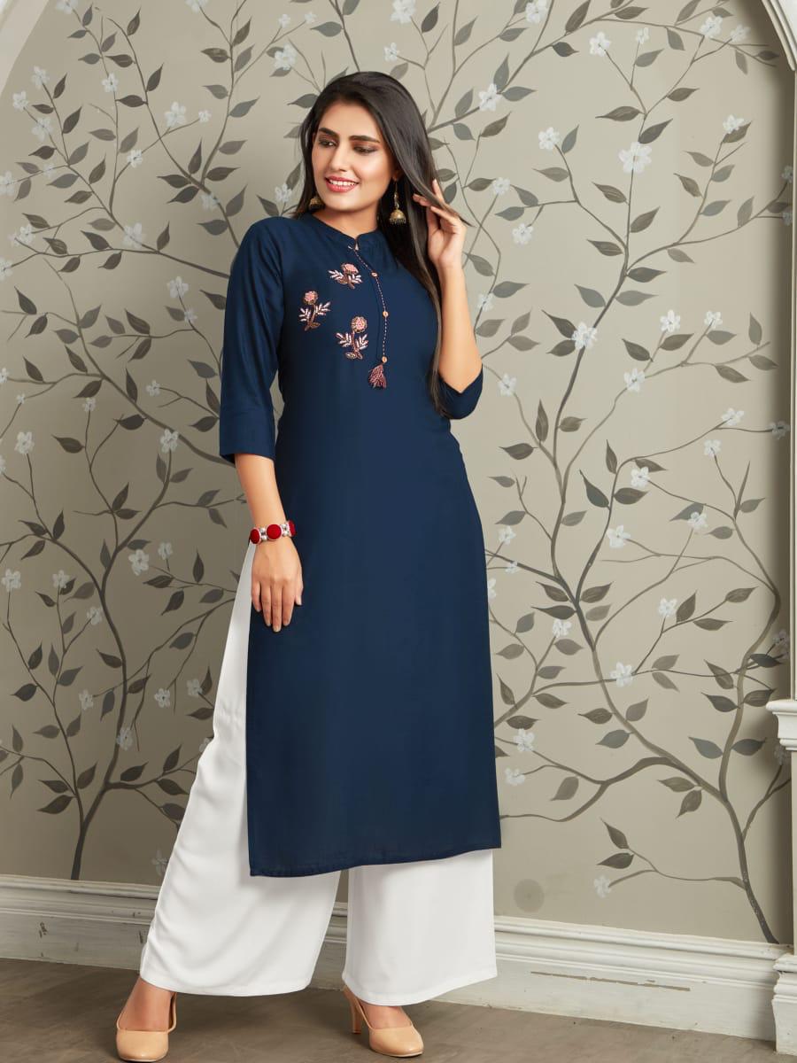 SURAT TIPS & TOPS Launching New Catalouge Catalouge : 💃 VASTRA 💃 Party Wear Heavy Hand Work Kurti With Reyon Palazzo Collection Fabrics : Fancy Reyon Slub 14KG Spec. : HAND WORK Sleeves type : 3/4th No.of designs : 6 Size : M38, L40, XL42, XXL44 Length : 46" Fabric in bottom : Reyon 14kg Palazzo Rate : 595 + GST 5%, |