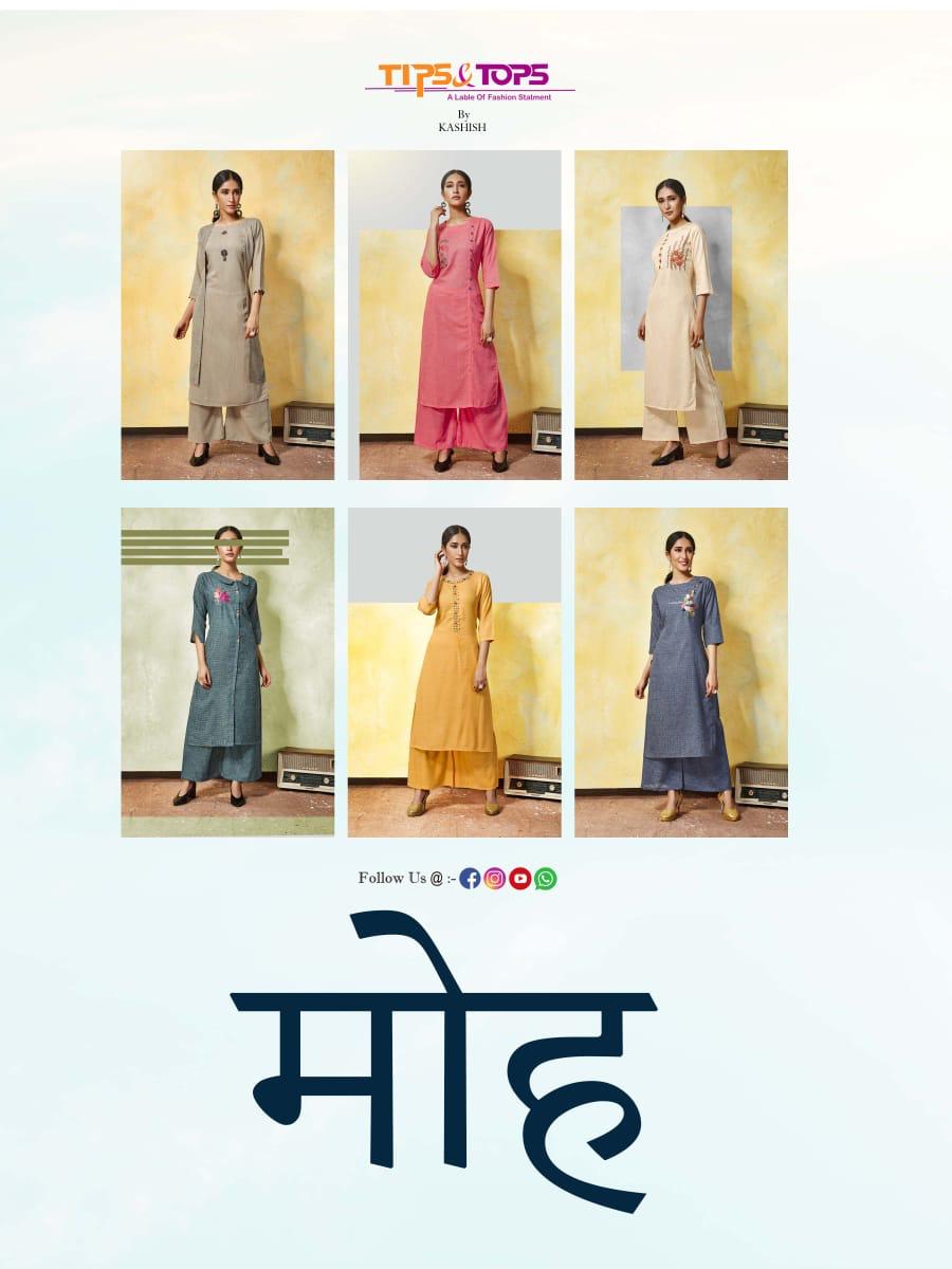 TIPS & TOPS Launching New Catalouge Catalogue : 💃 MOH 💃 Party Wear Fancy Kurtis with Palazzos Fabrics : Cotton Checks, Reyon Dobby ( Fancy Materials ) Sleeves type : 3/4th No.of designs : 6 Size : L40, XL42, XXL44 Length : 46" Rate : 729/-+ GST 5% |