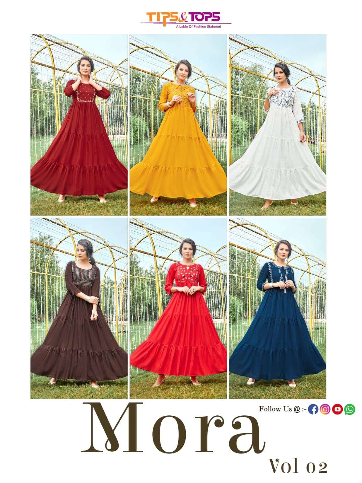 tips and tops mora vol 2 rayon anarkali kurtis supplier