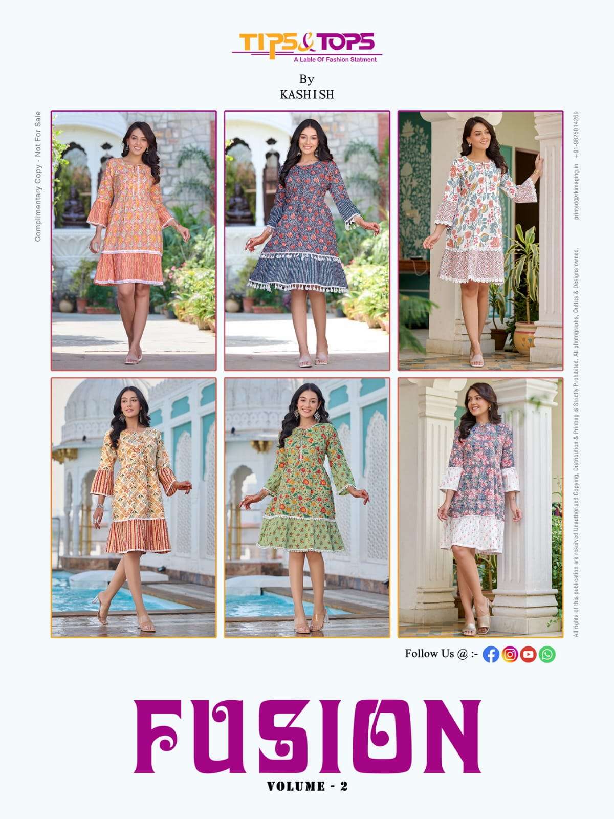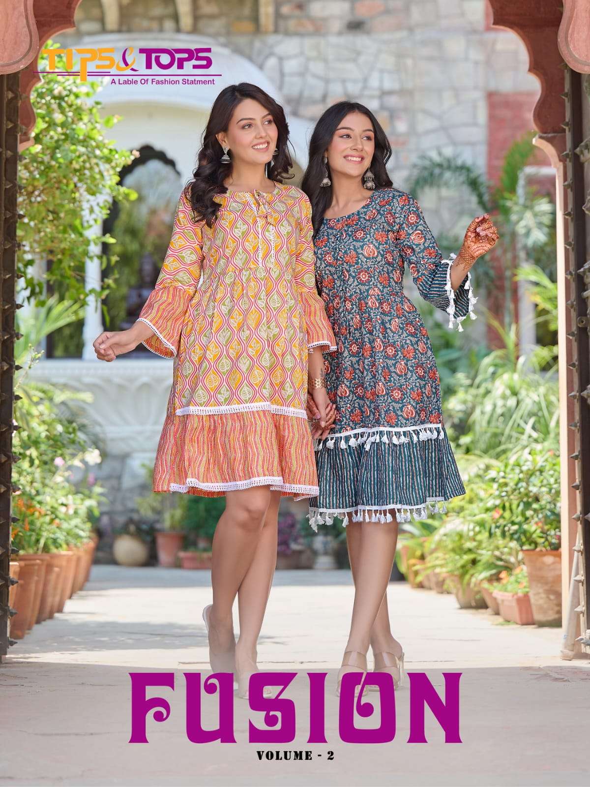 TIPS & TOPS Catalouge : 💃 FUSION Vol 02 💃 Fancy Shorties Fabric : Cotton Prints 60*60 Rate : 495 + GST 5% Set to set |