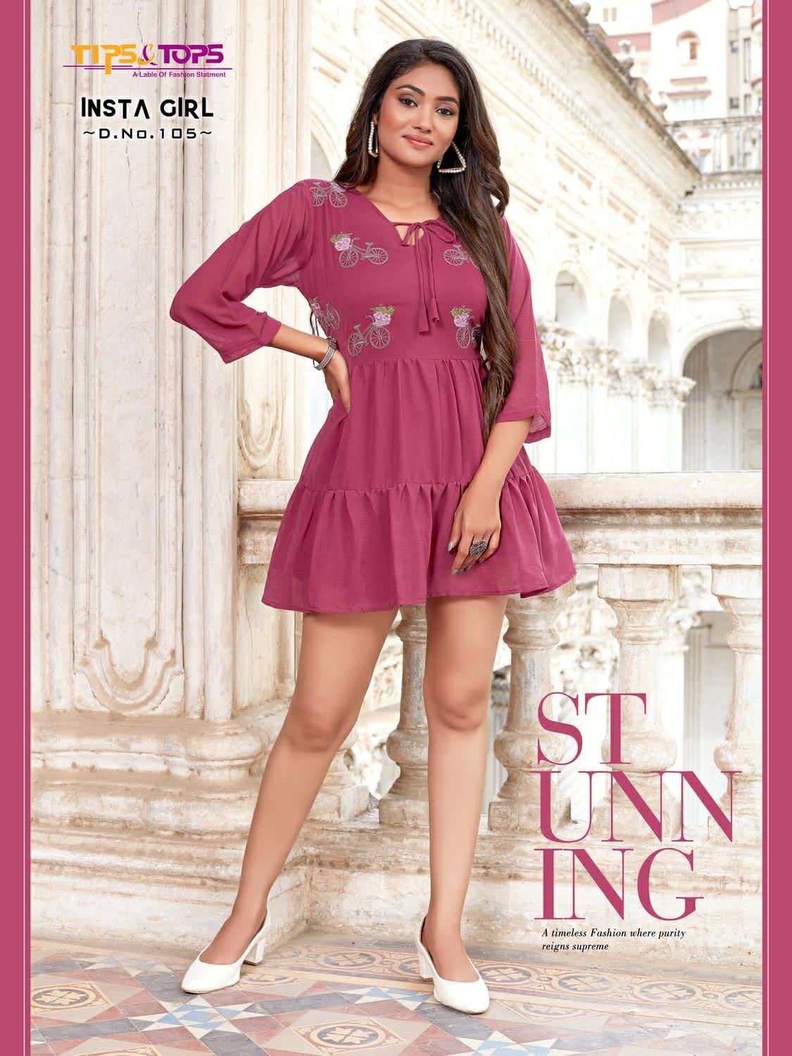 Namaste 👏🏻👏🏻 TIPS & TOPS Catalouge Name : 💃 INSTA GIRL 💃 Western Wear Fancy Shorties Fabrics : Heavy Georgette with Inner Rate : 450 + GST 5% |