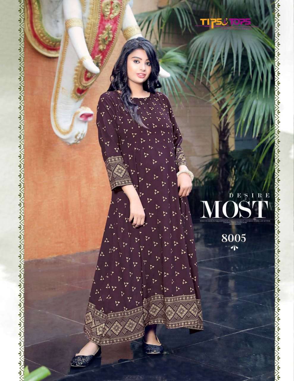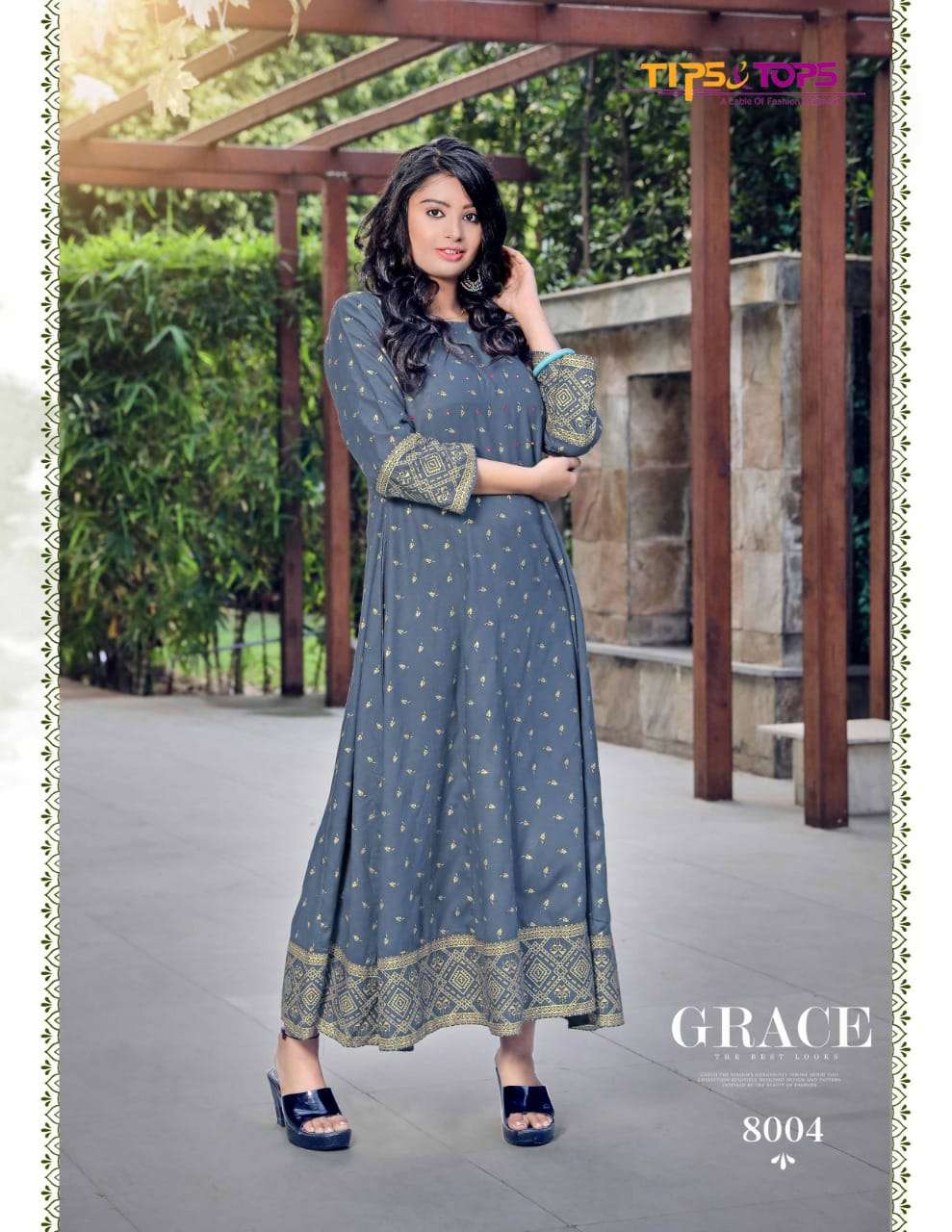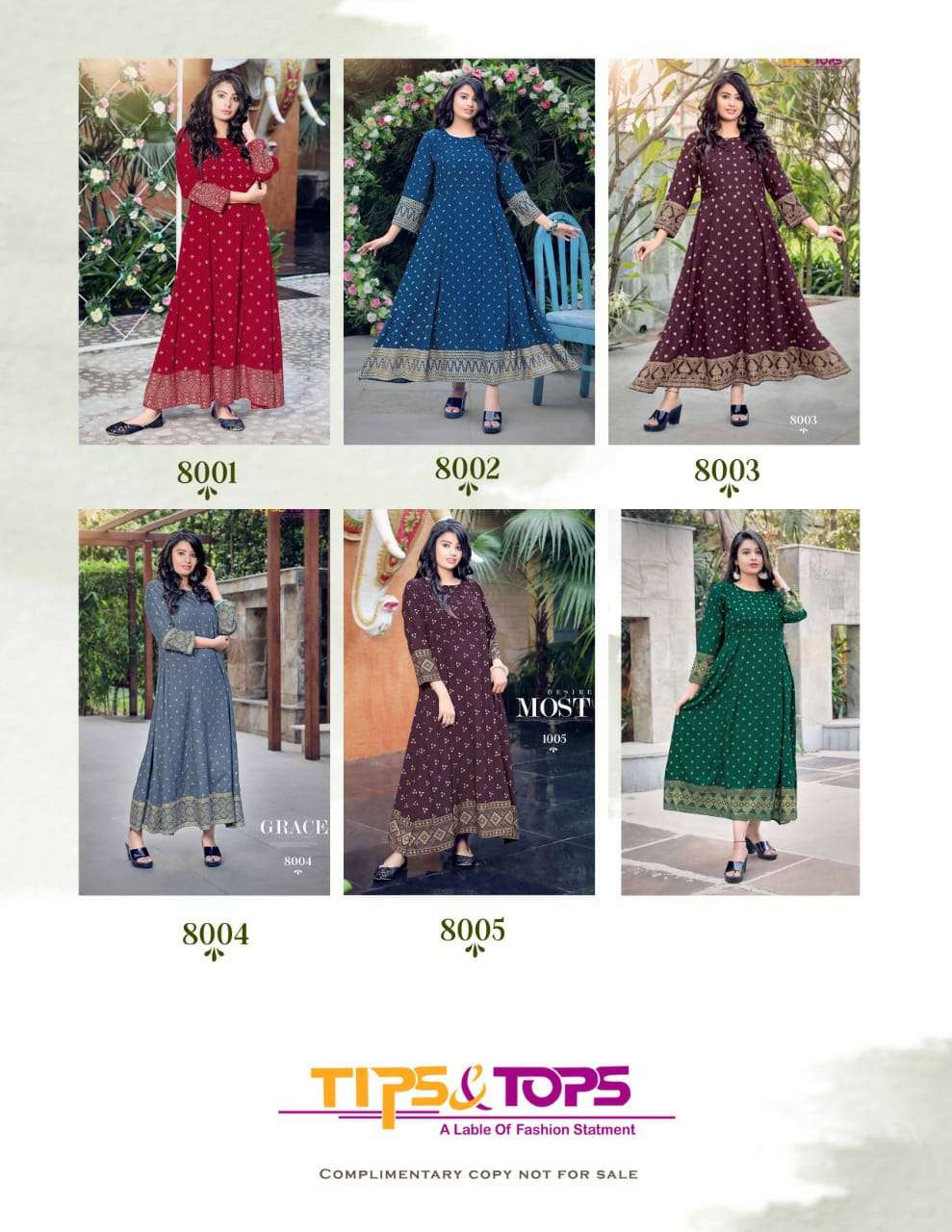 TIPS & TOPS Catalouge Name : 💃 MONALISA Vol 08 💃 Fancy Gowns kum Kurtis Fabrics : Heavy Reyon Slub Foil Print 14kg Rate : *535/- per pcs * + GST 5% TIPS & TOPS 😊 |